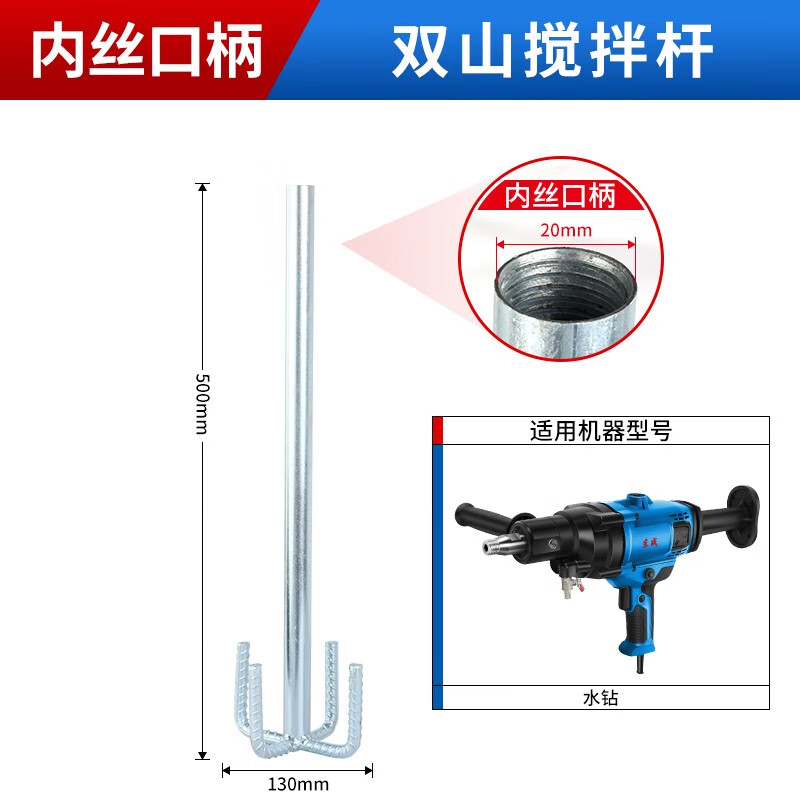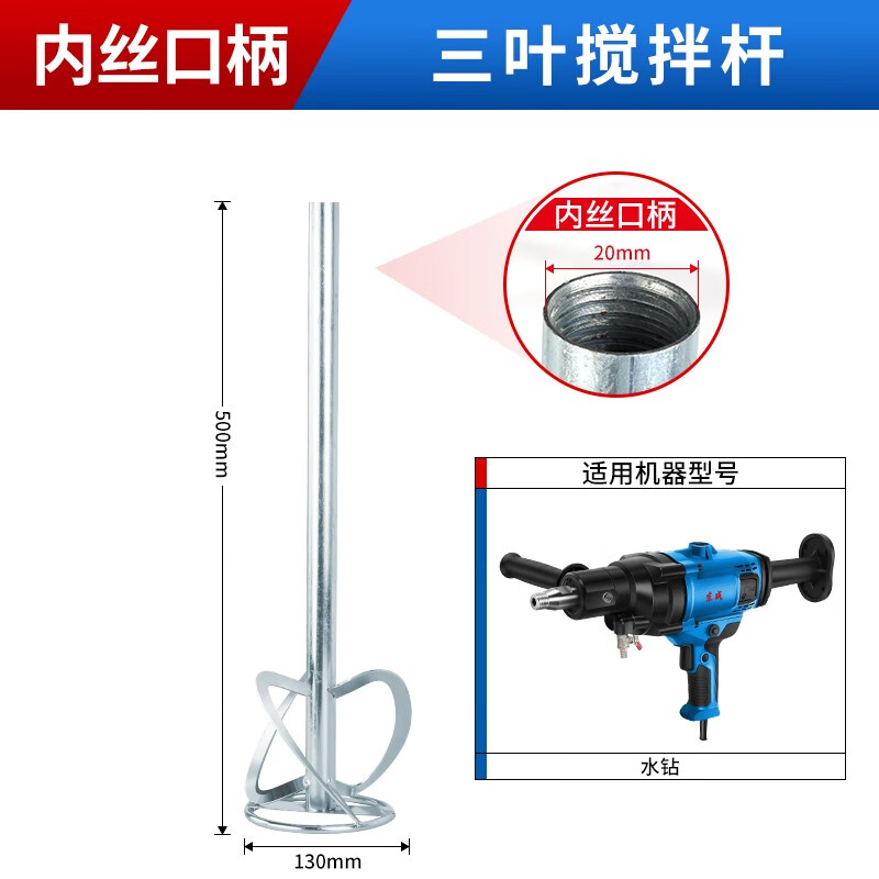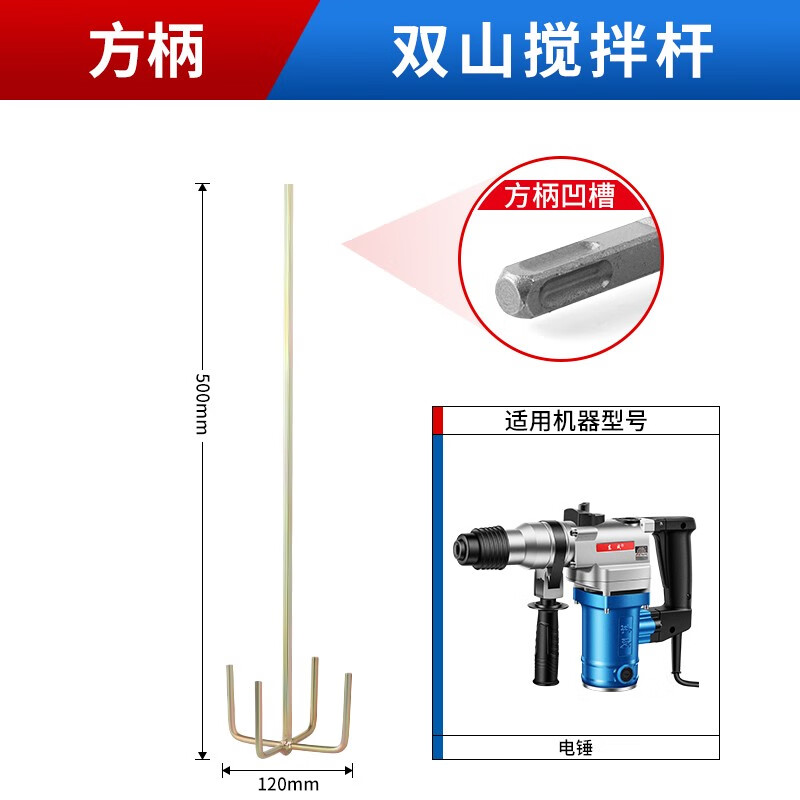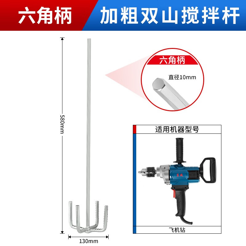 Dongcheng mixing rod thickened double mountain three-page pagoda sanding rod electric hammer mixer aircraft drill rhinestone special sanding rod double section square handle electric hammer and rhinestone