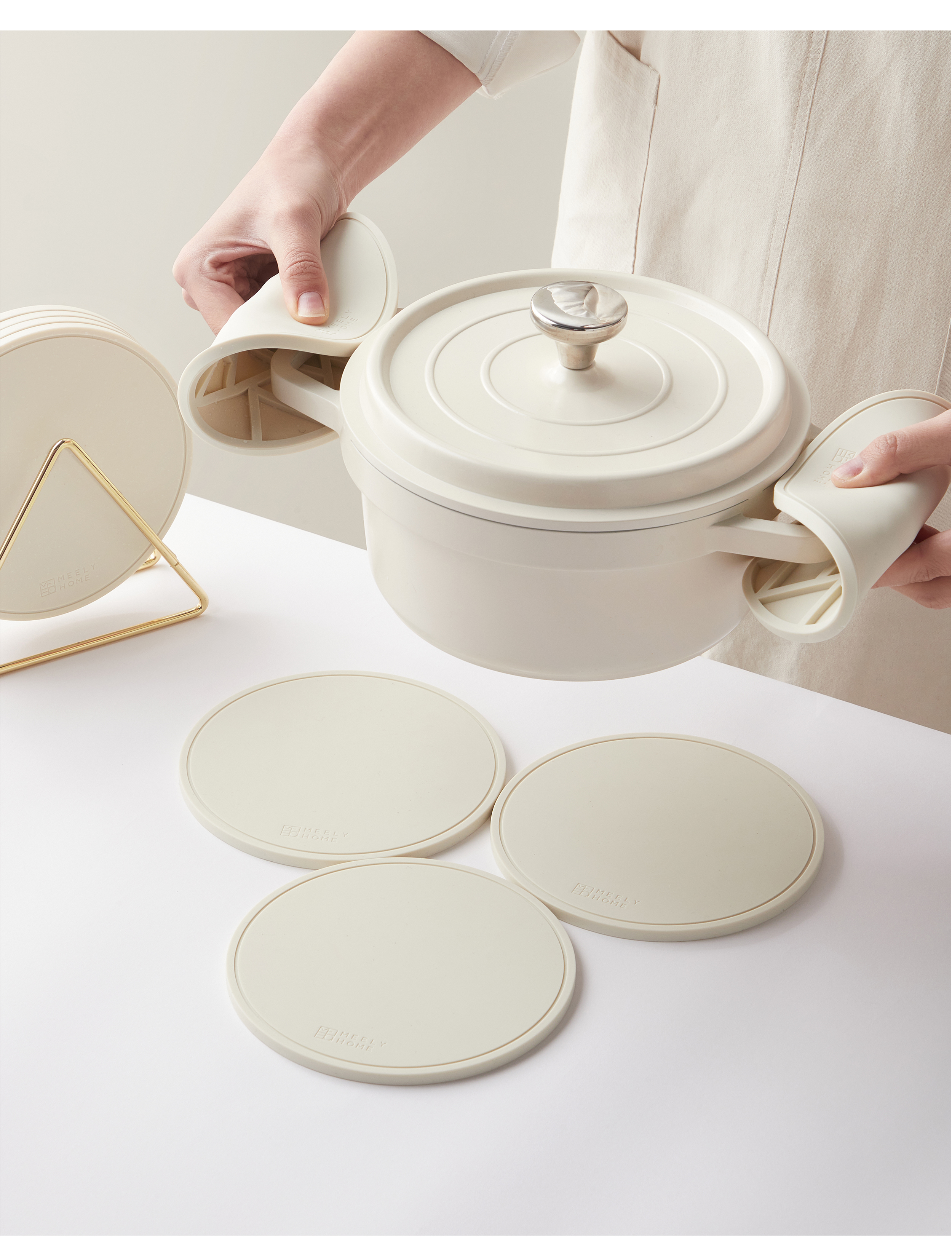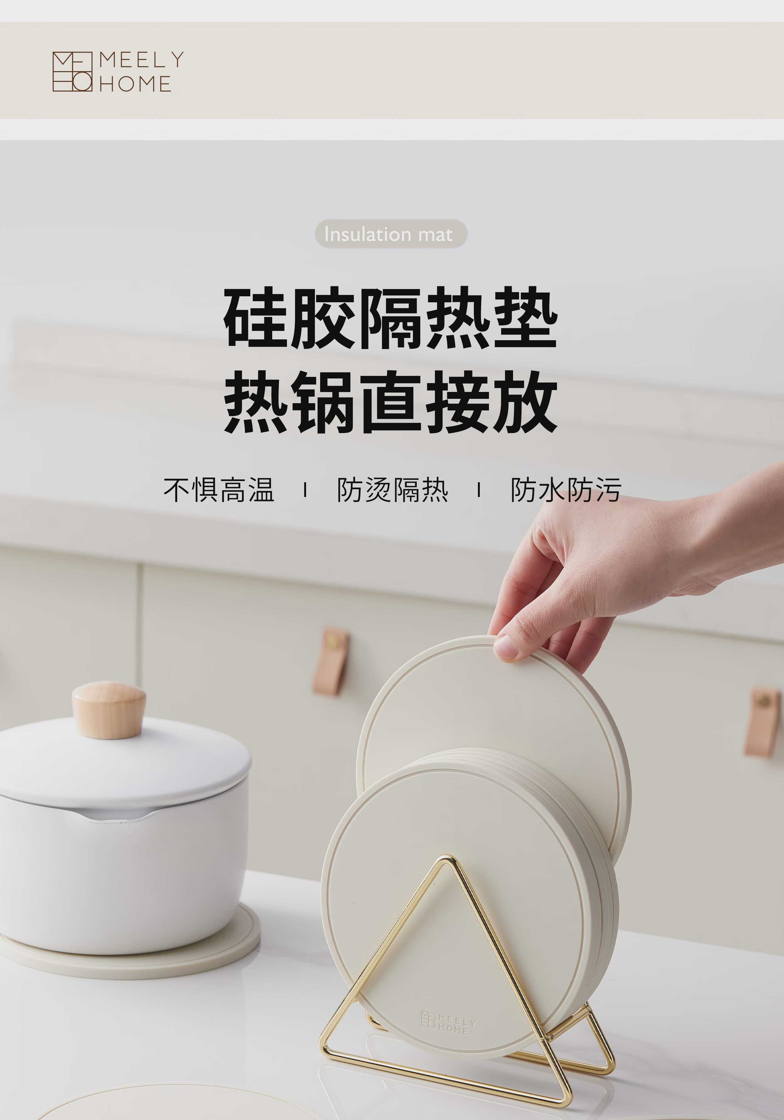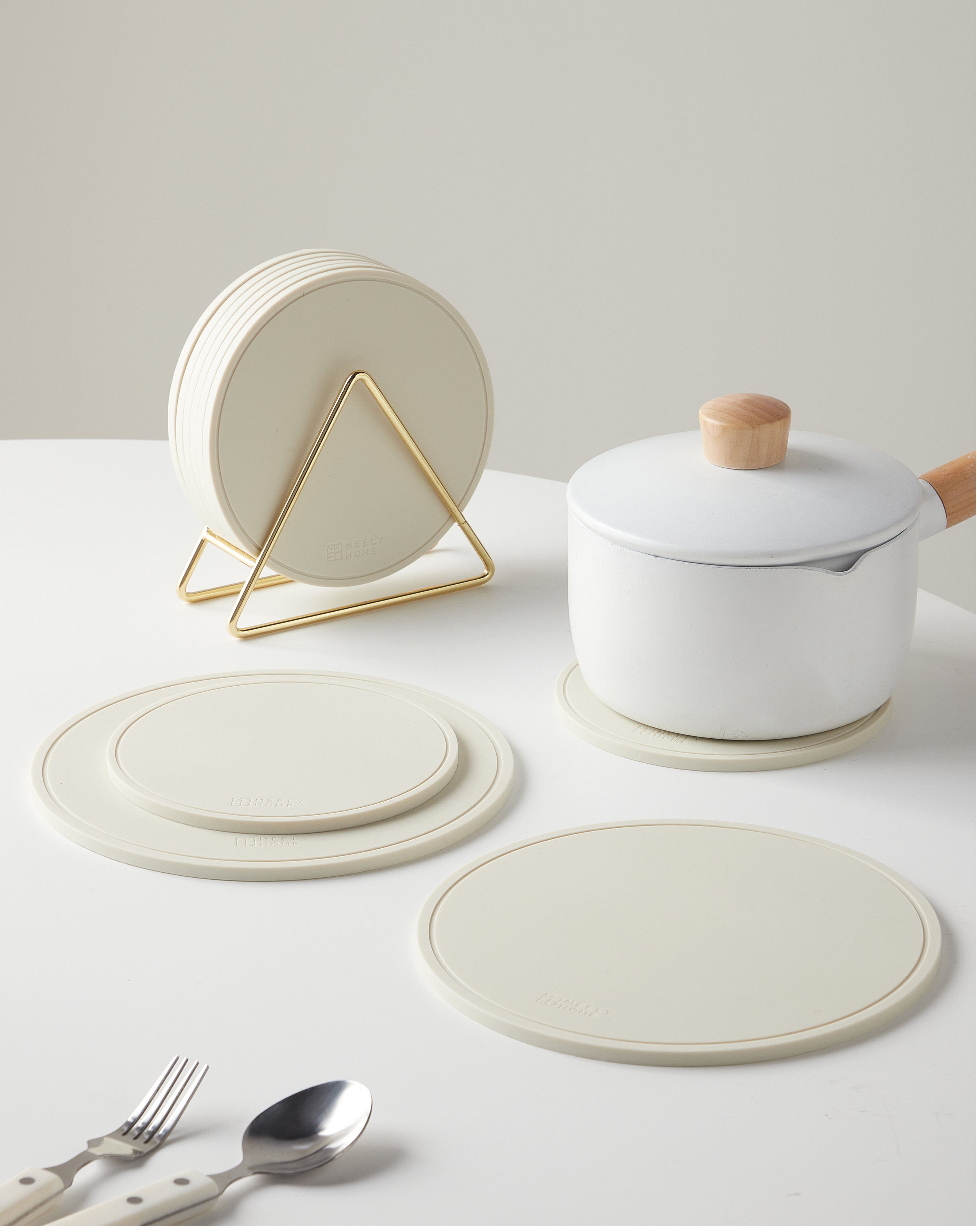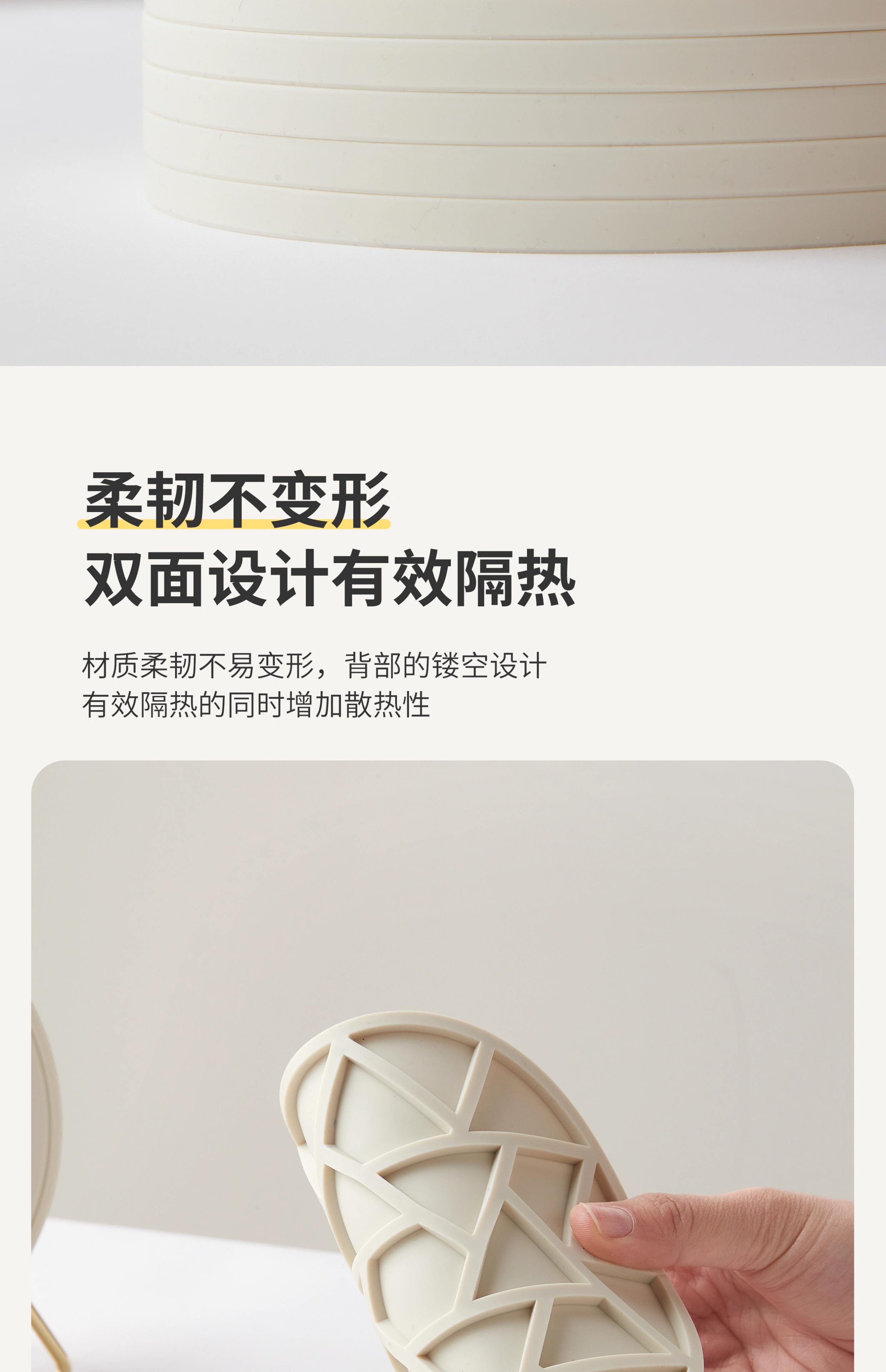 Mili Fengwu Insulation Mat Dining Table Anti-scalding Table Mat High Temperature Resistant Pot Mat Household Round Mat Silicone Rice White 16cm 6 pcs + 22cm pot holder 2 + storage shelf Silicone Insulation Mat
