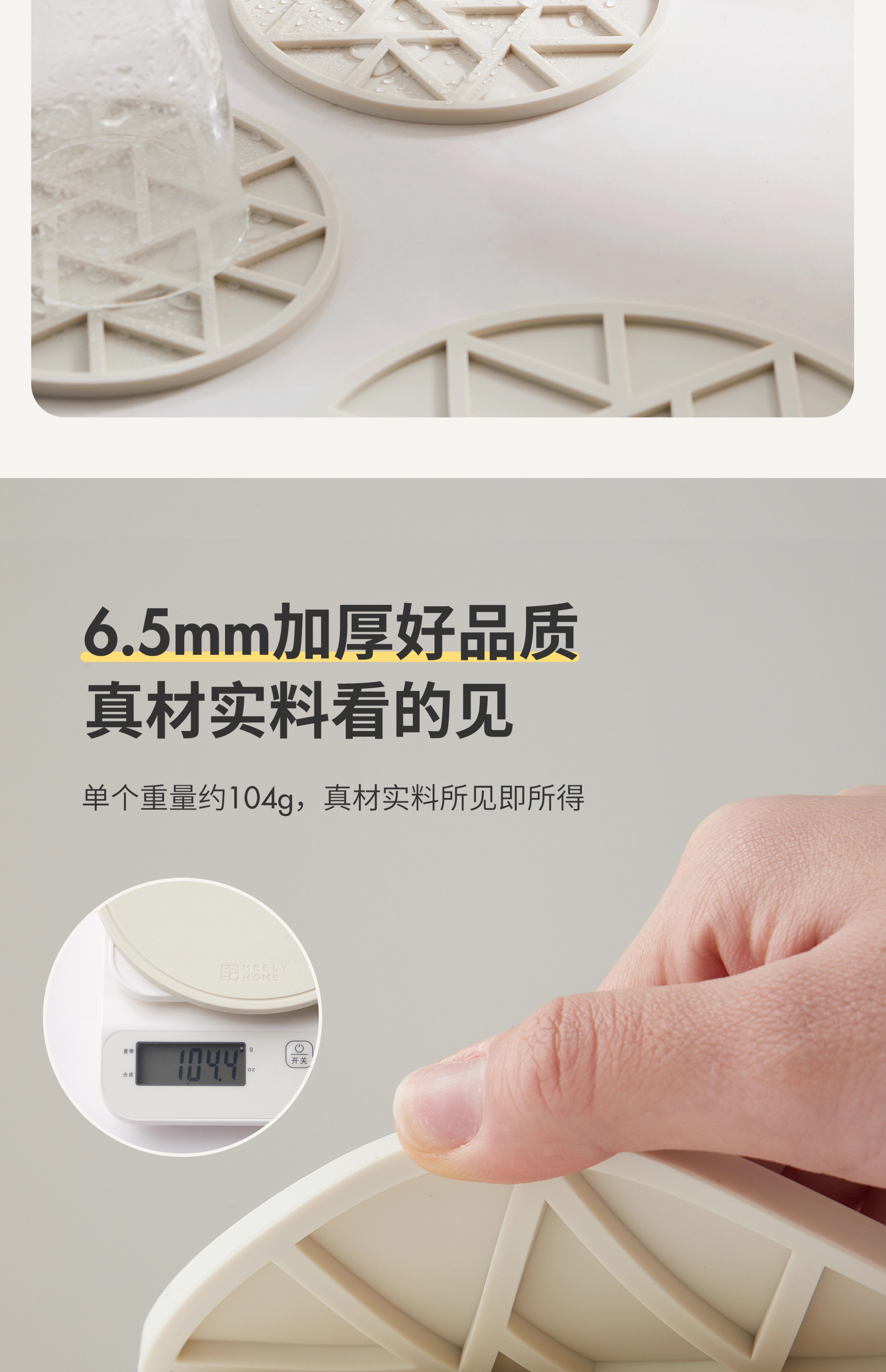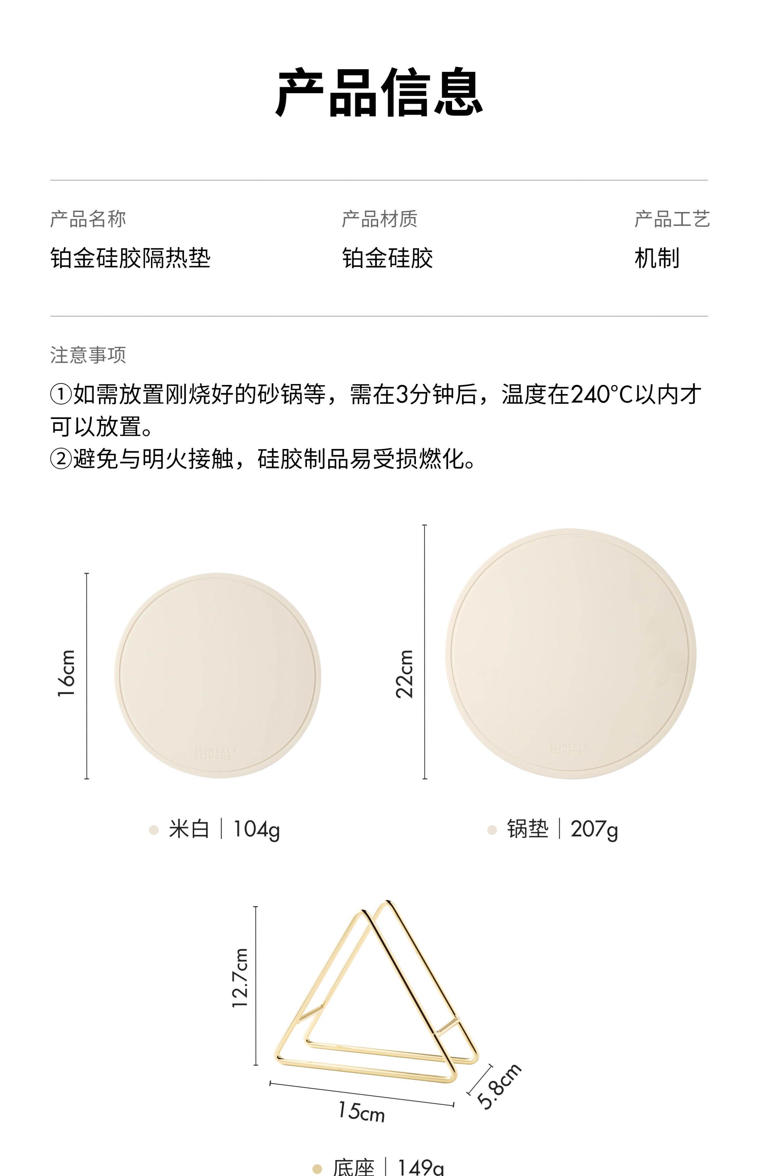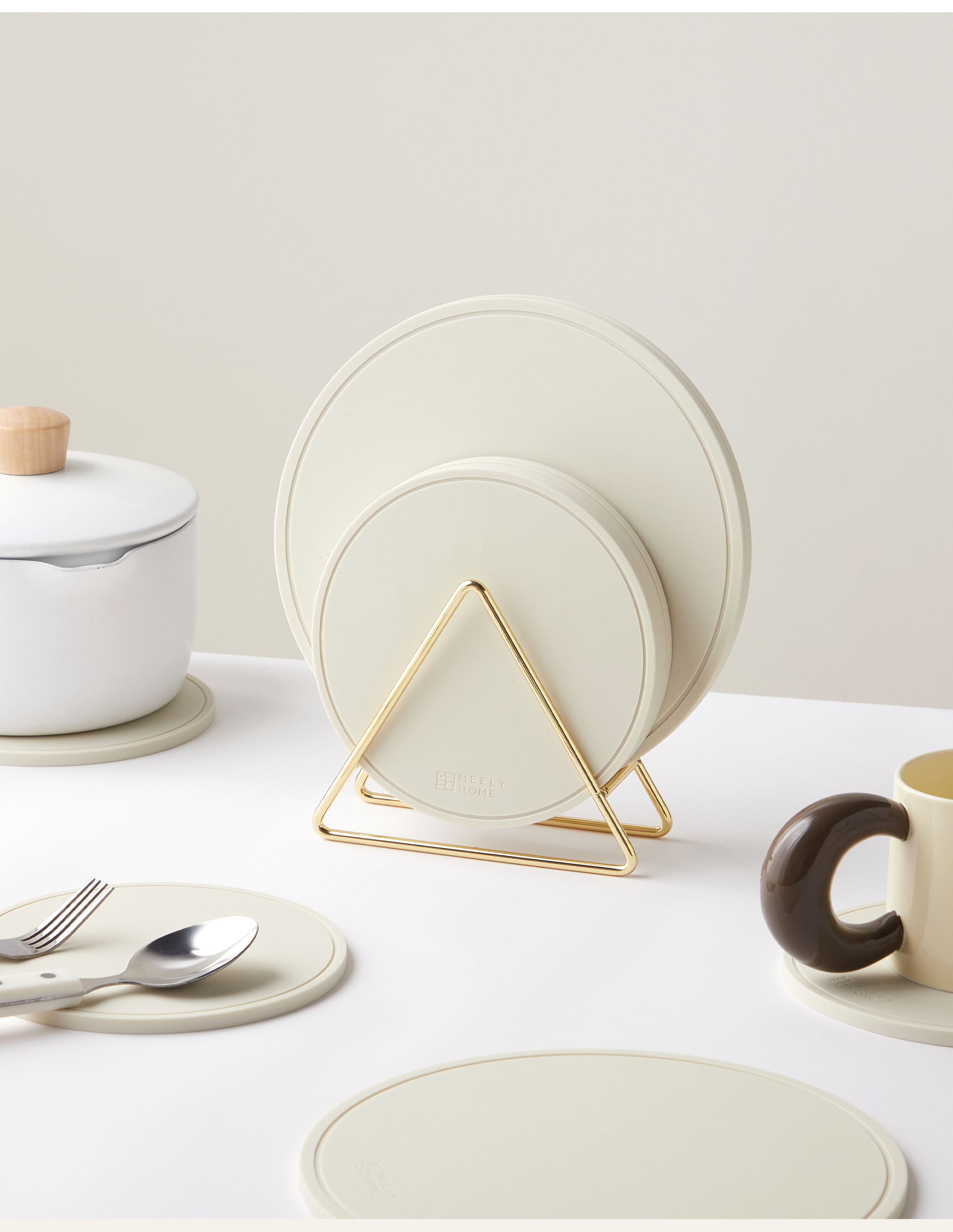 Mili Fengwu Insulation Mat Dining Table Anti-scalding Table Mat High Temperature Resistant Pot Mat Household Round Mat Silicone Rice White 16cm 6 pcs + 22cm pot holder 2 + storage shelf Silicone Insulation Mat
