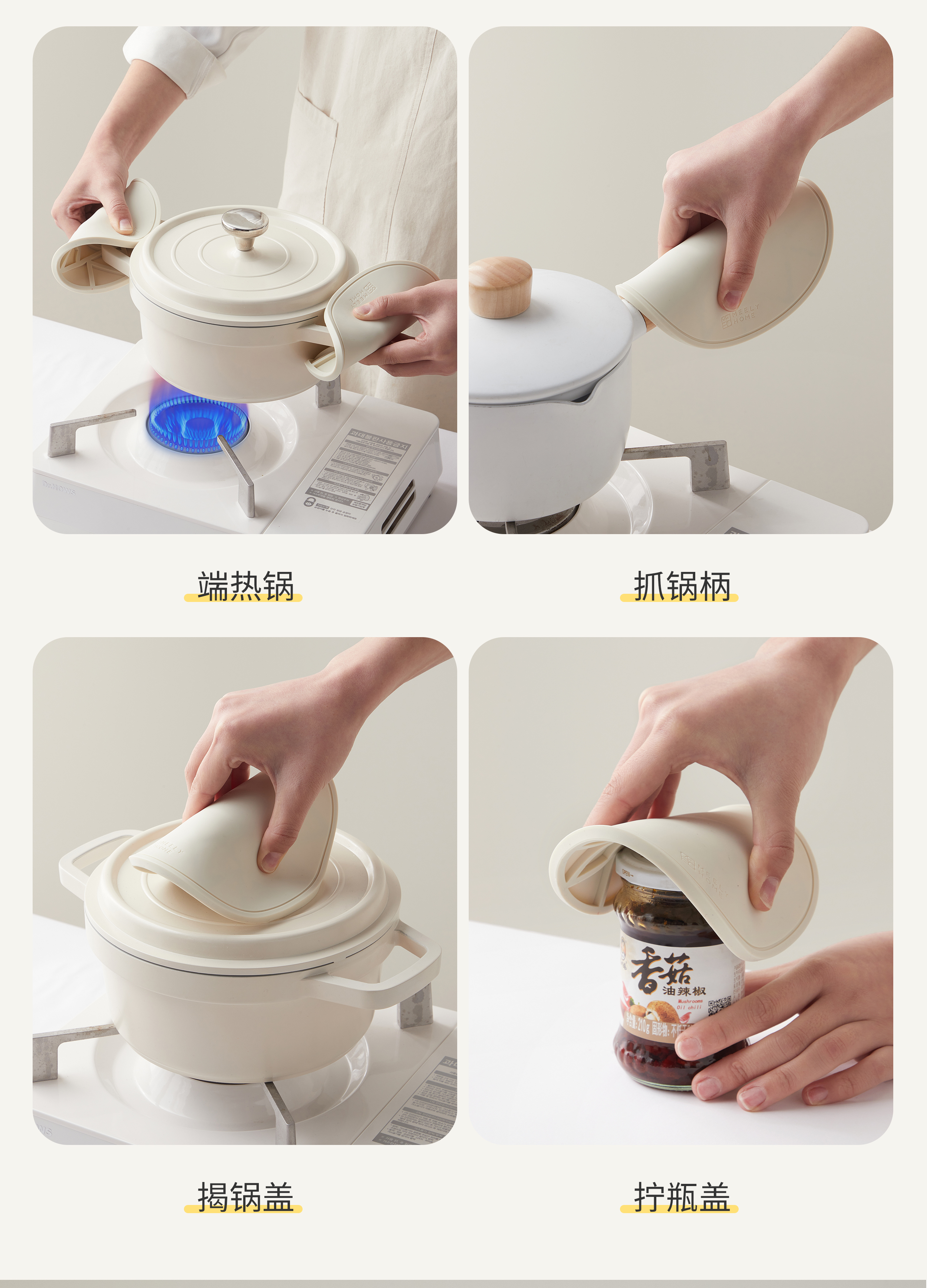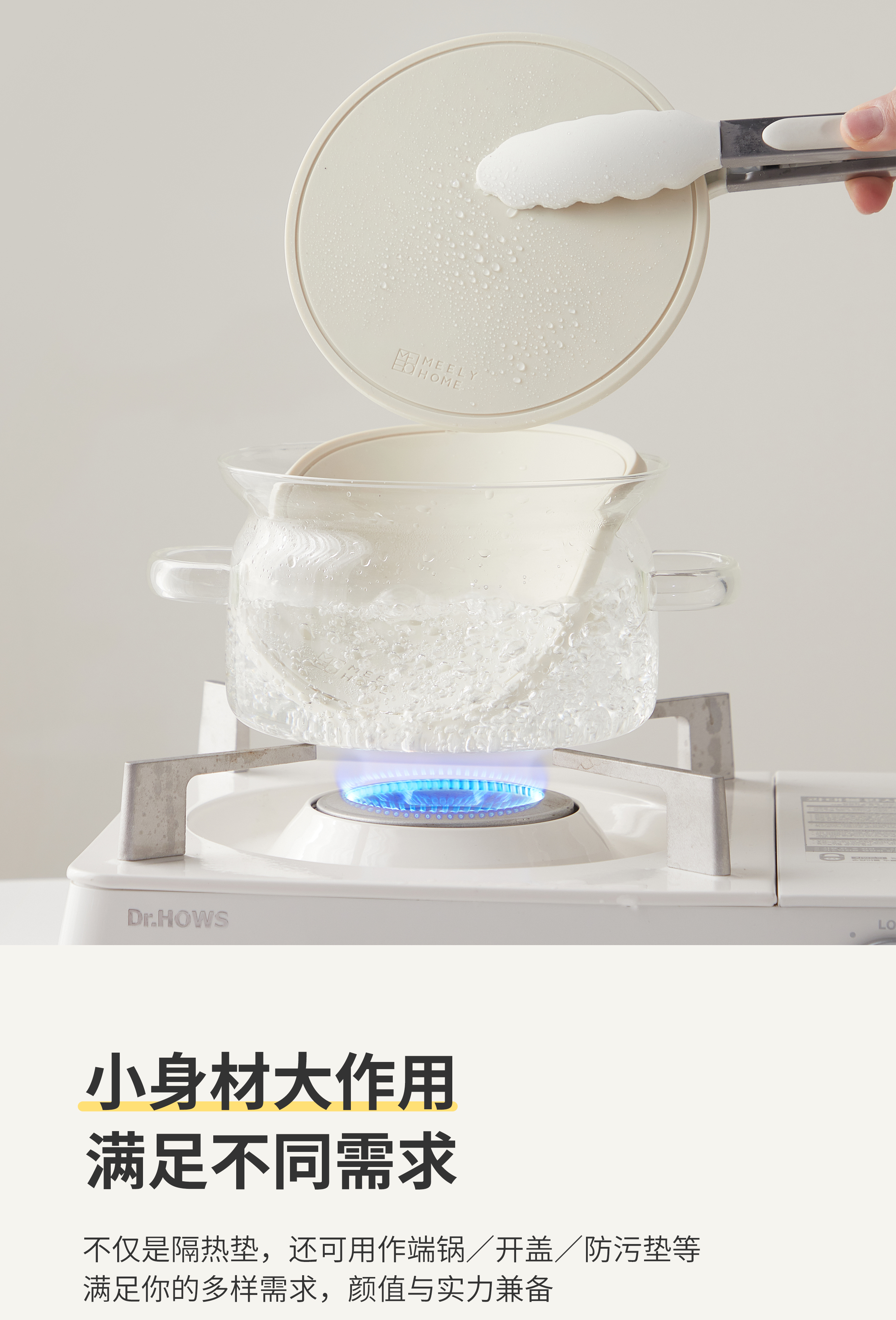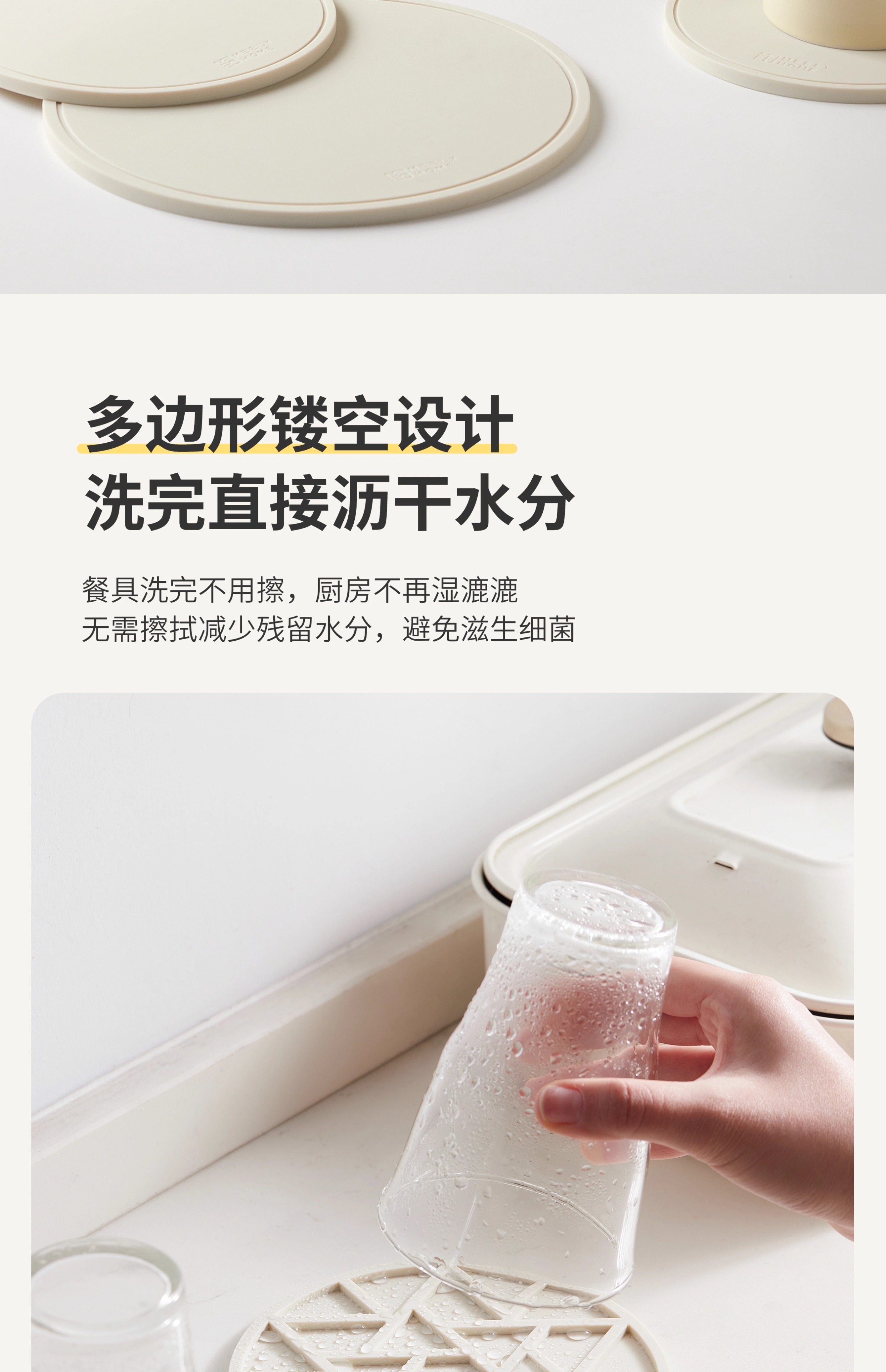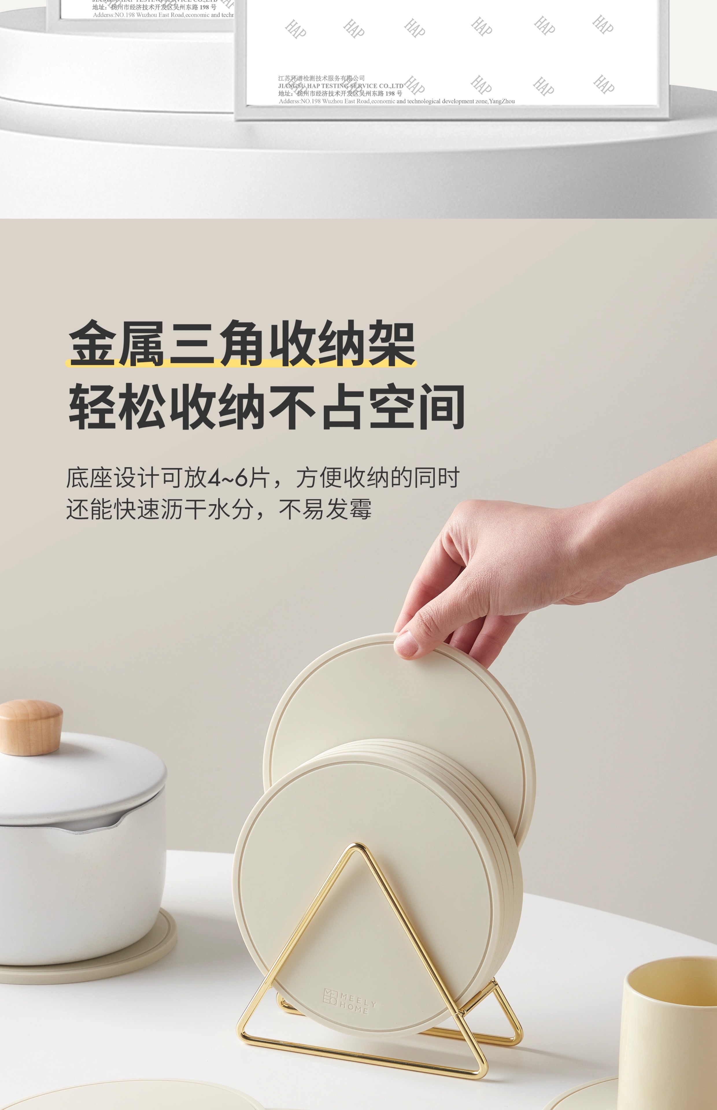 Mili Fengwu Insulation Mat Dining Table Anti-scalding Table Mat High Temperature Resistant Pot Mat Household Round Mat Silicone Rice White 16cm 6 pcs + 22cm pot holder 2 + storage shelf Silicone Insulation Mat
