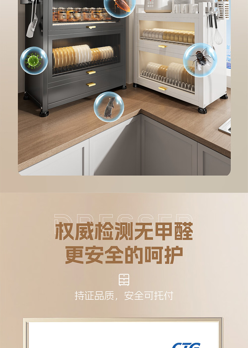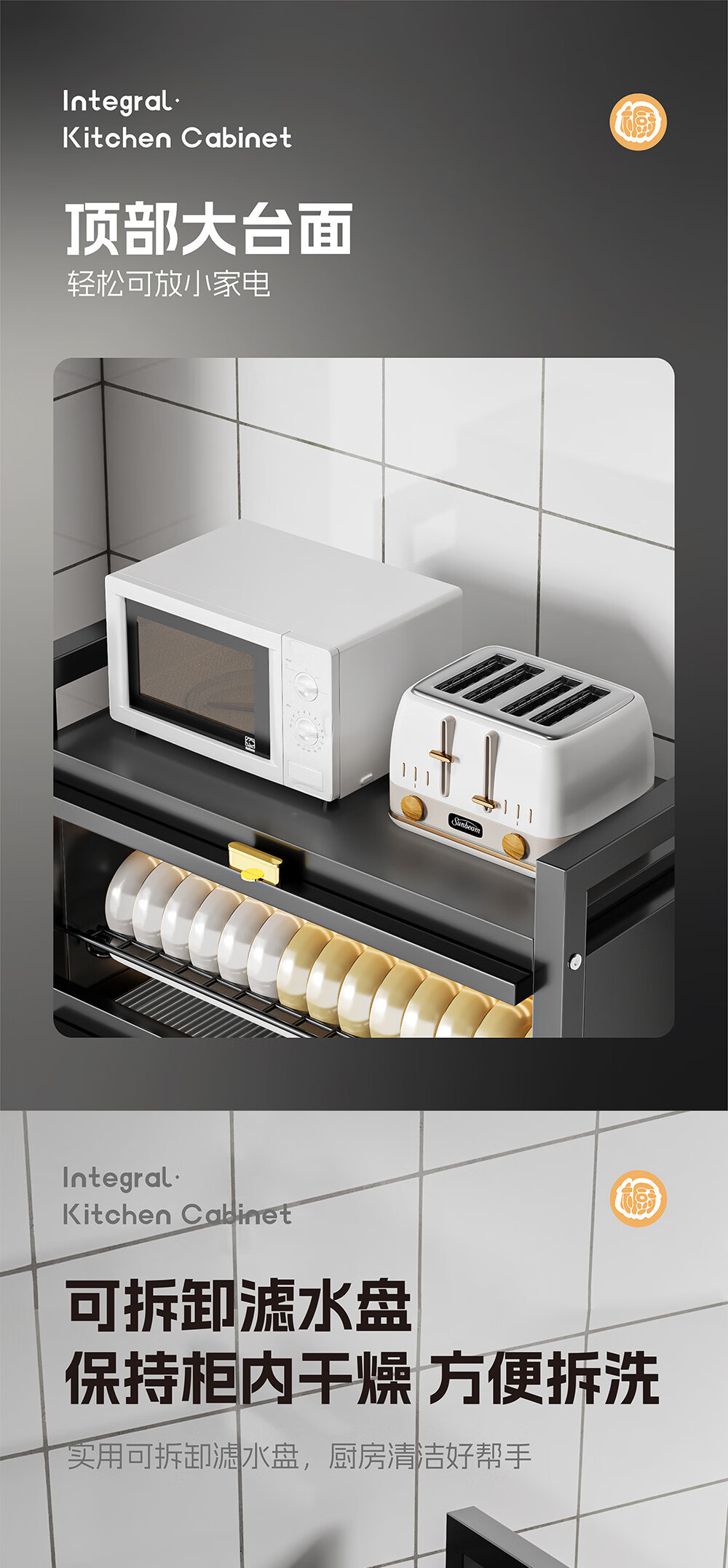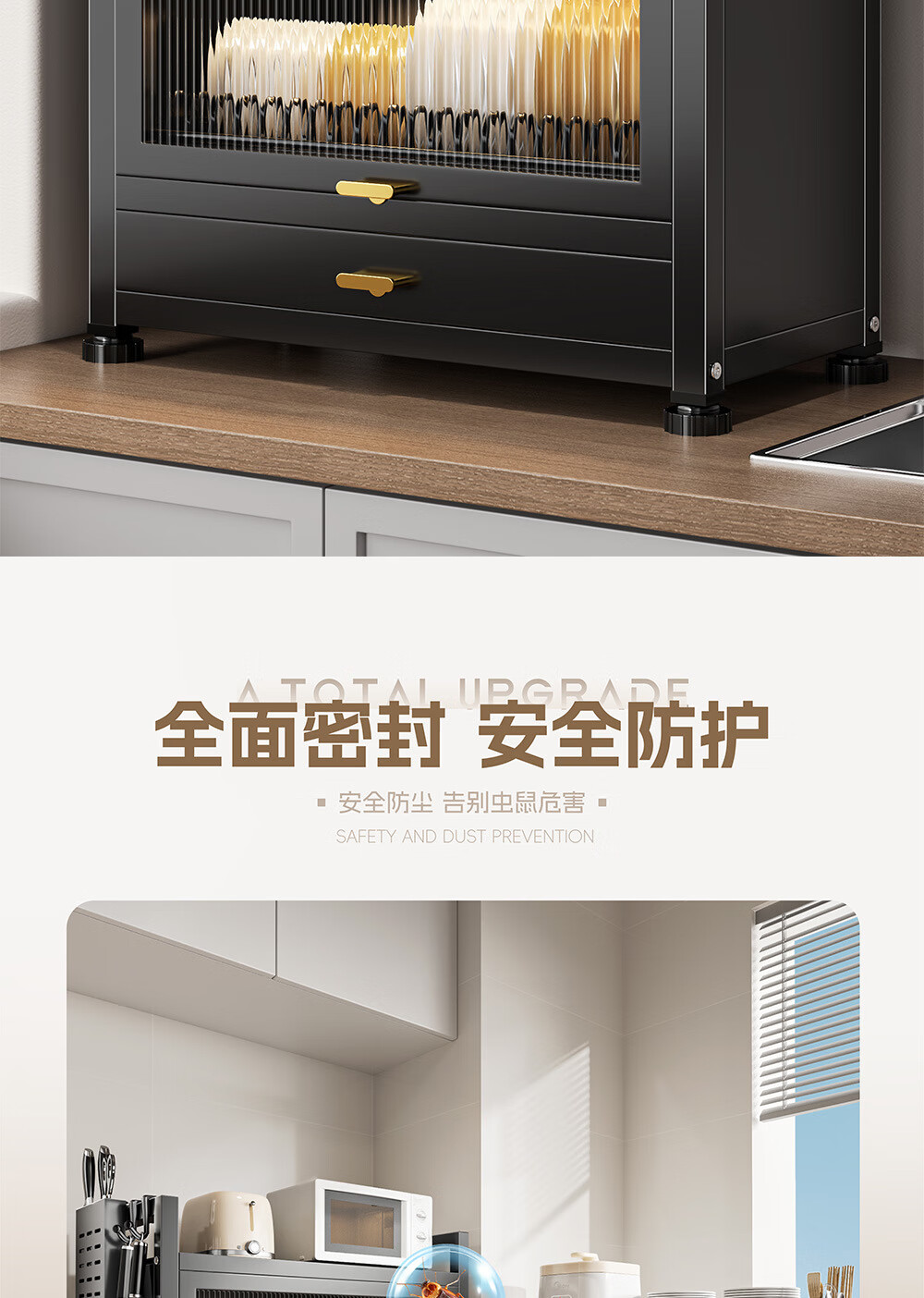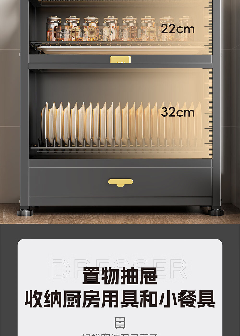 Dish drain rack cupboard household multi-functional cabinet double layer dish draining cabinet kitchen dish storage cabinet 44cm black knife holder+chopstick barrel+hook*4