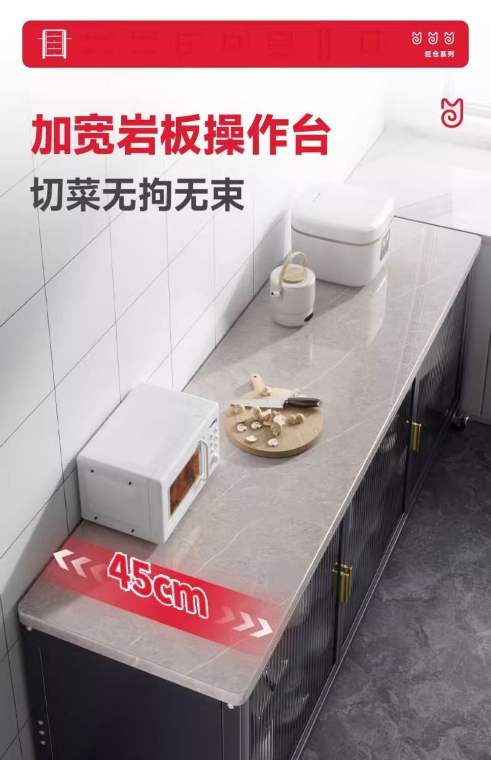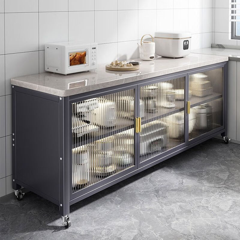 Kitchen slate shelf multi-functional floor-to-ceiling storage microwave meal side storage cabinet vegetable cutting cupboard with door length 60 width 45 height 80 luxury gray new style flip-up door
