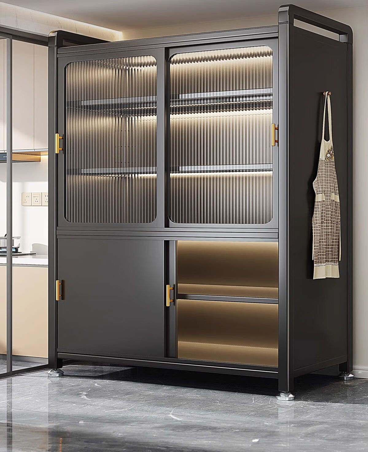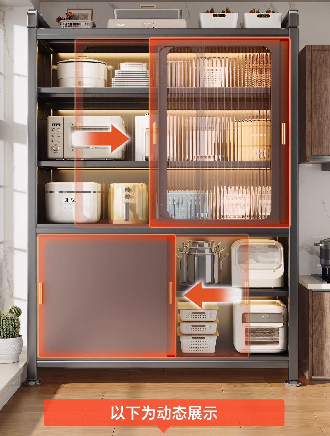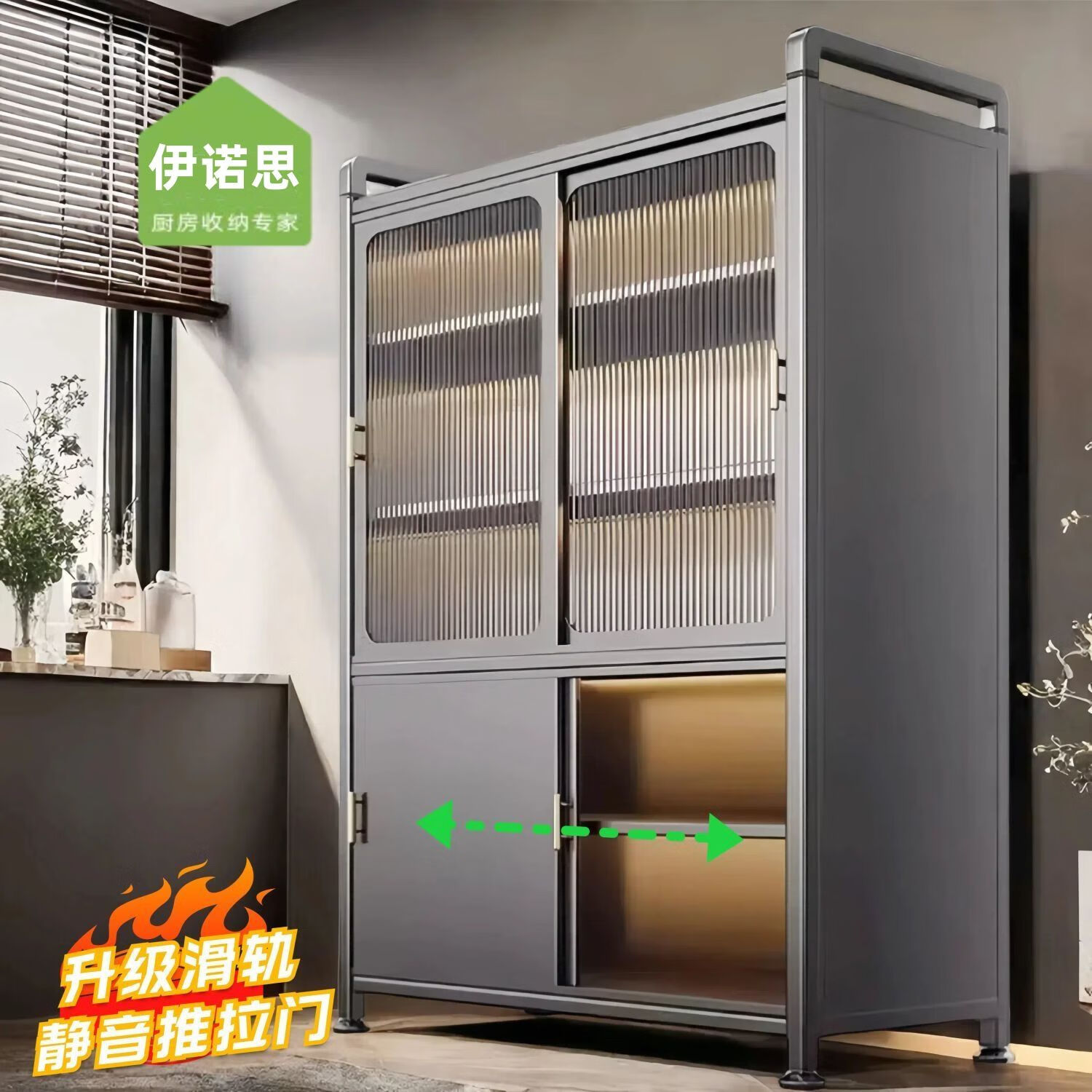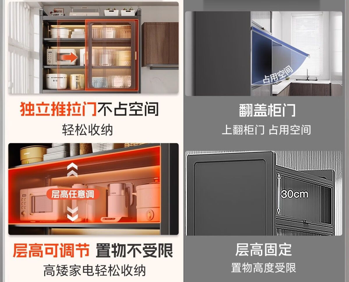 Kitchen cabinets multi-layer floor-to-ceiling sliding door cabinets household pots and bowls storage cabinets multi-functional storage cabinets high-grade gray-6 layers length 80 width 42 height 187 | Upgraded sliding door