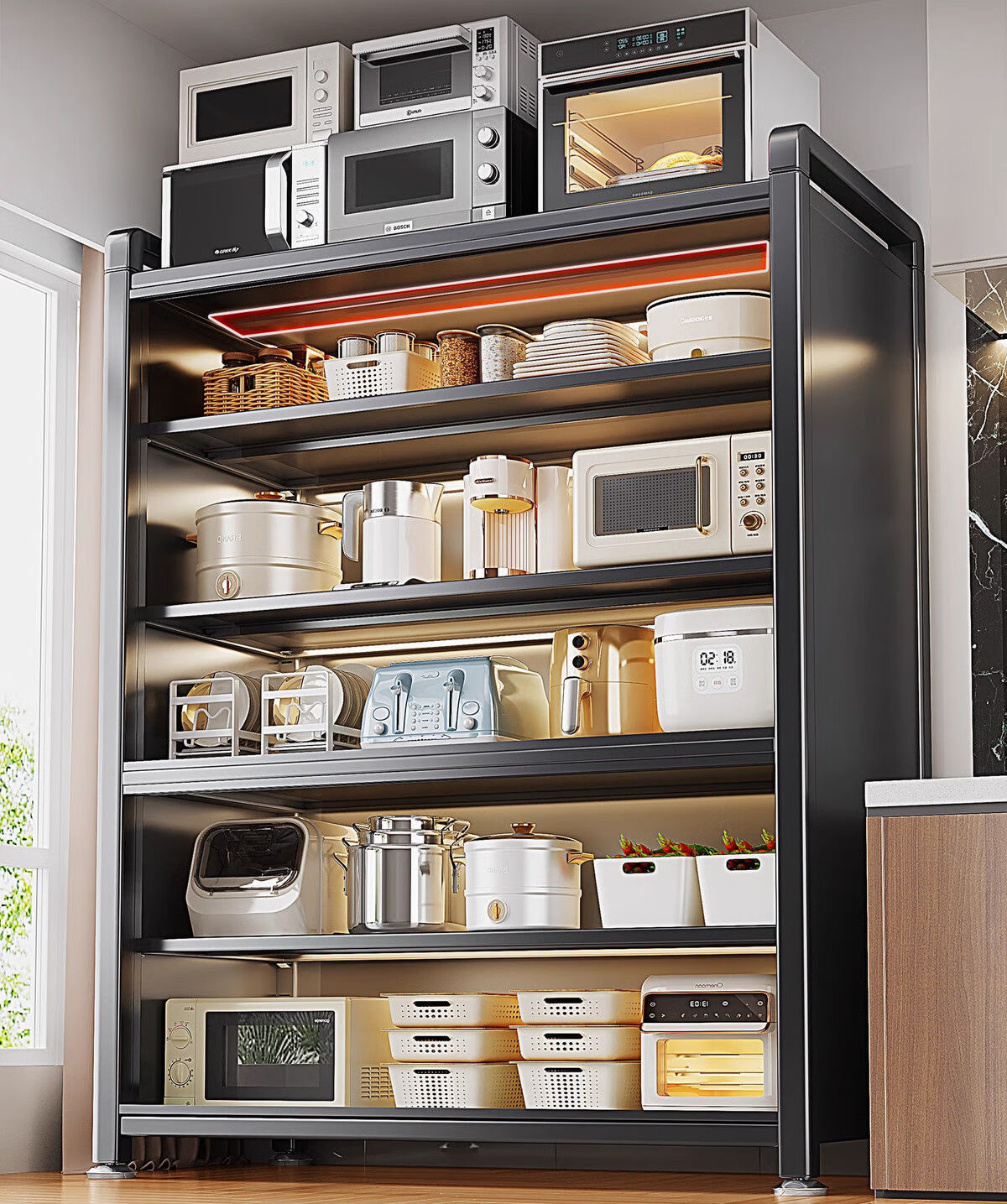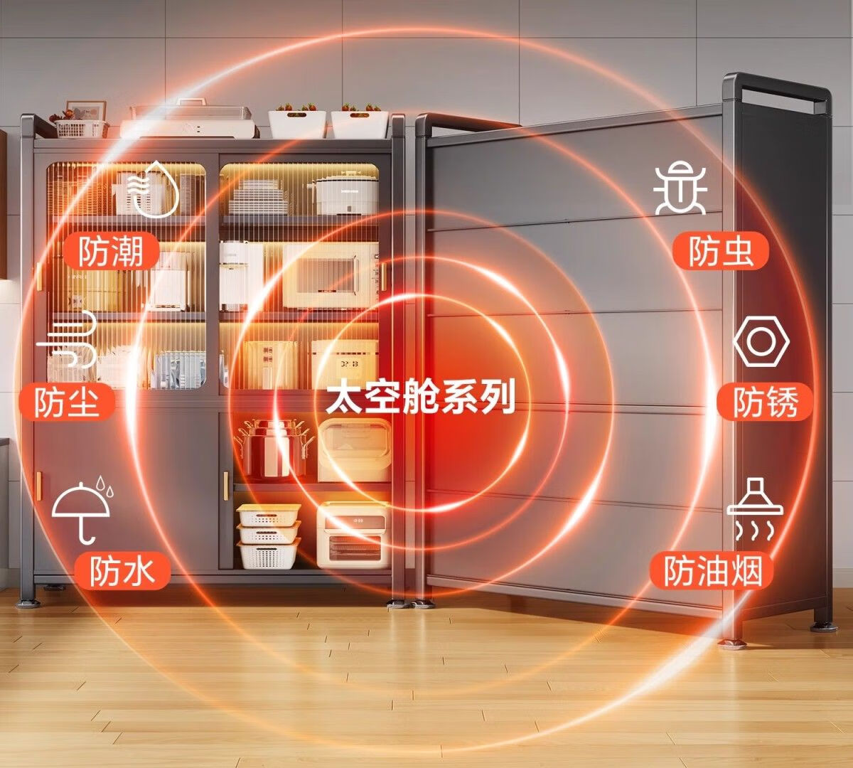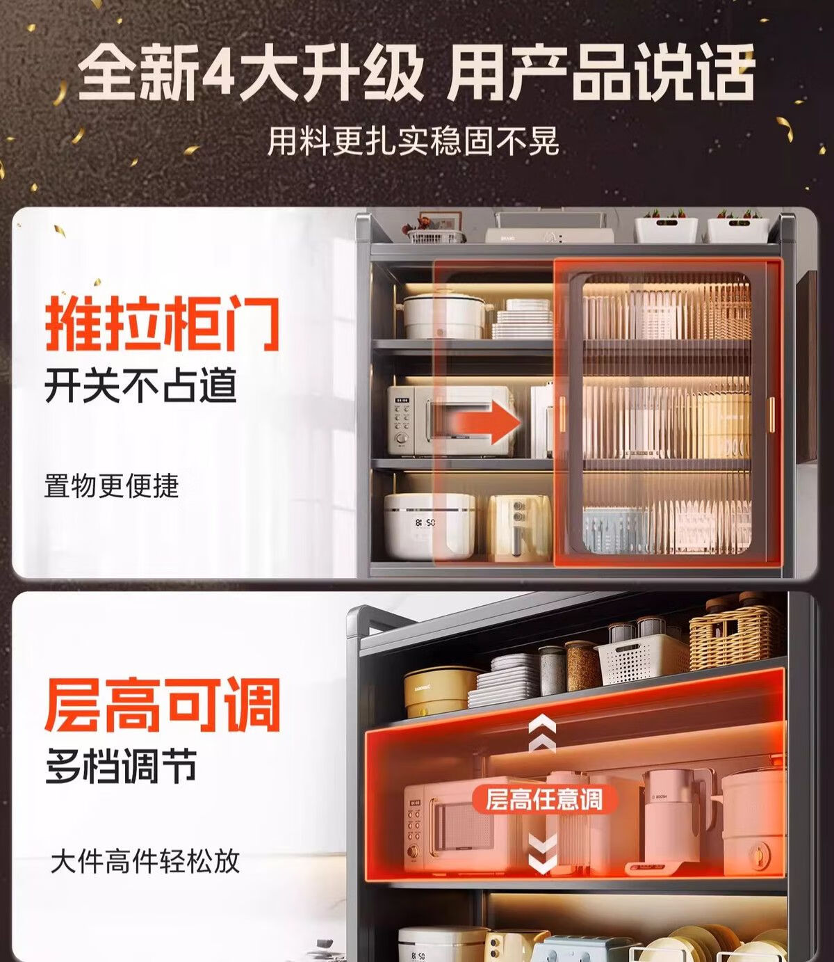 Kitchen cabinets multi-layer floor-to-ceiling sliding door cabinets household pots and bowls storage cabinets multi-functional storage cabinets high-grade gray-6 layers length 80 width 42 height 187 | Upgraded sliding door
