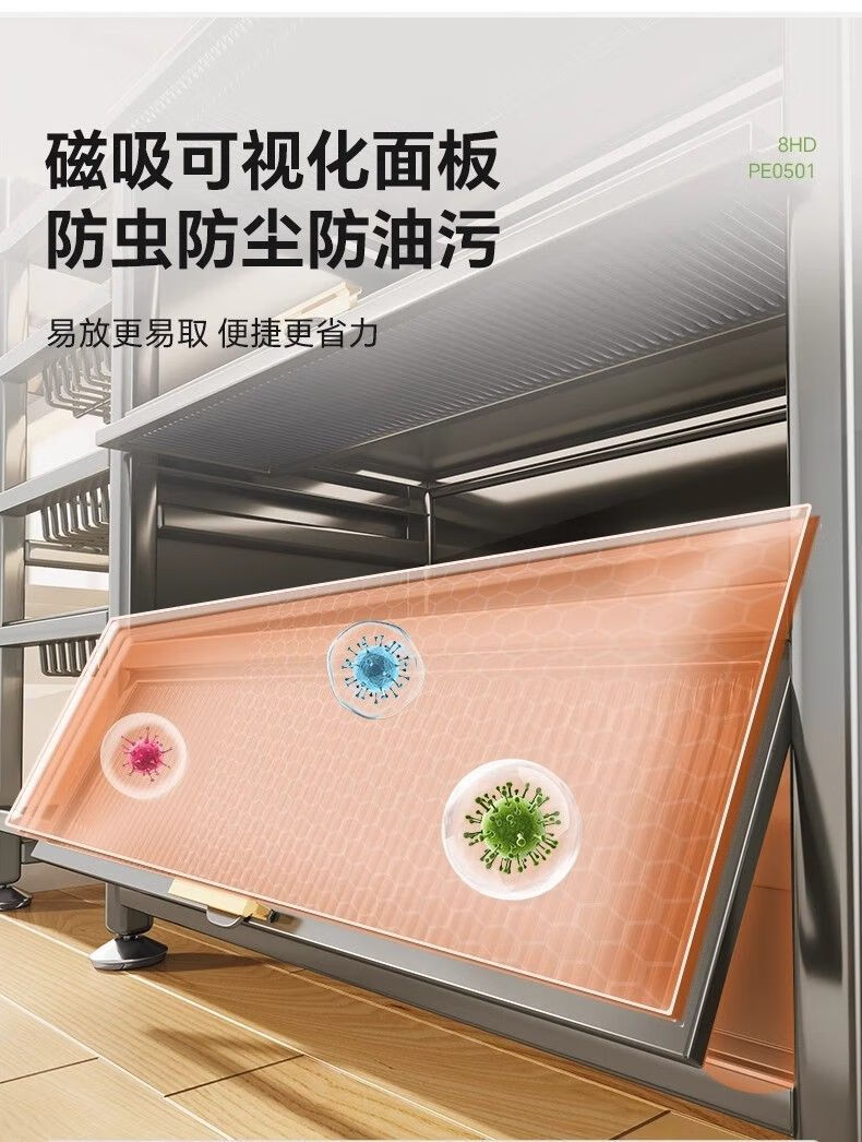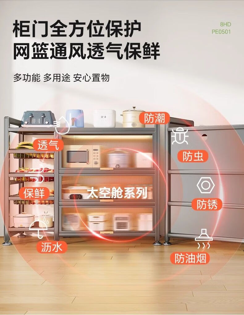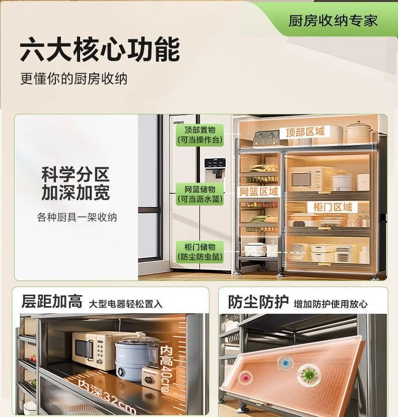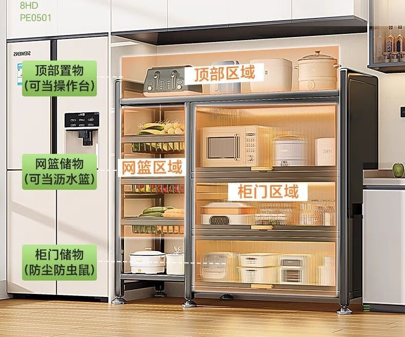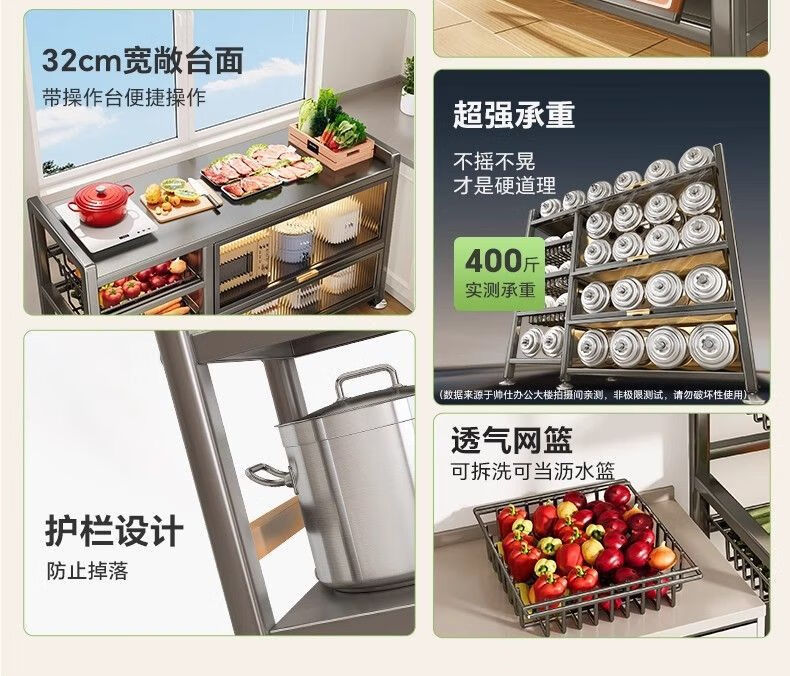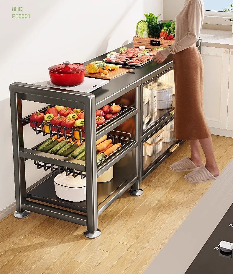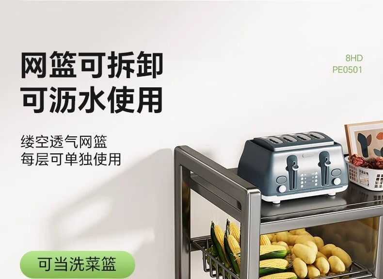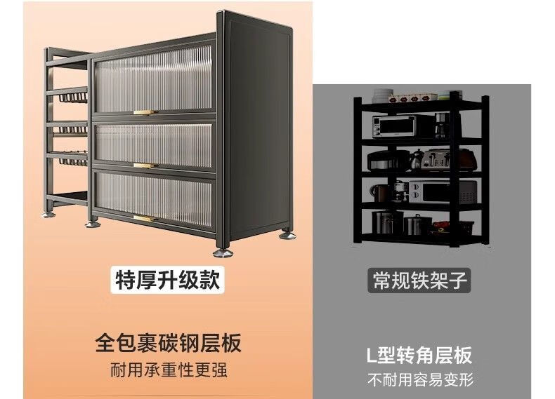 Reinforced kitchen shelf, floor-standing multi-functional vegetable cutting table, workbench, multi-layer storage cabinet, cupboard and cupboard, vegetable basket style, elegant black, plus wheels, 3 layers long 116*width 32*height 86