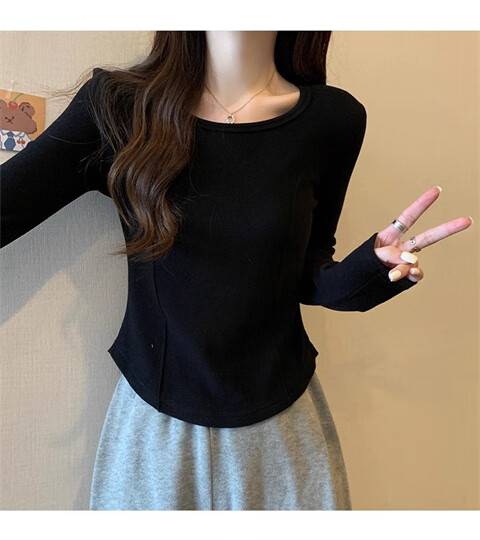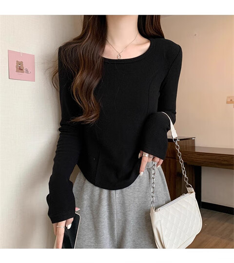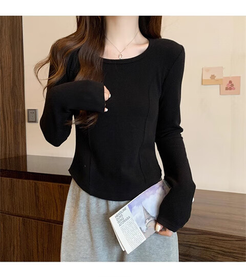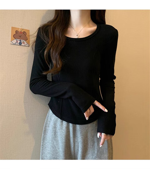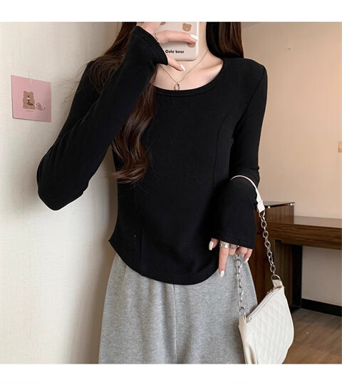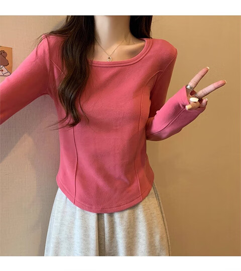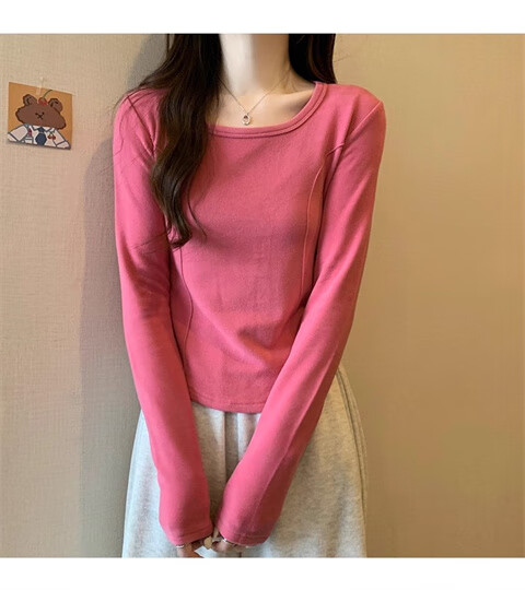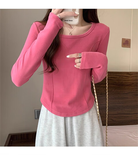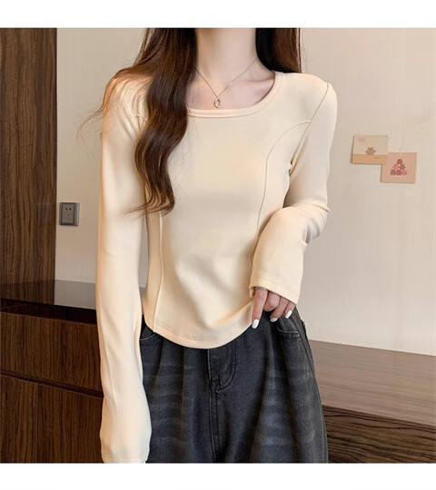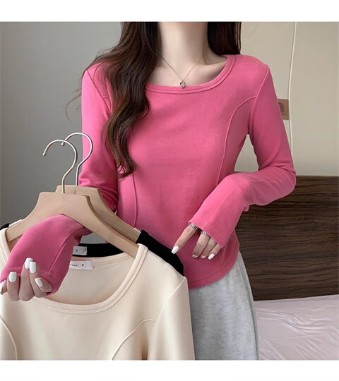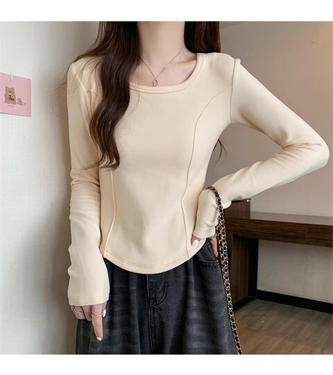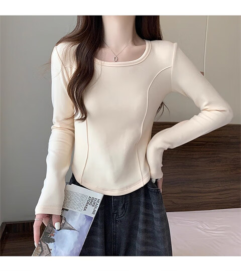 German velvet long-sleeved t-shirt women's base layer warm autumn and winter new u-neck high-end slim fit plus velvet outer top double-sided German velvet continuous constant temperature apricot L recommended 100-120 pounds