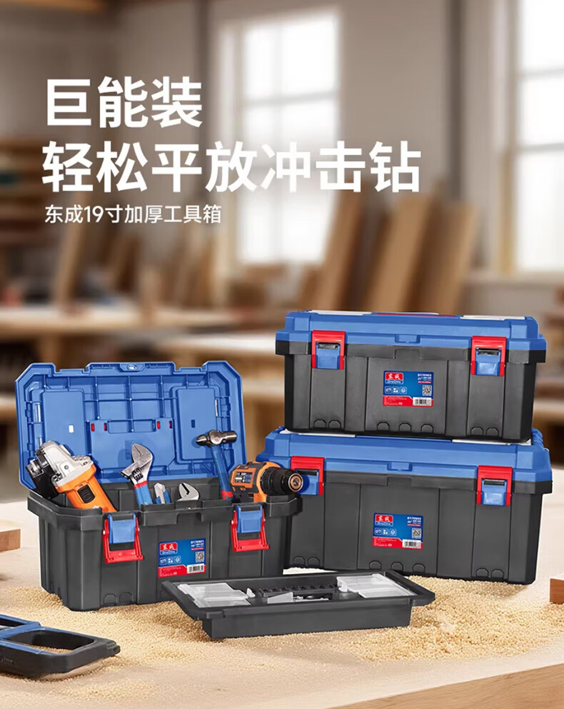 Dongcheng Toolbox Storage Box Hardware Large Industrial Grade Home Portable Car Multifunctional Maintenance Electrician 19-inch Thickened Flagship Toolbox