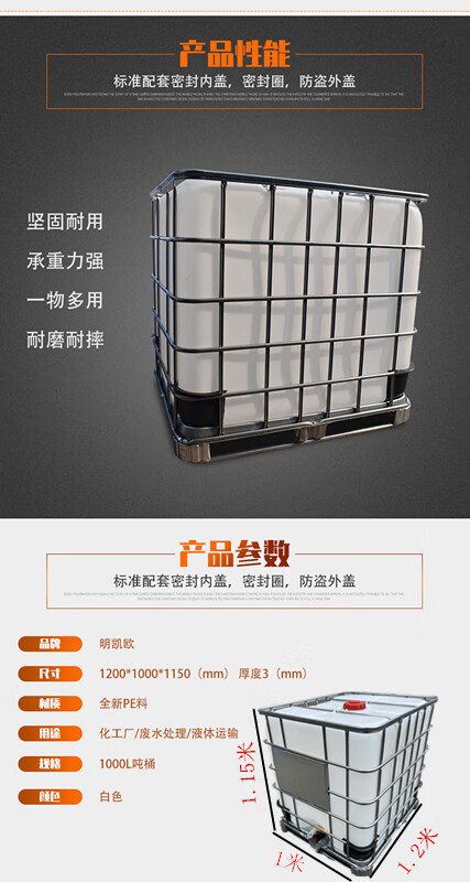 One ton new 1000L plastic water tank diesel barrel 500L large water tank thickened chemical water storage tank 1000L white ton barrel (not cleaned)