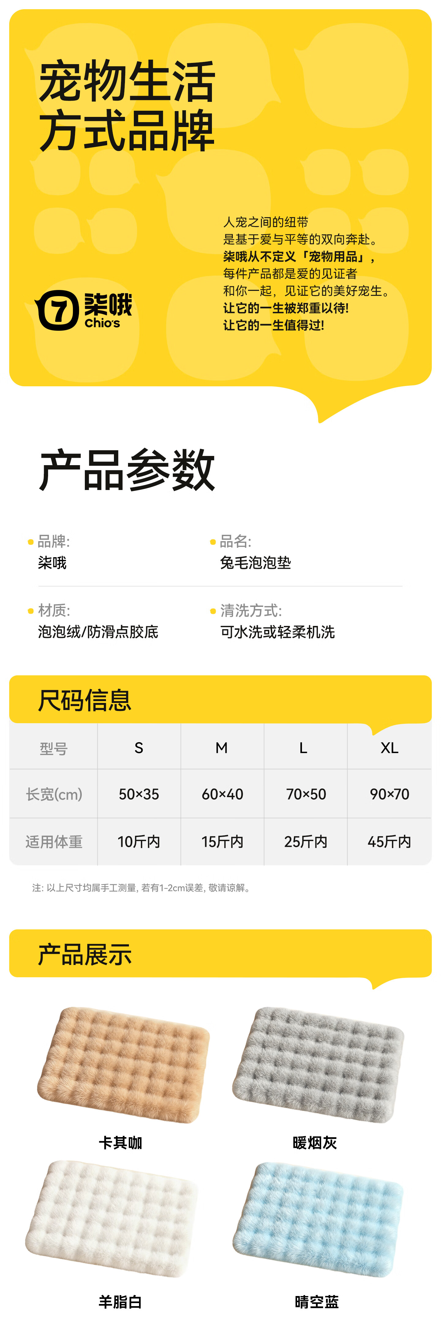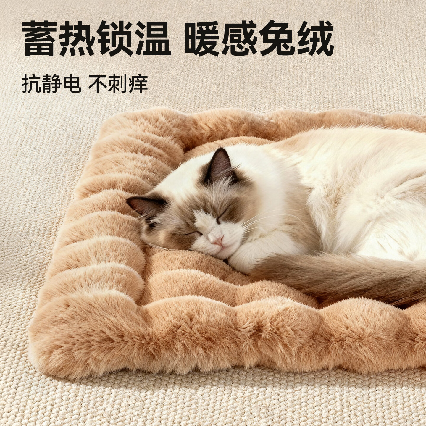 Qi Oh Cat Mat Winter Warm Sleeping Mat All Seasons Dog Mat Cat Blanket Pet Sleeping Cat and Dog Nest Floor Mat Bubble Rabbit Velvet Mat-Khaki S Size-50*35cm Suitable for under 10 pounds