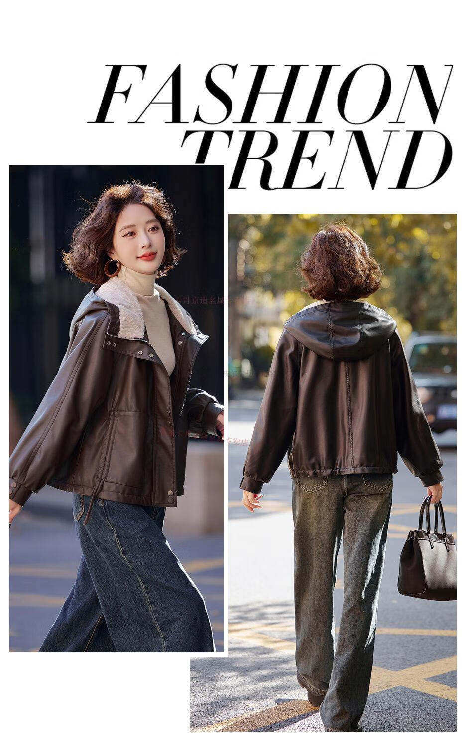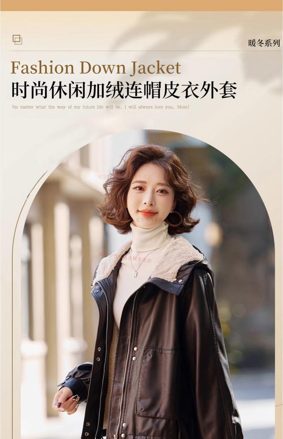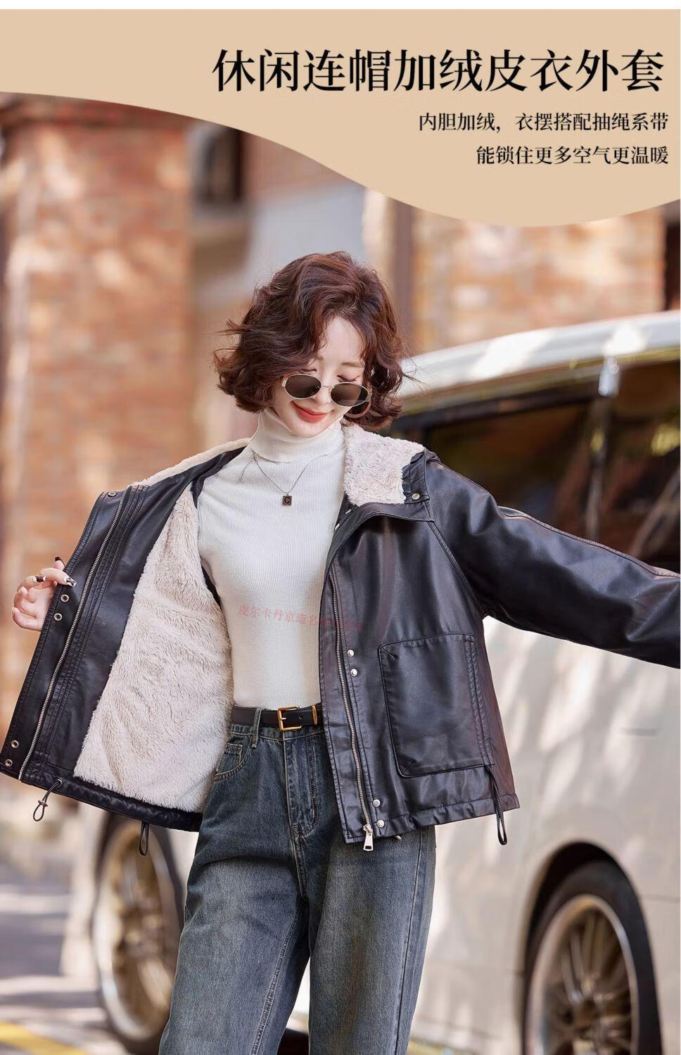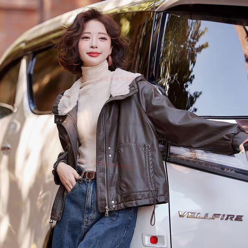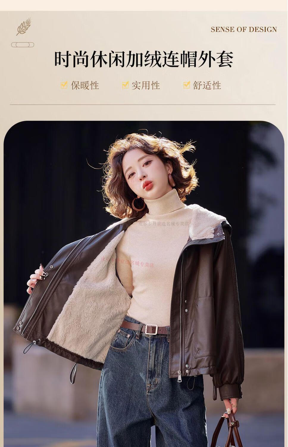 Woodpecker (TUCANO) velvet thickened warm leather jacket for women in winter small casual loose fur all-in-one jacket top hooded jacket khaki this year's popular light luxury brand M 95-107