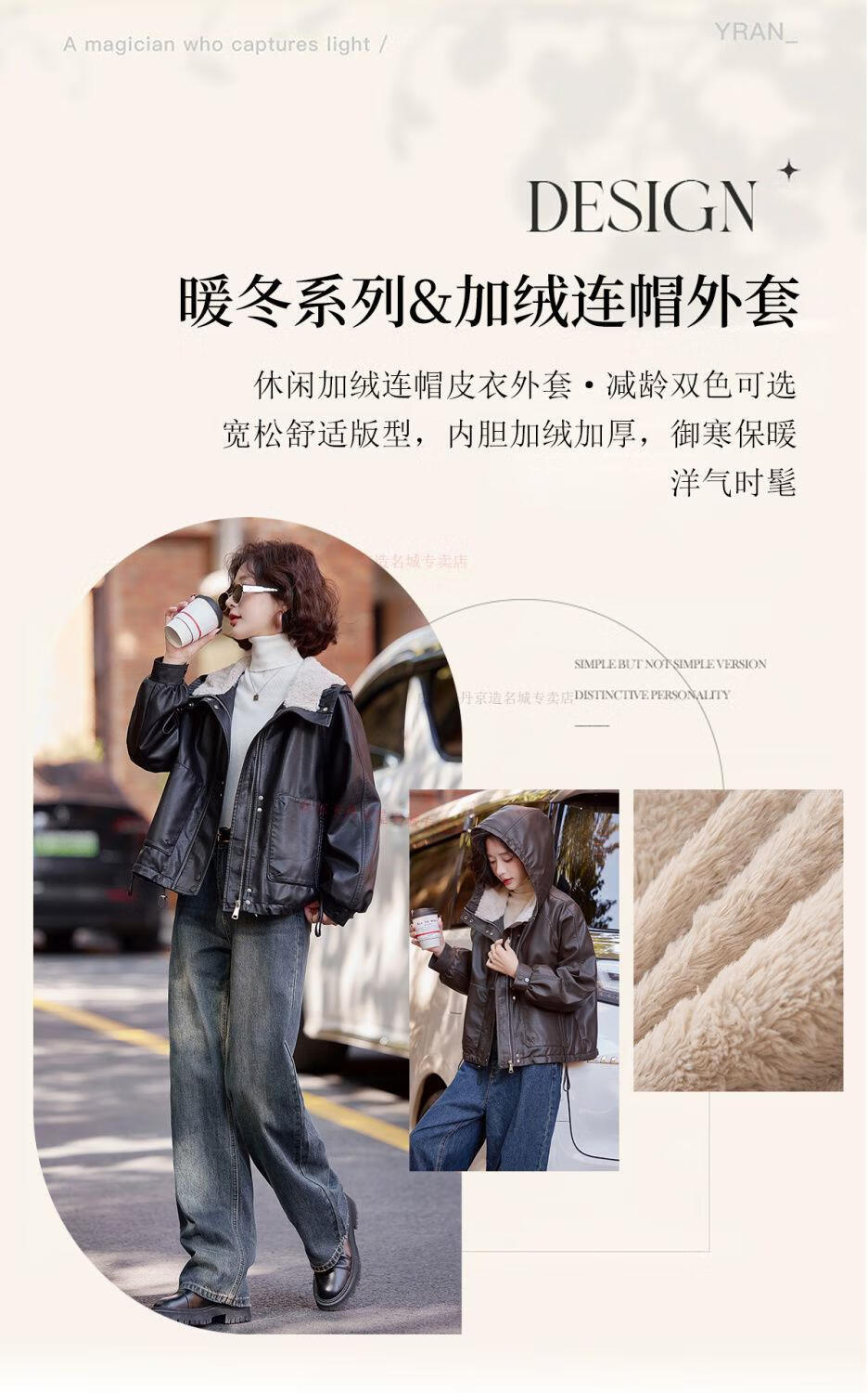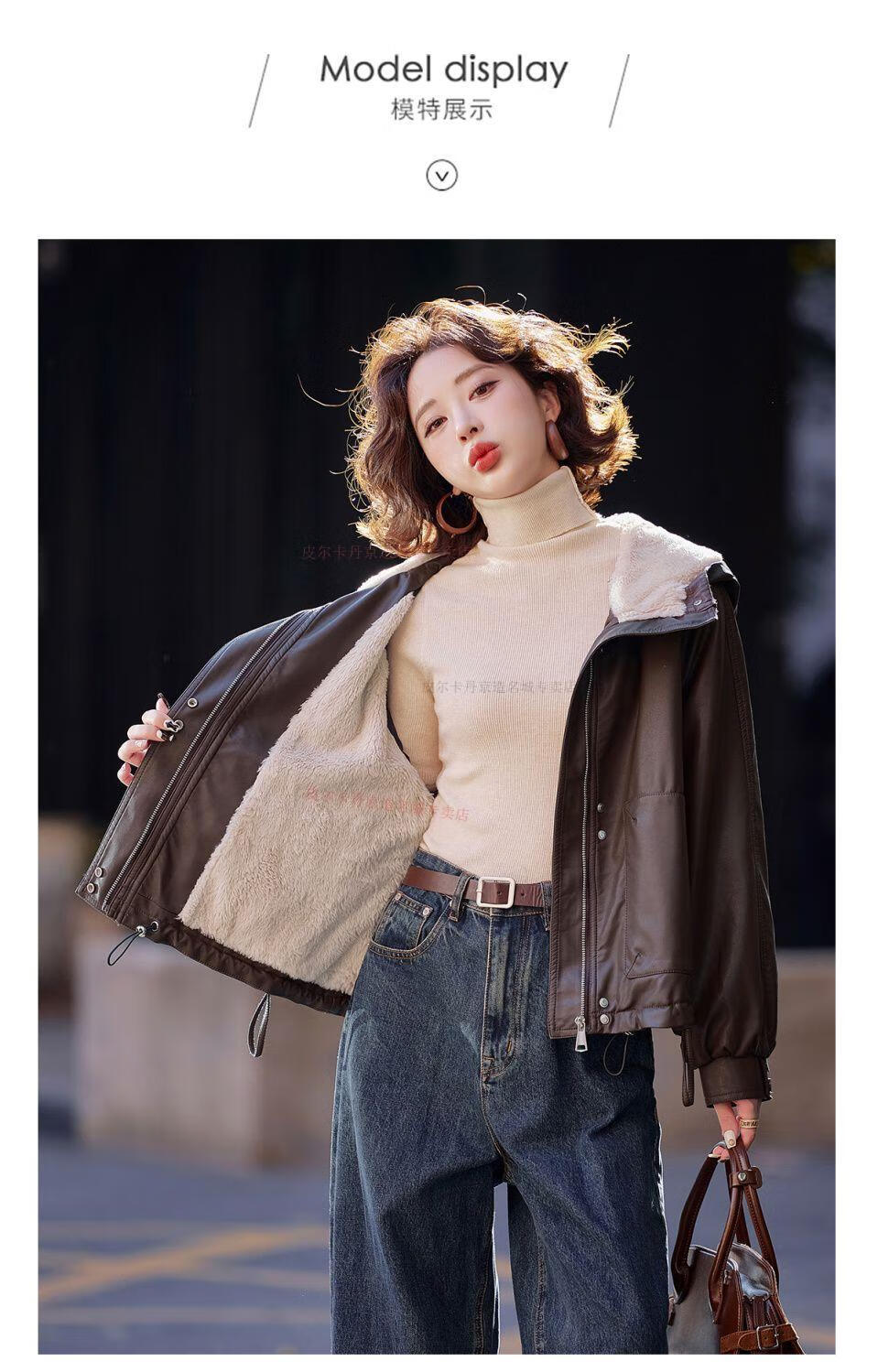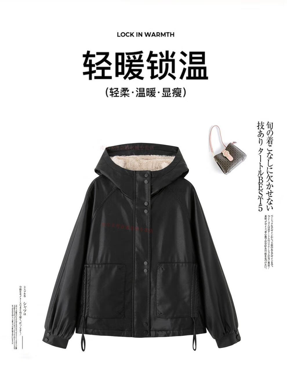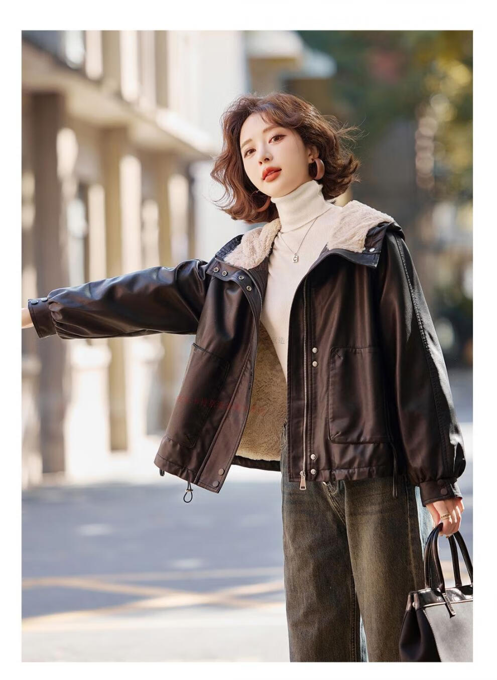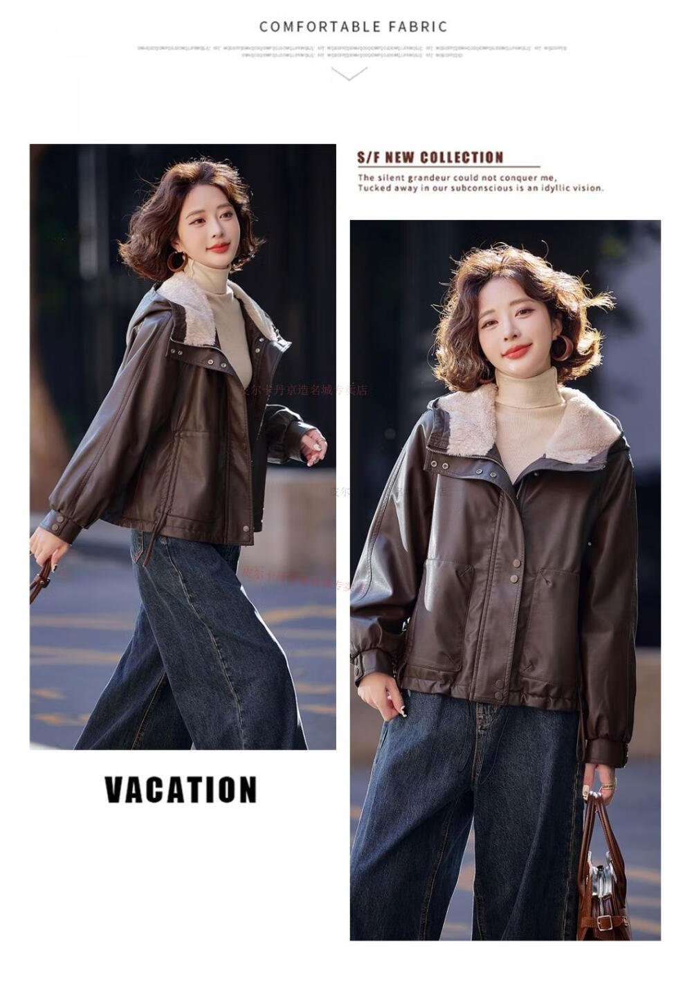 Woodpecker (TUCANO) velvet thickened warm leather jacket for women in winter small casual loose fur all-in-one jacket top hooded jacket khaki this year's popular light luxury brand M 95-107