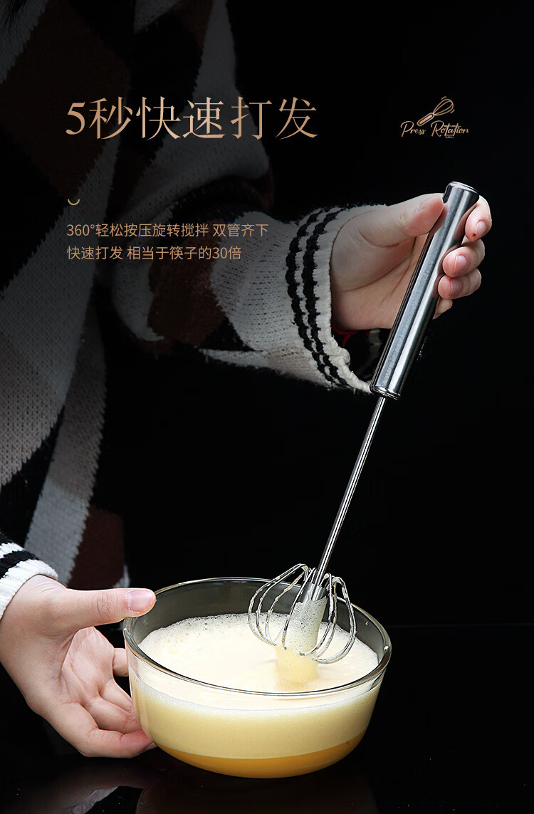 Muxiao semi-automatic egg beater milk frother manual stainless steel stir stick cream 304 order only comes with egg white separator