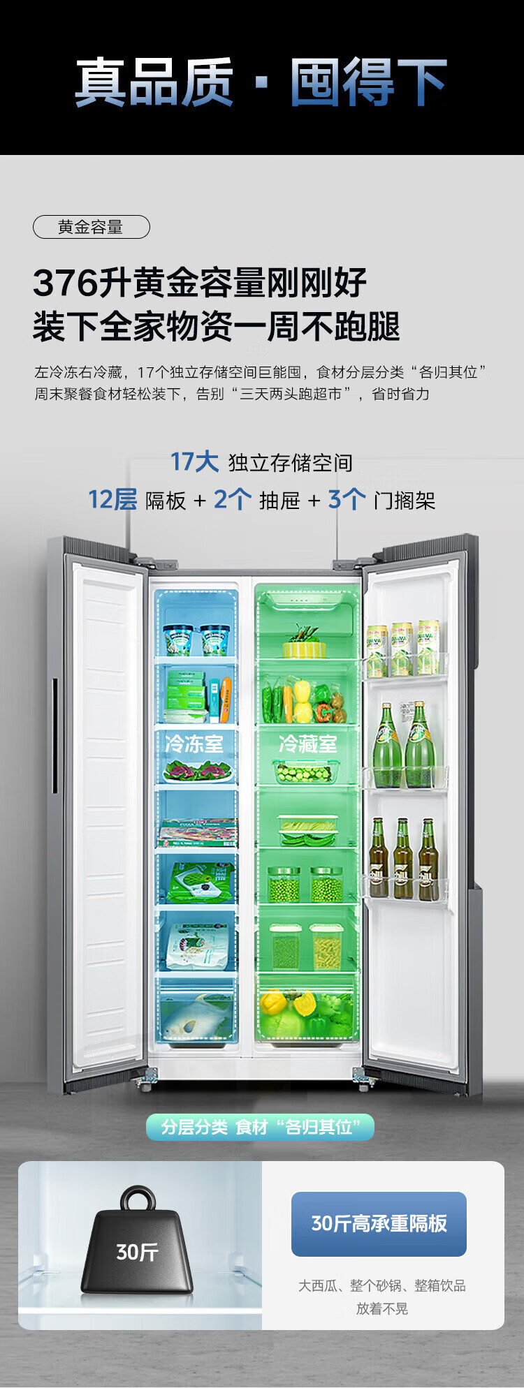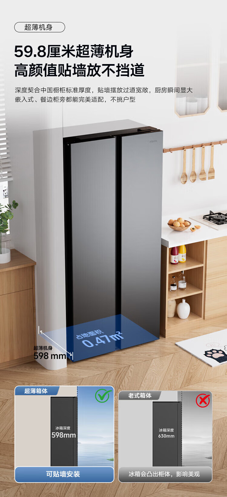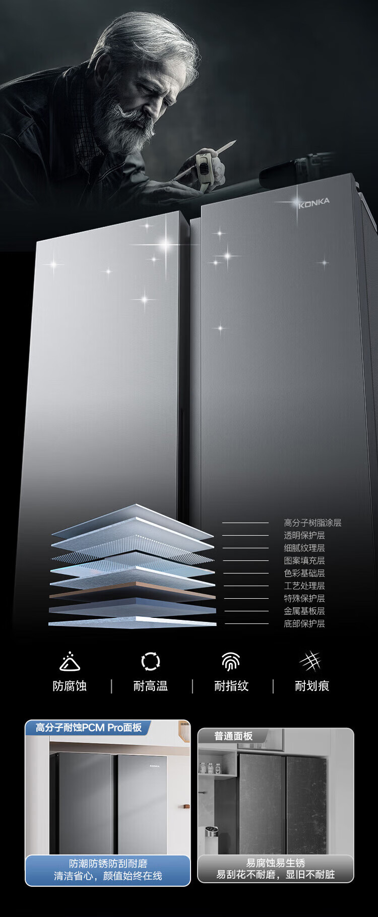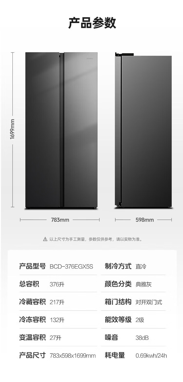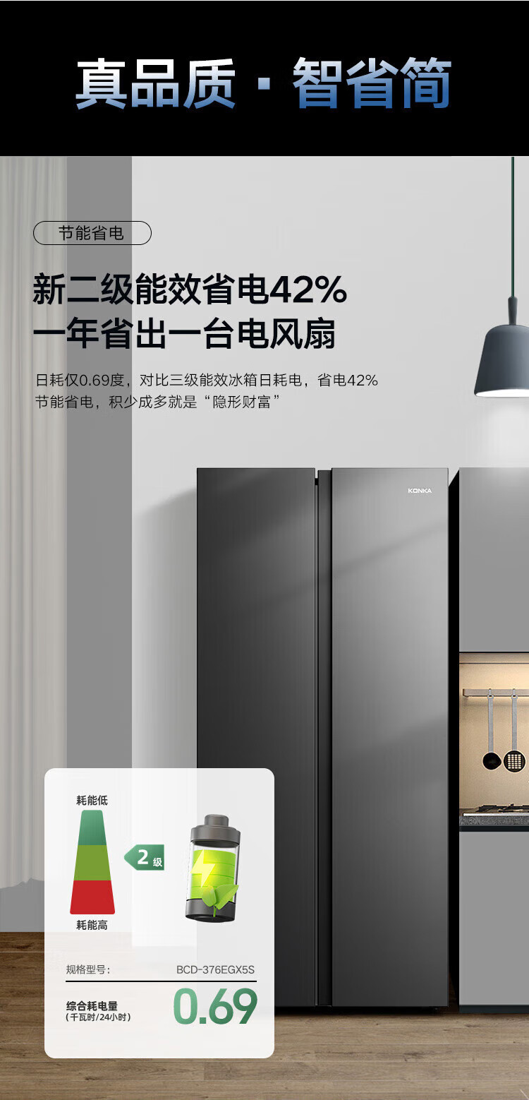 Konka Refrigerator 376L Refrigerator Double Open Door 60cm Ultra-Thin Body Home Rental House Living Room Refrigerator Freezer Refrigerator Embedded Energy Saving Smart Temperature Control 376L Smart Temperature Control