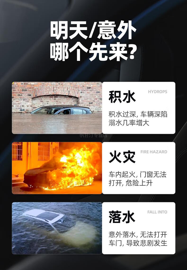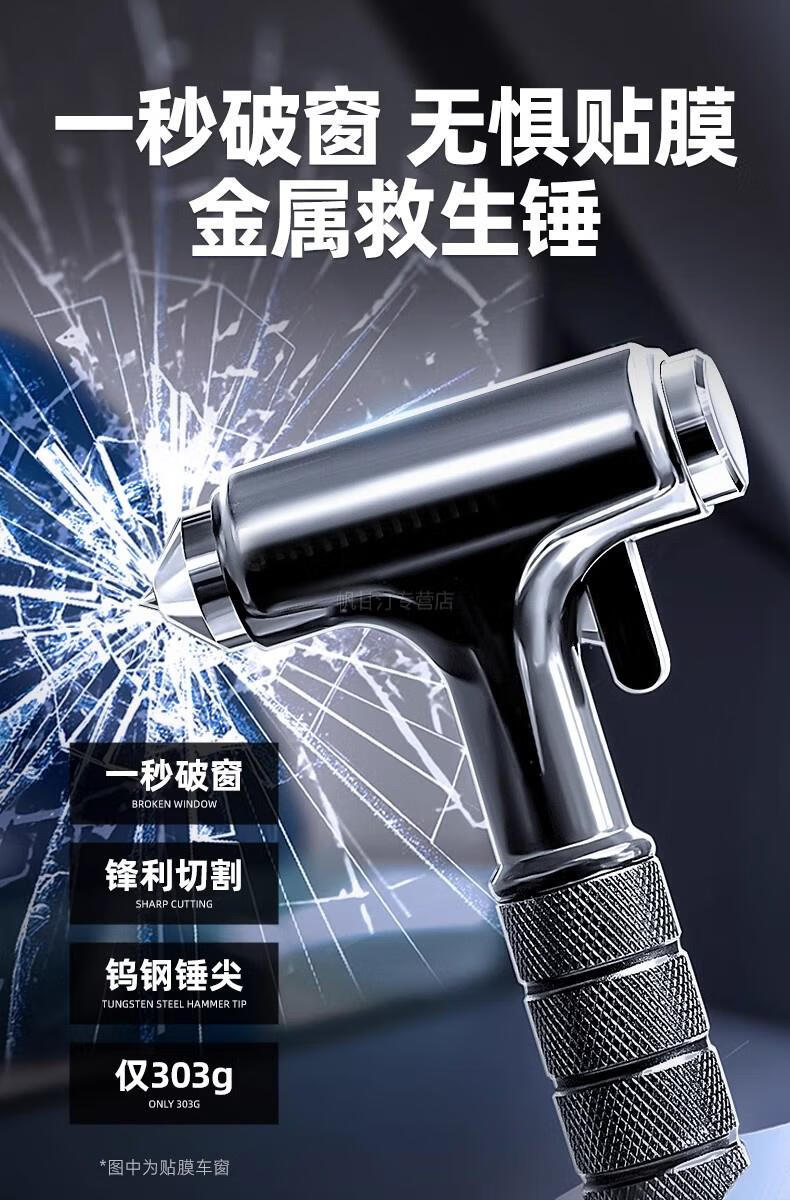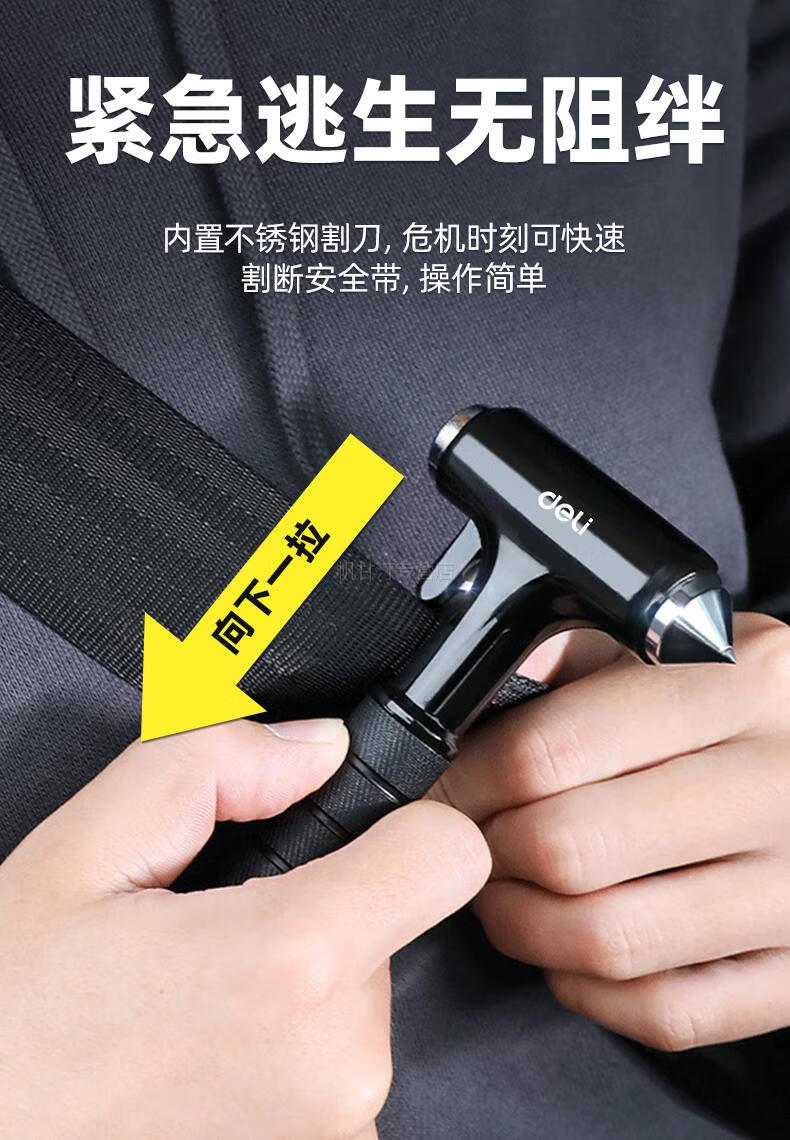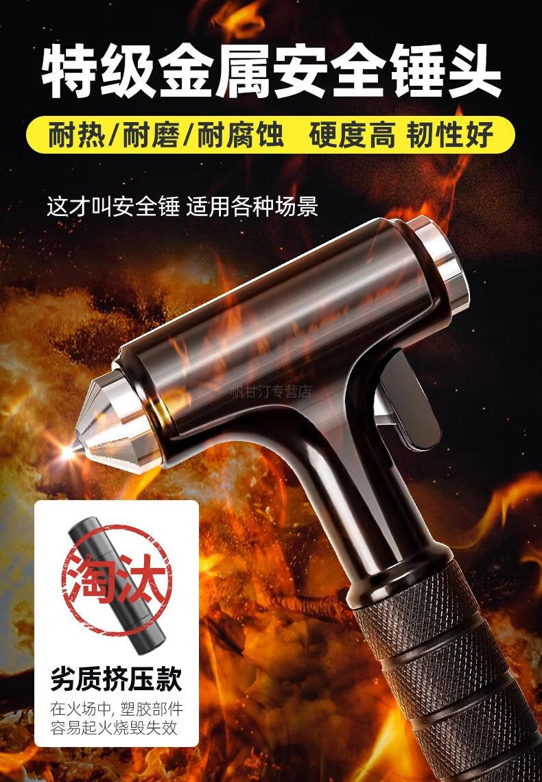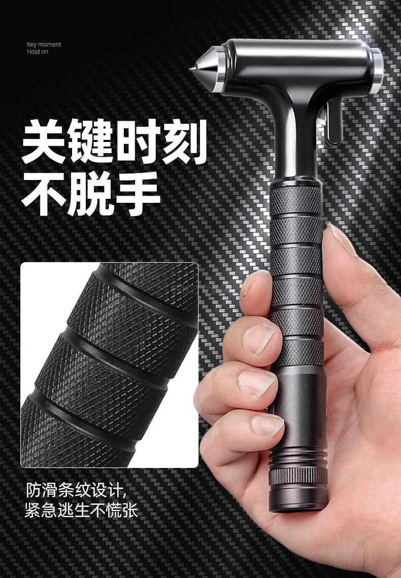 German safety hammer car window-breaking tool with cutter, fire emergency life-saving hammer for escaping from broken glass in the car, special grade tungsten steel, black three-in-one window breaking/flat hammer/cutting knife