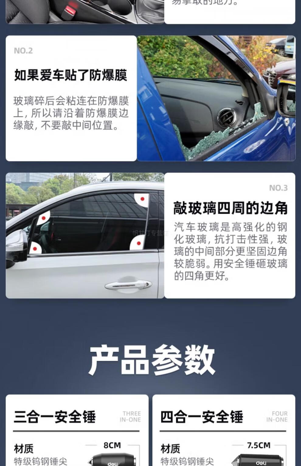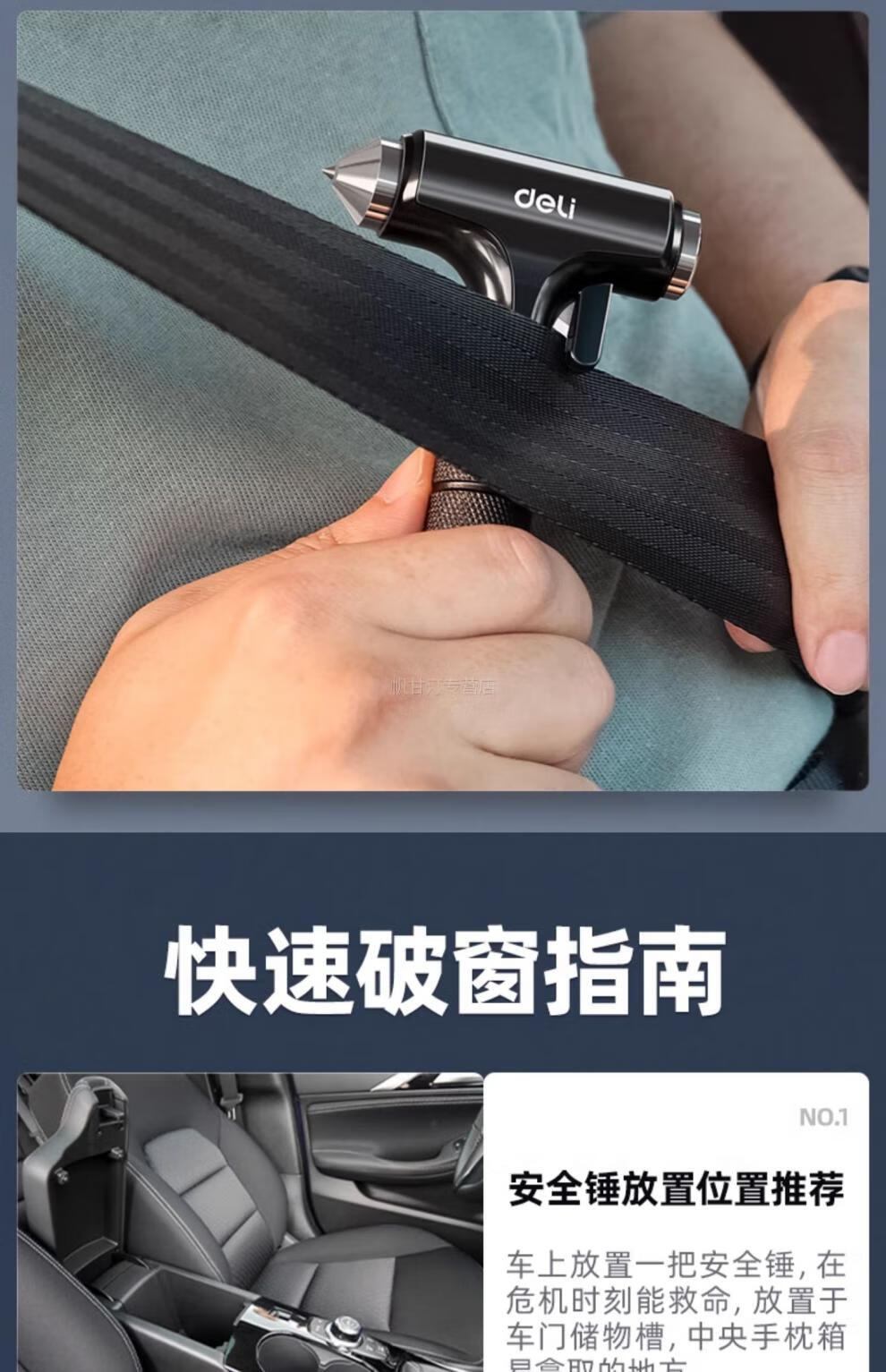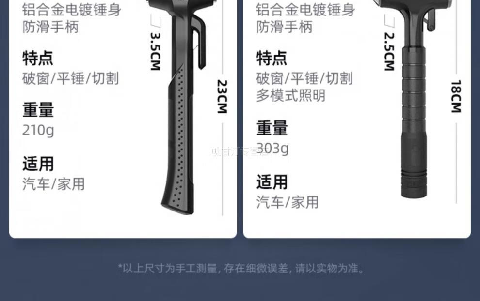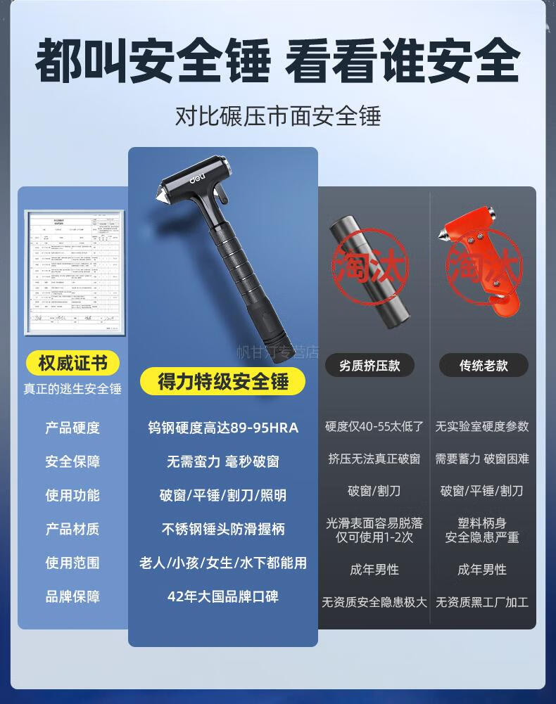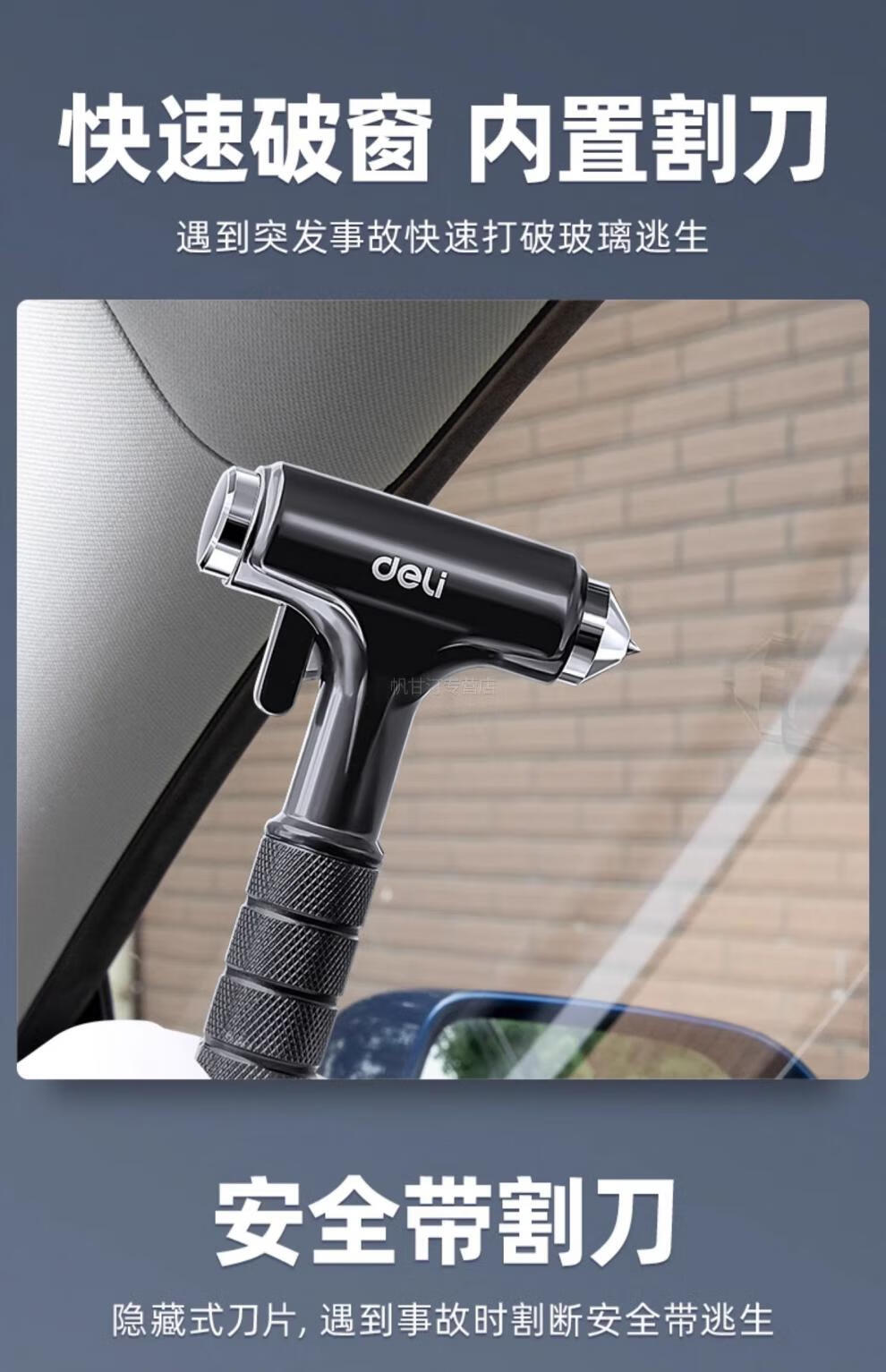 German safety hammer car window-breaking tool with cutter, fire emergency life-saving hammer for escaping from broken glass in the car, special grade tungsten steel, black three-in-one window breaking/flat hammer/cutting knife