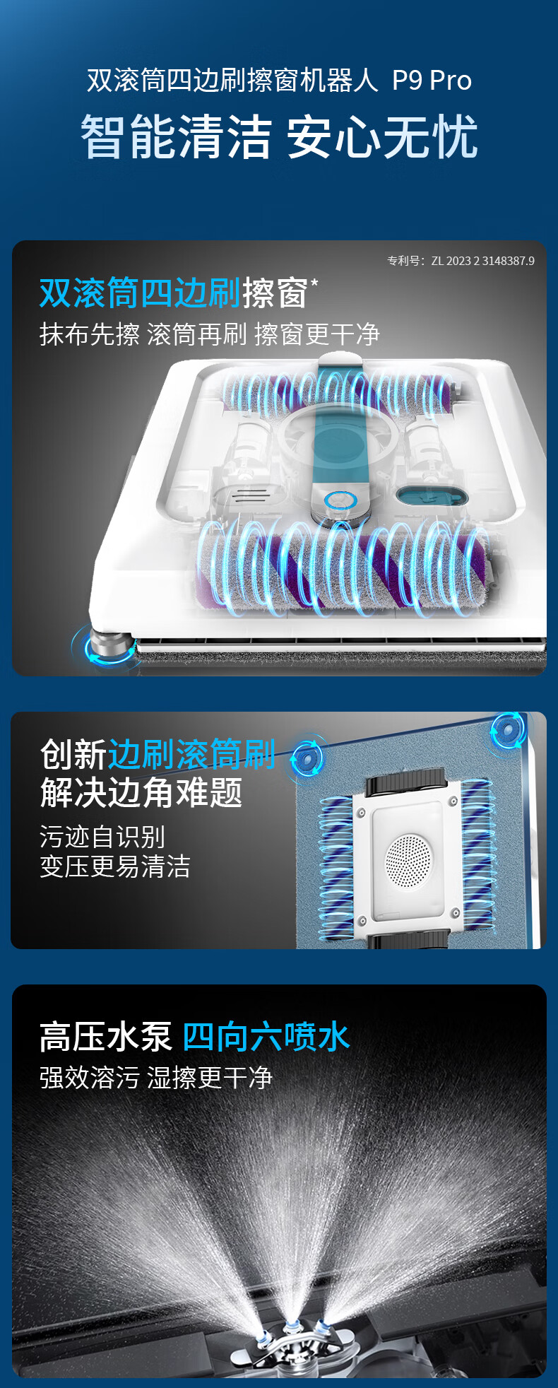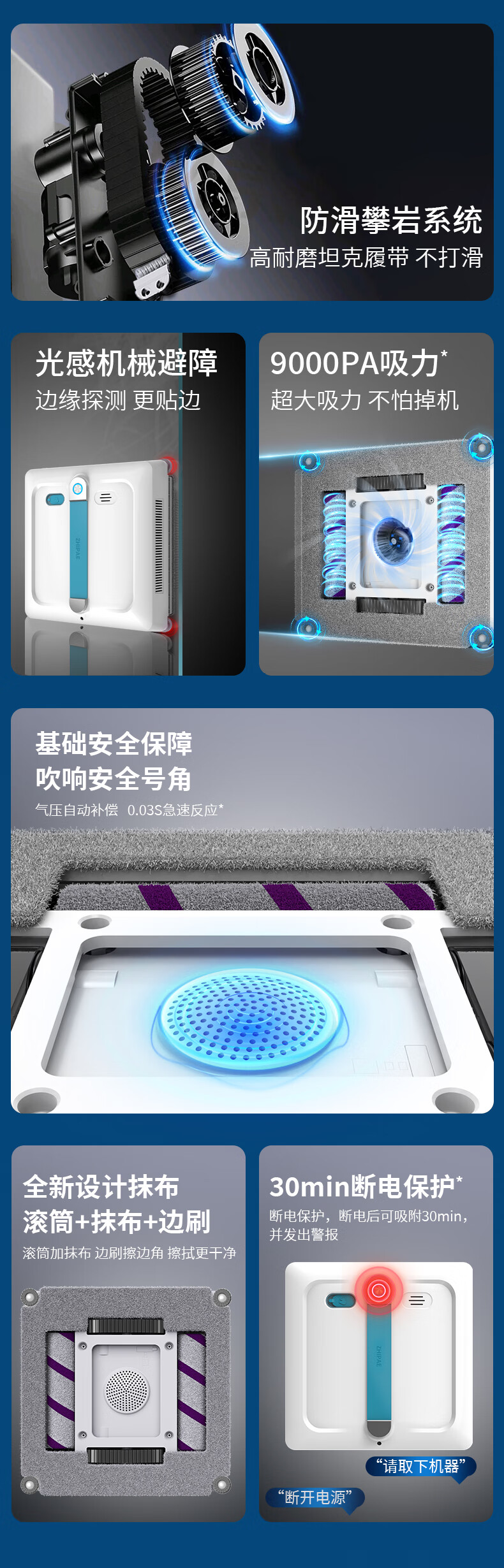 Zhipai state-subsidized double-roller window cleaning robot P9 Pro fully automatic two-way water spray household cleaning high-rise exterior window glass cleaning robot window cleaning artifact upgraded version P9 Pro double roller brush + four-sided brush