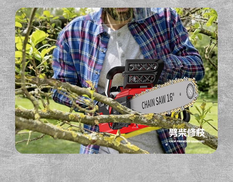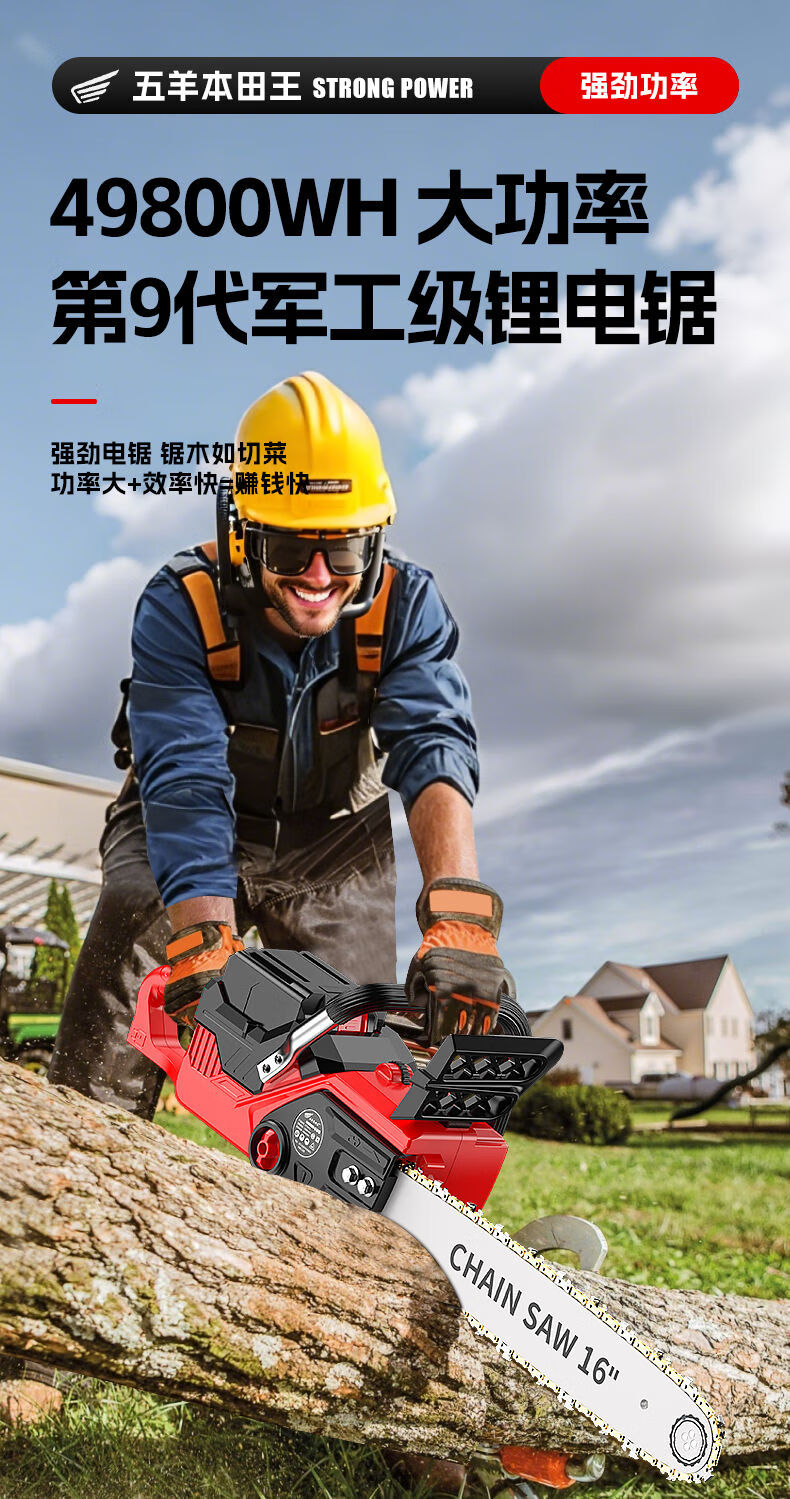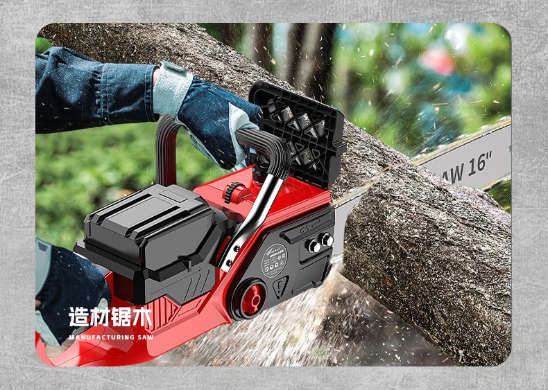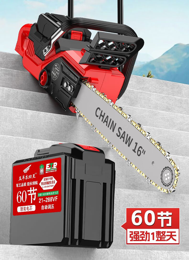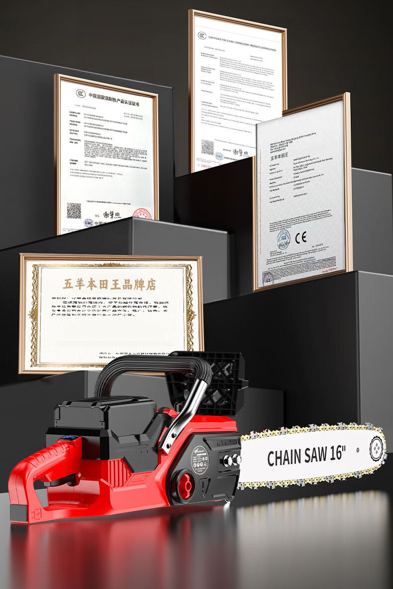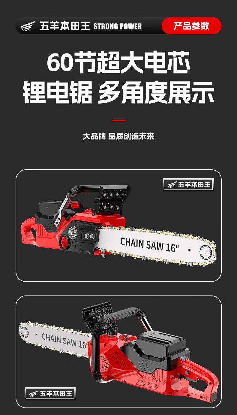 Wuyang Honda King imported from Germany 60-cell lithium chainsaw household logging saw lithium battery electric chain saw garden hand-held cutting machine electric new electric display 16-inch 60-cell battery 2 pieces 2 chains