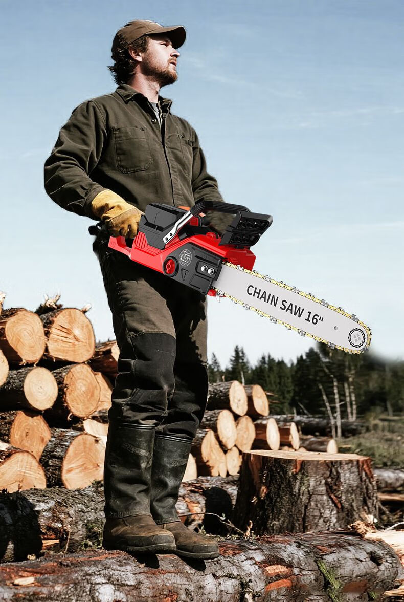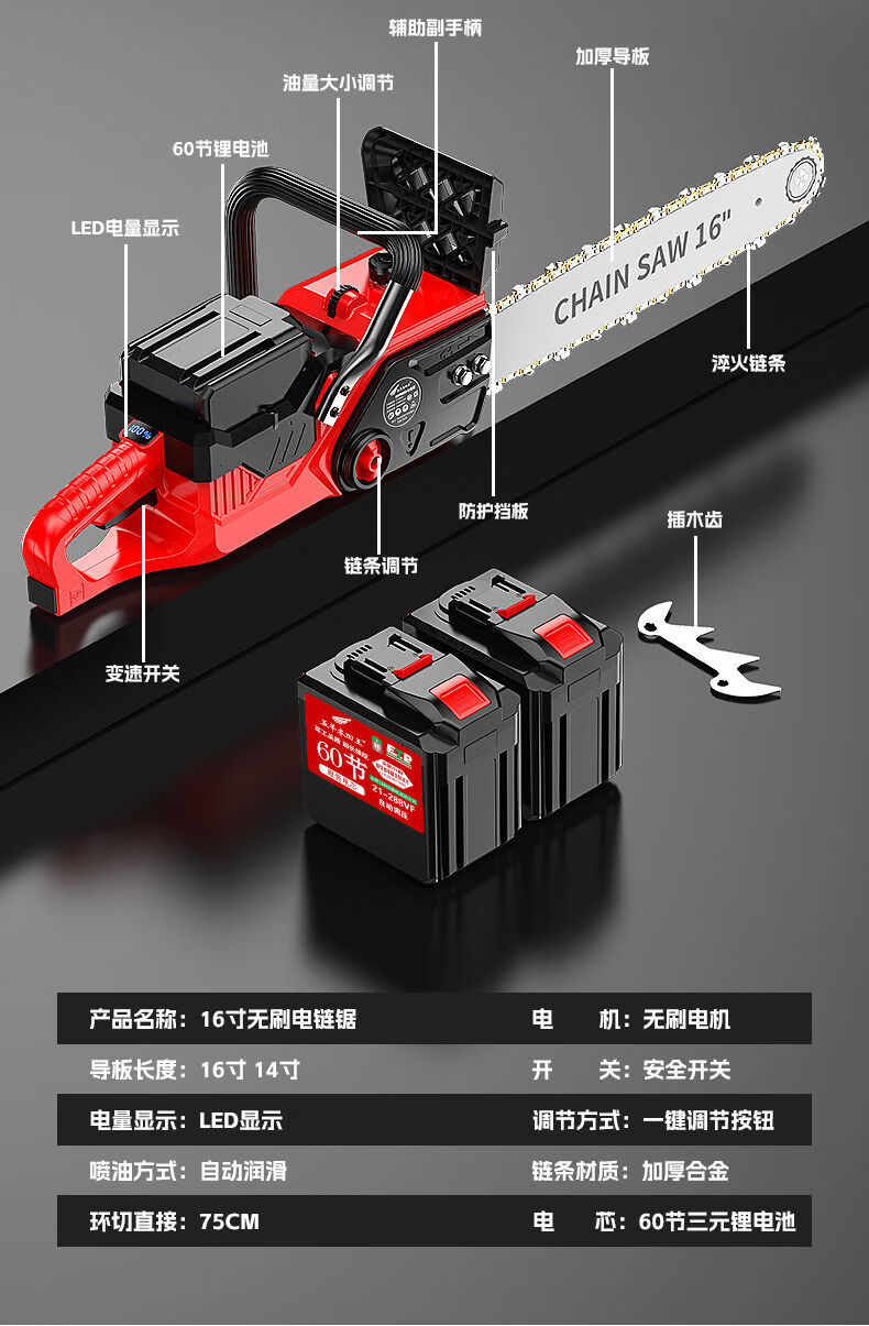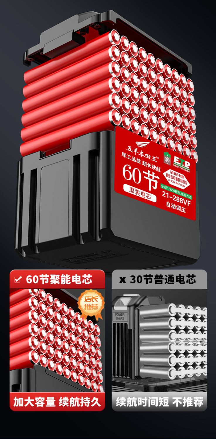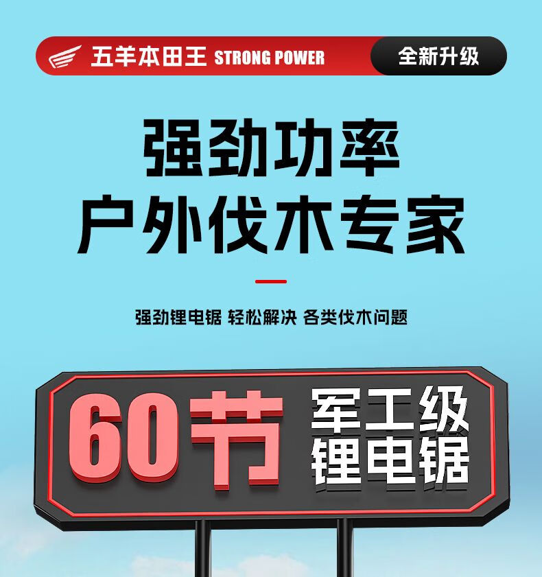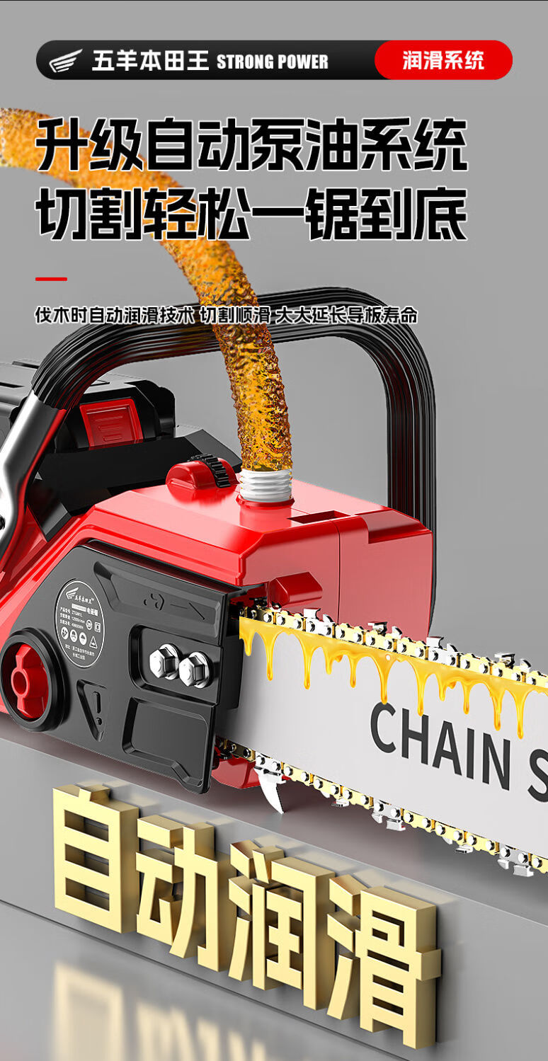 Wuyang Honda King imported from Germany 60-cell lithium chainsaw household logging saw lithium battery electric chain saw garden hand-held cutting machine electric new electric display 16-inch 60-cell battery 2 pieces 2 chains