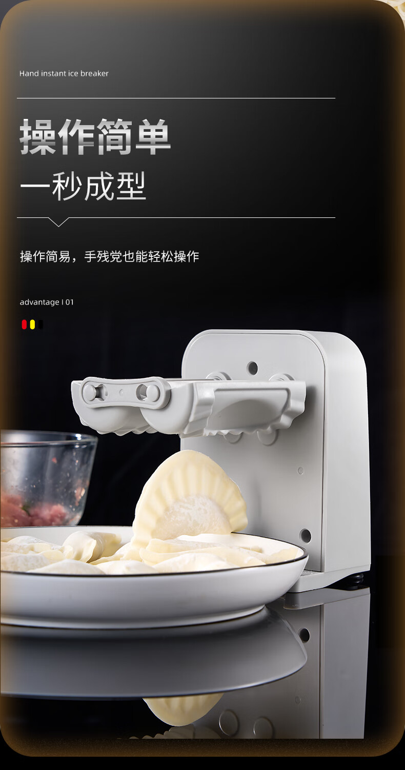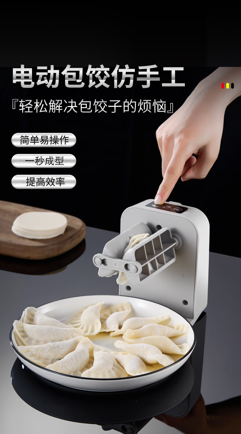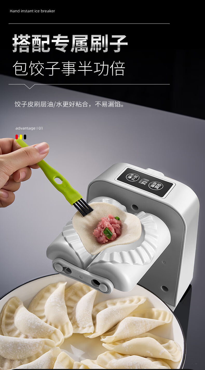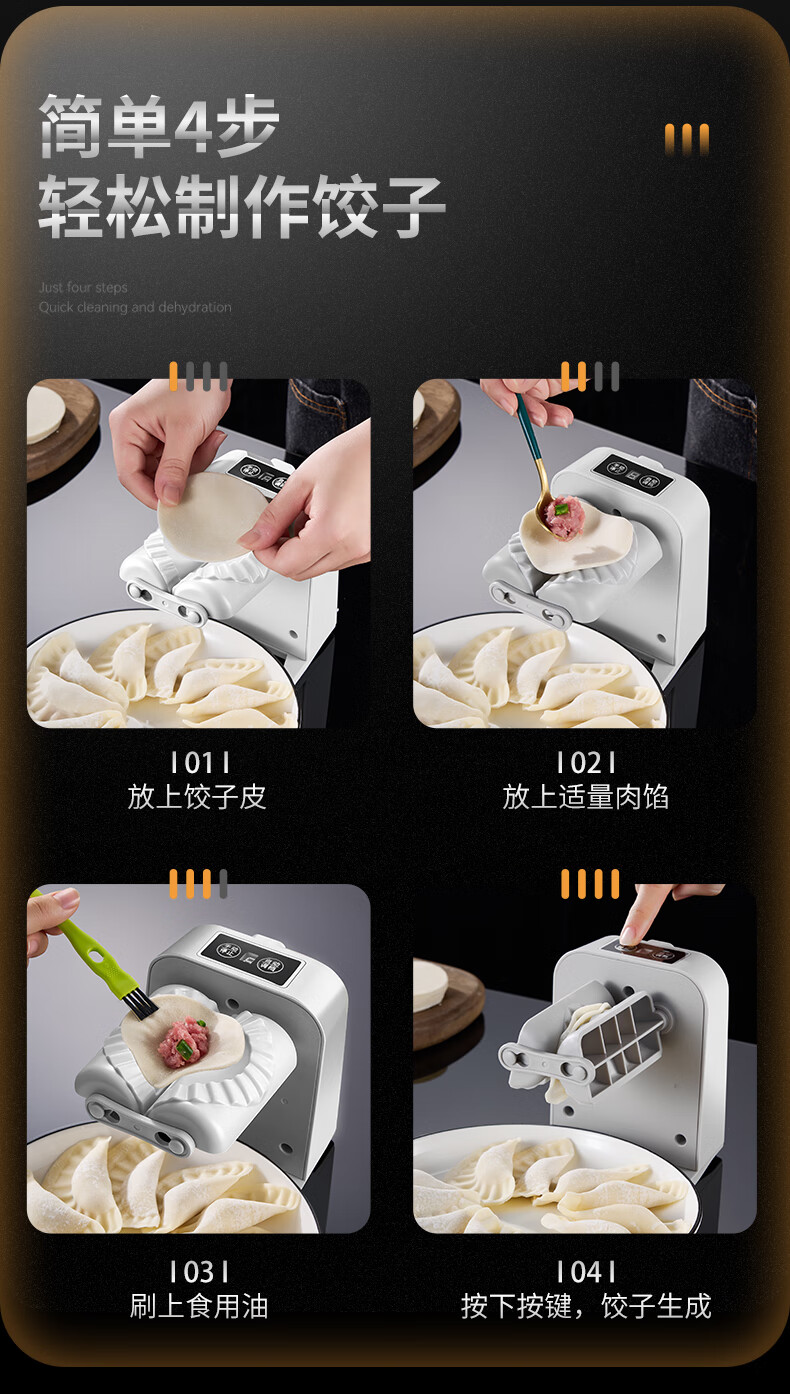 Kuiying fully automatic household dumpling machine is a small and efficient dumpling making tool. It is an electric dumpling making tool. It can make about 1500 dumplings when fully charged.