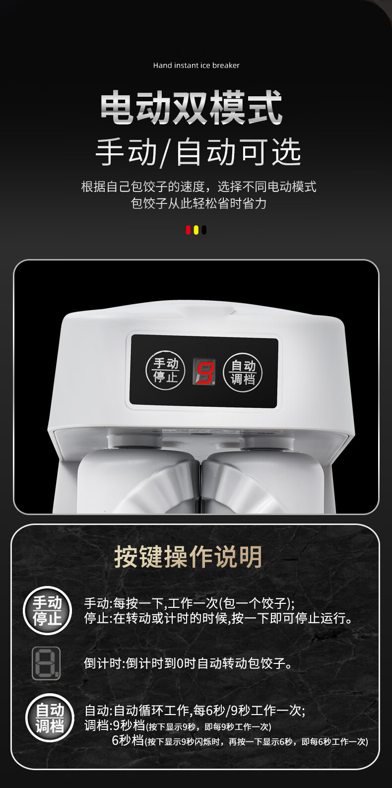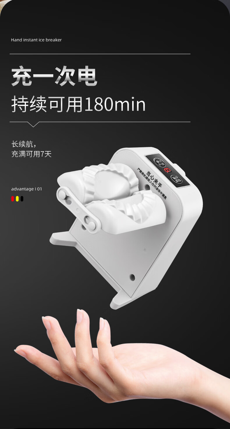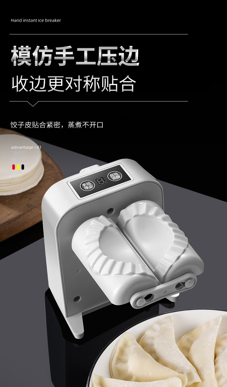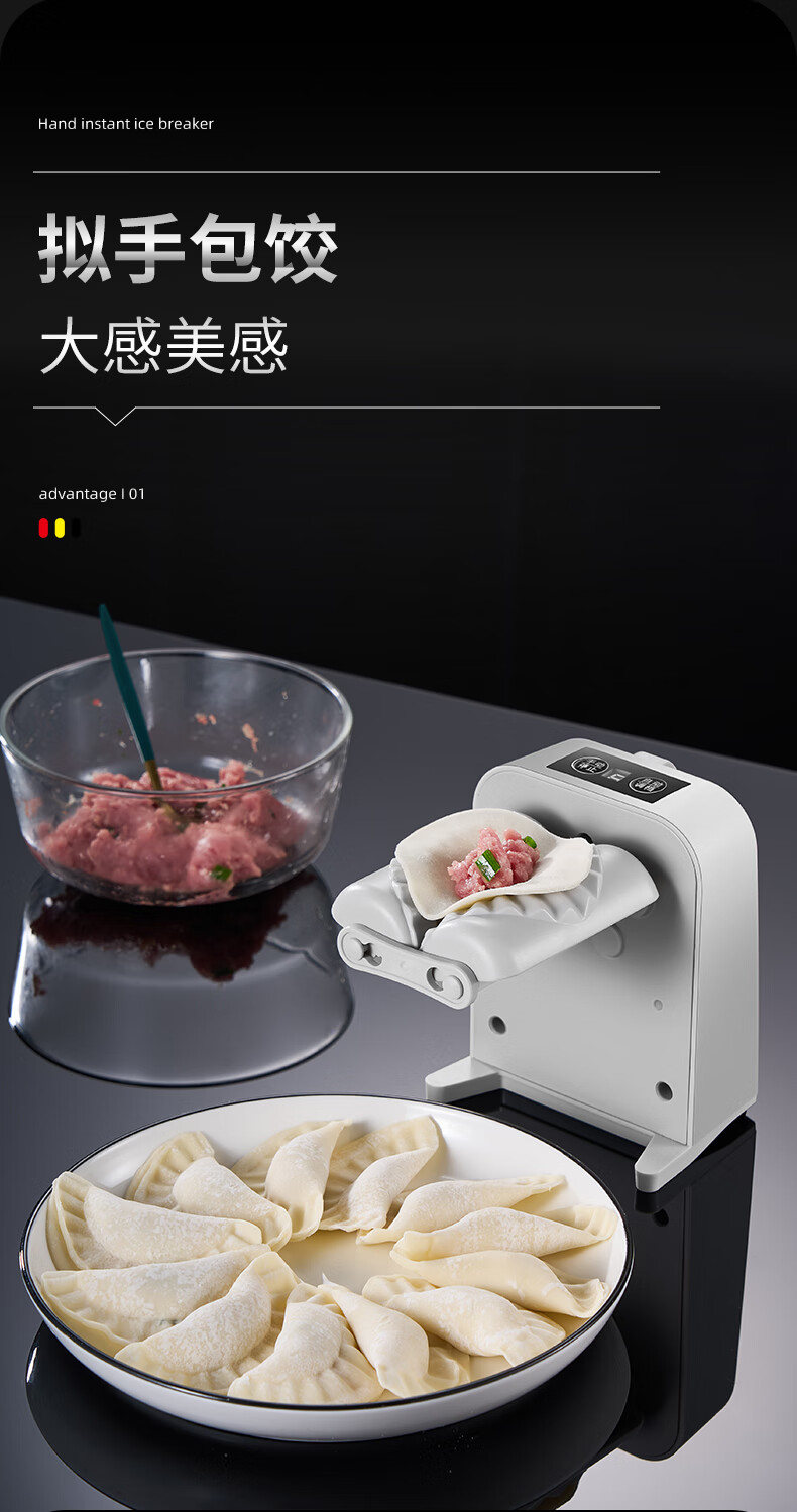 Kuiying fully automatic household dumpling machine is a small and efficient dumpling making tool. It is an electric dumpling making tool. It can make about 1500 dumplings when fully charged.