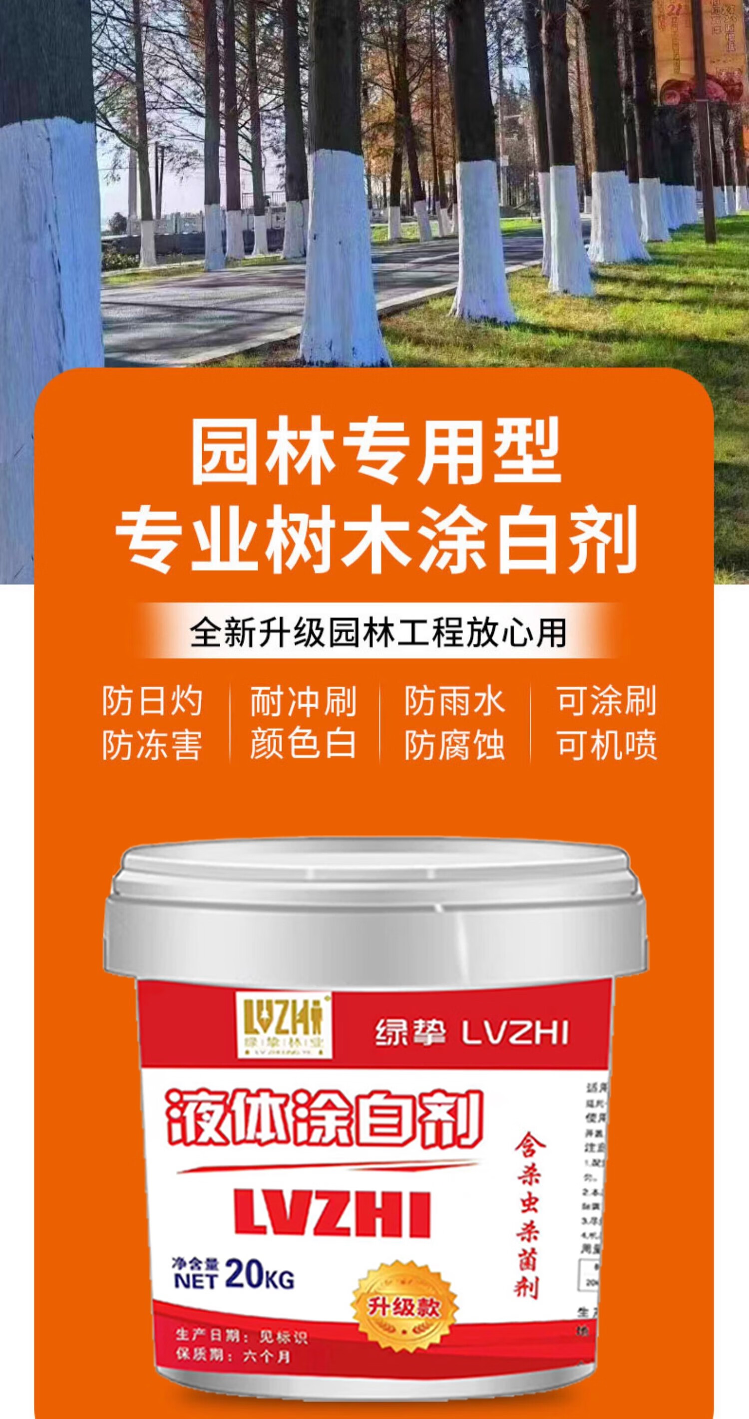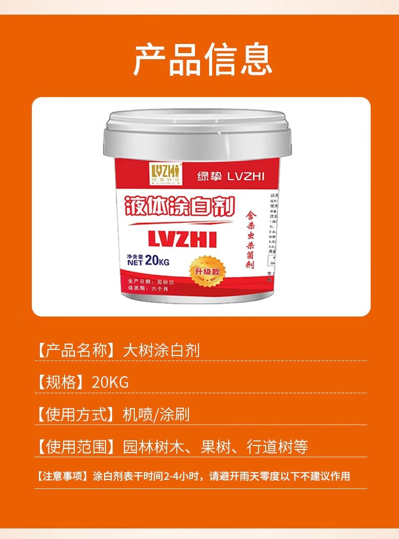 Whitening agent for large trees to prevent freezing and insecticide, sterilization and disinfection for large trees in landscaping. Special whitening powder for large trees to prevent freezing and insecticide. Luzhi Super White Liquid 20kg/1 ton (50/barrel)