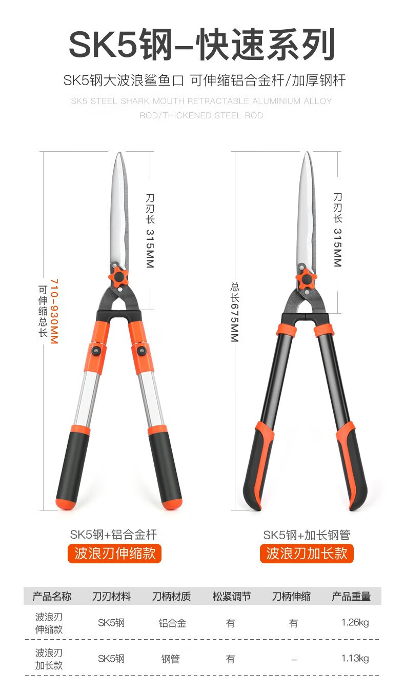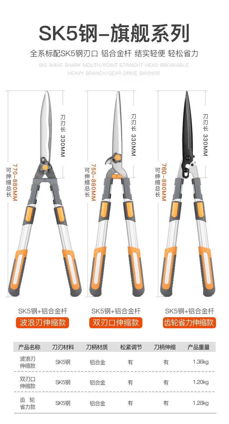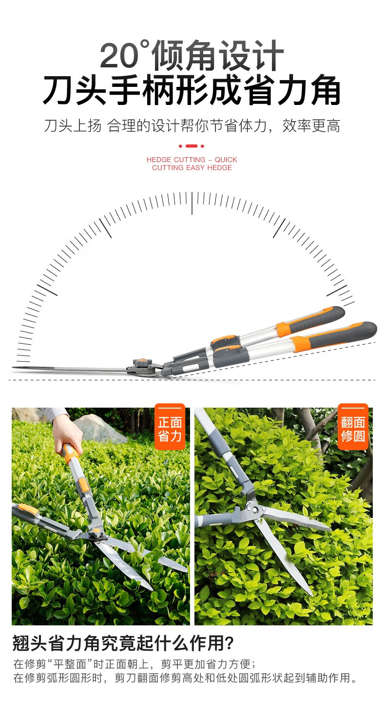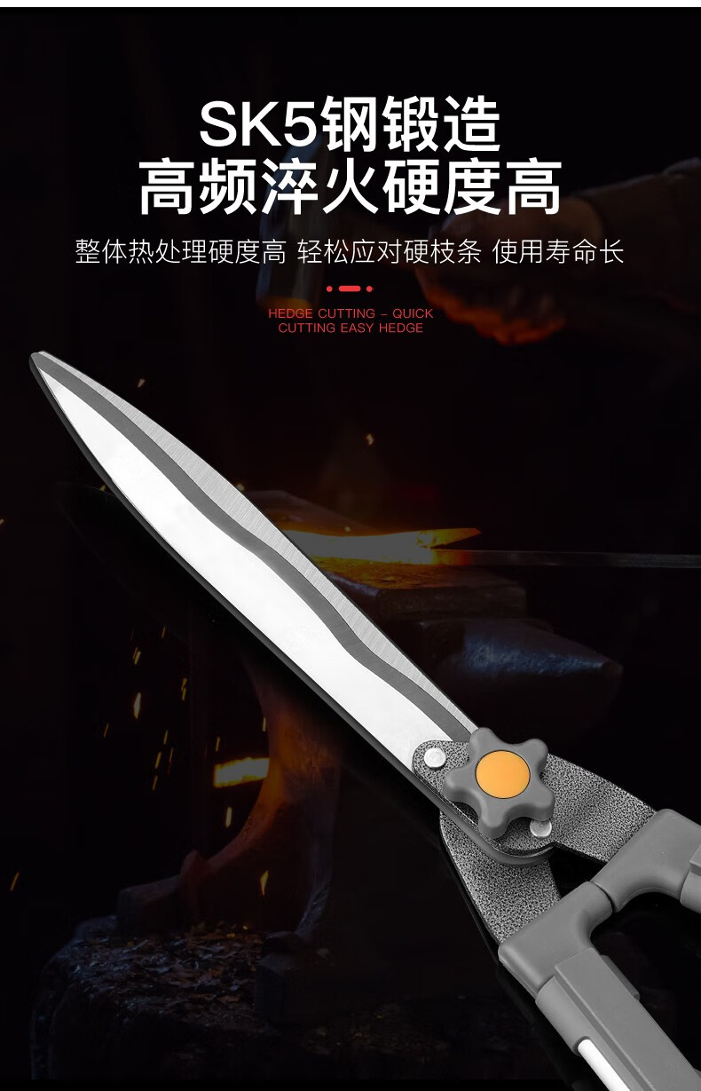Gardening scissors, garden flower shears, pruning shears, special hedge shears for lawn trimming, powerful trimming of branches ZP9, orange flat tube