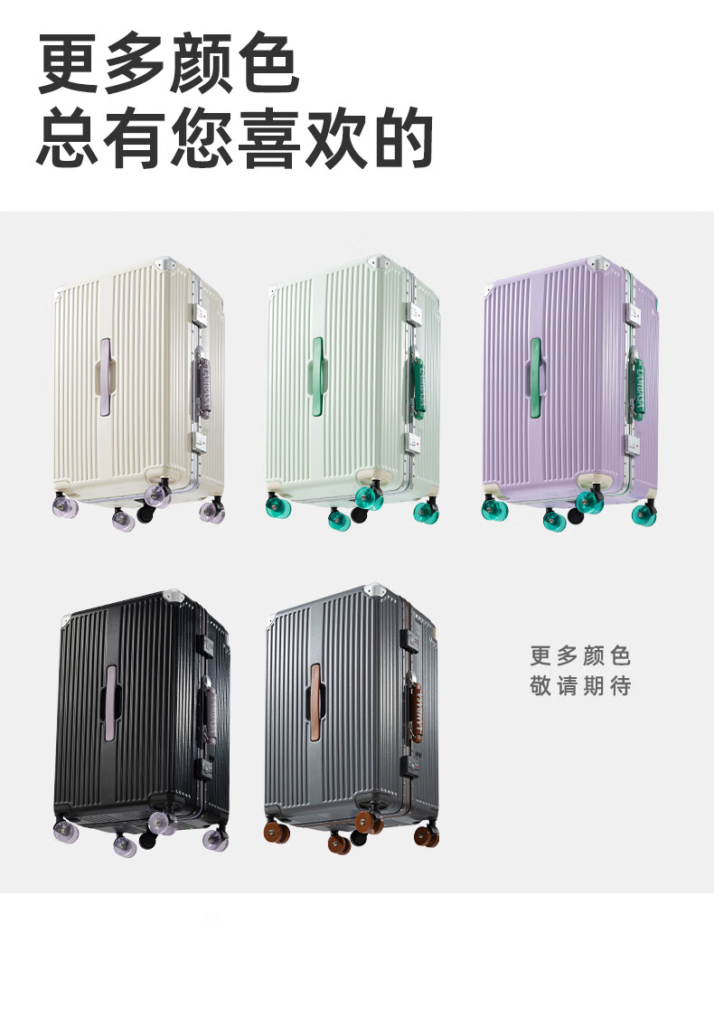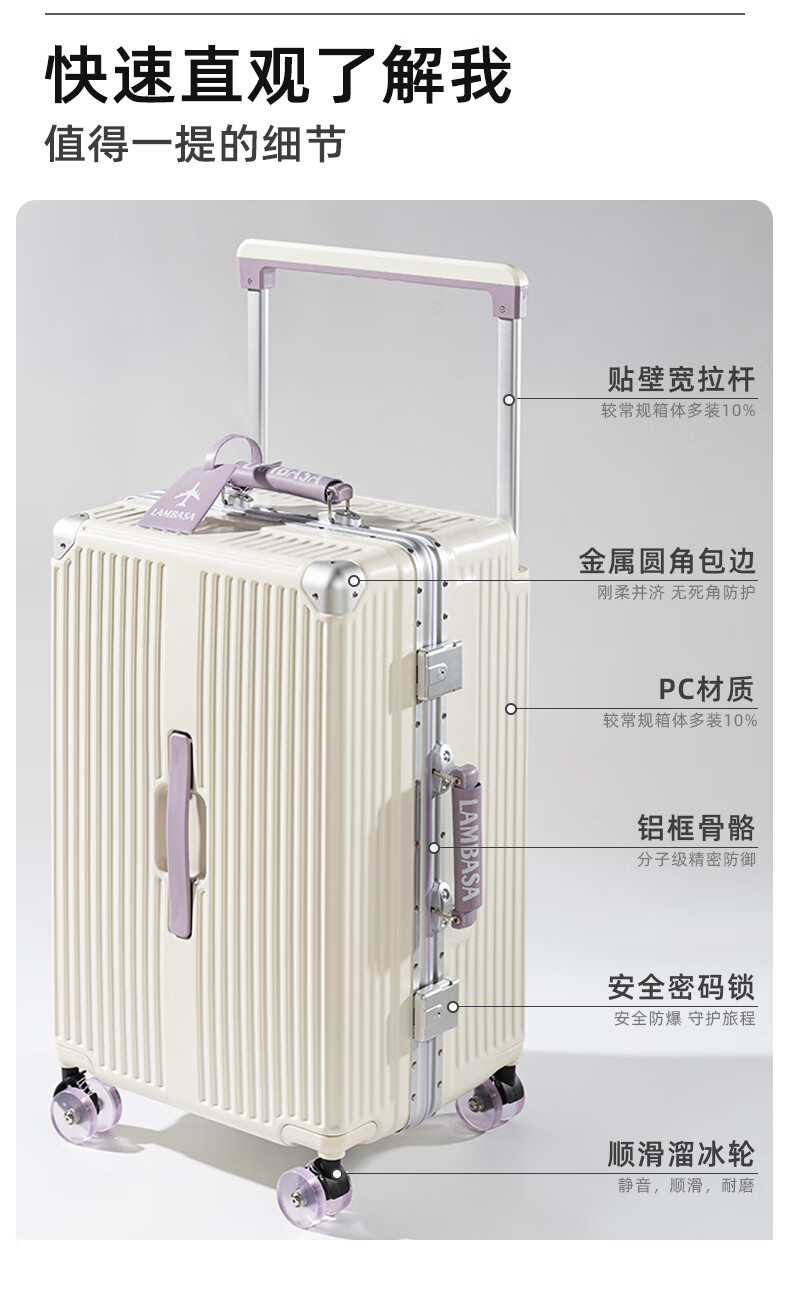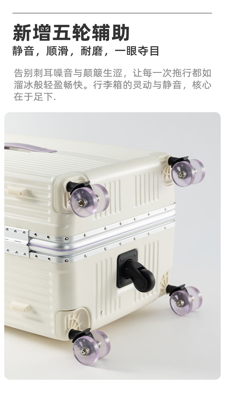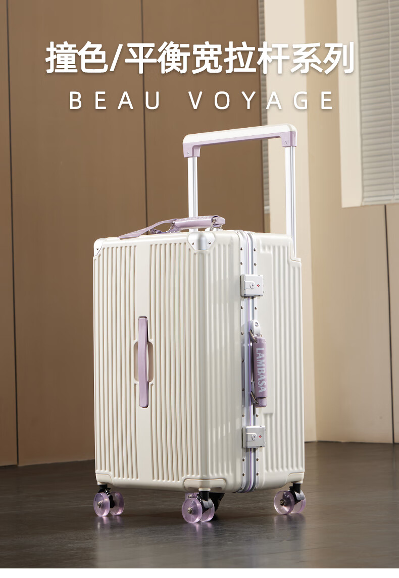 Yixuan wide trolley suitcase for women, good-looking, aluminum frame, large capacity, 24-inch deep storage password box, men's thickened contrasting suitcase, white & purple, leather handle + balanced wide trolley + PU skate wheels, 20-inch boarding suitcase, four wheels - single short distance/business trip - closed lining