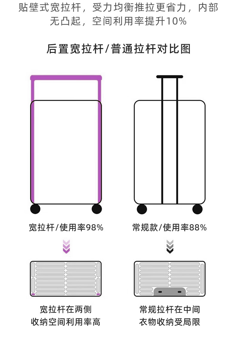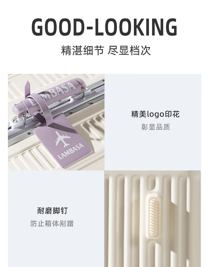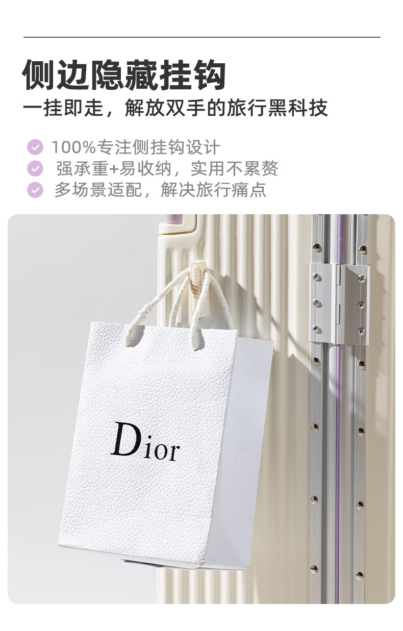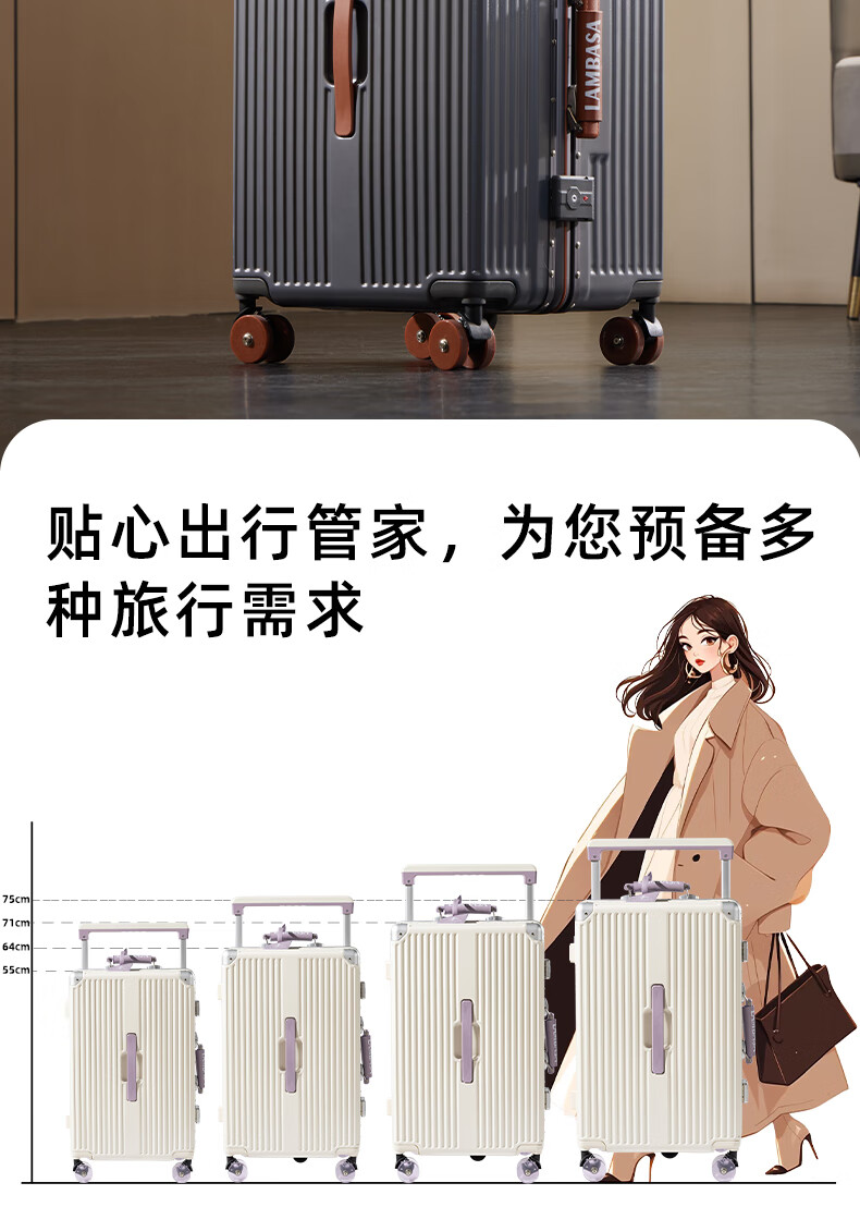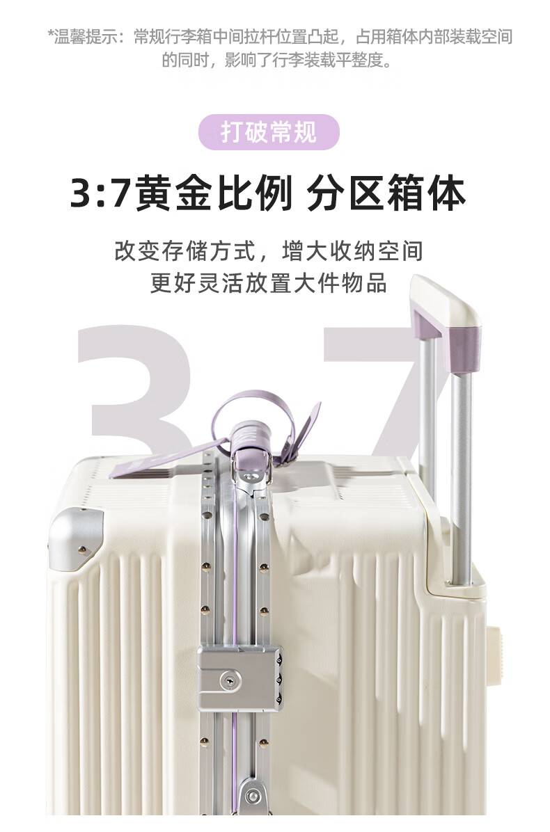 Yixuan wide trolley suitcase for women, good-looking, aluminum frame, large capacity, 24-inch deep storage password box, men's thickened contrasting suitcase, white & purple, leather handle + balanced wide trolley + PU skate wheels, 20-inch boarding suitcase, four wheels - single short distance/business trip - closed lining