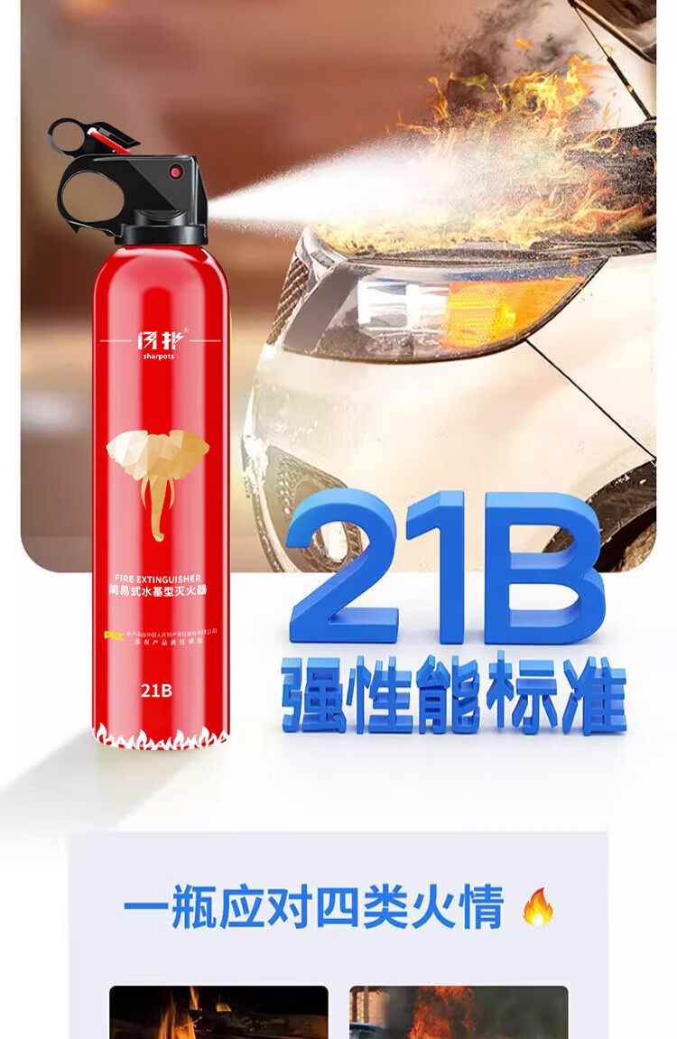 Flash Car Fire Extinguisher 2025 New High Temperature Resistant Explosion Proof Small Portable Private Car Water Based Annual Inspection Fire Fighting Equipment 620ml Water Based Water Based 21B One Bottle + Car Fixing Belt*1 High Temperature Explosion Proof Double