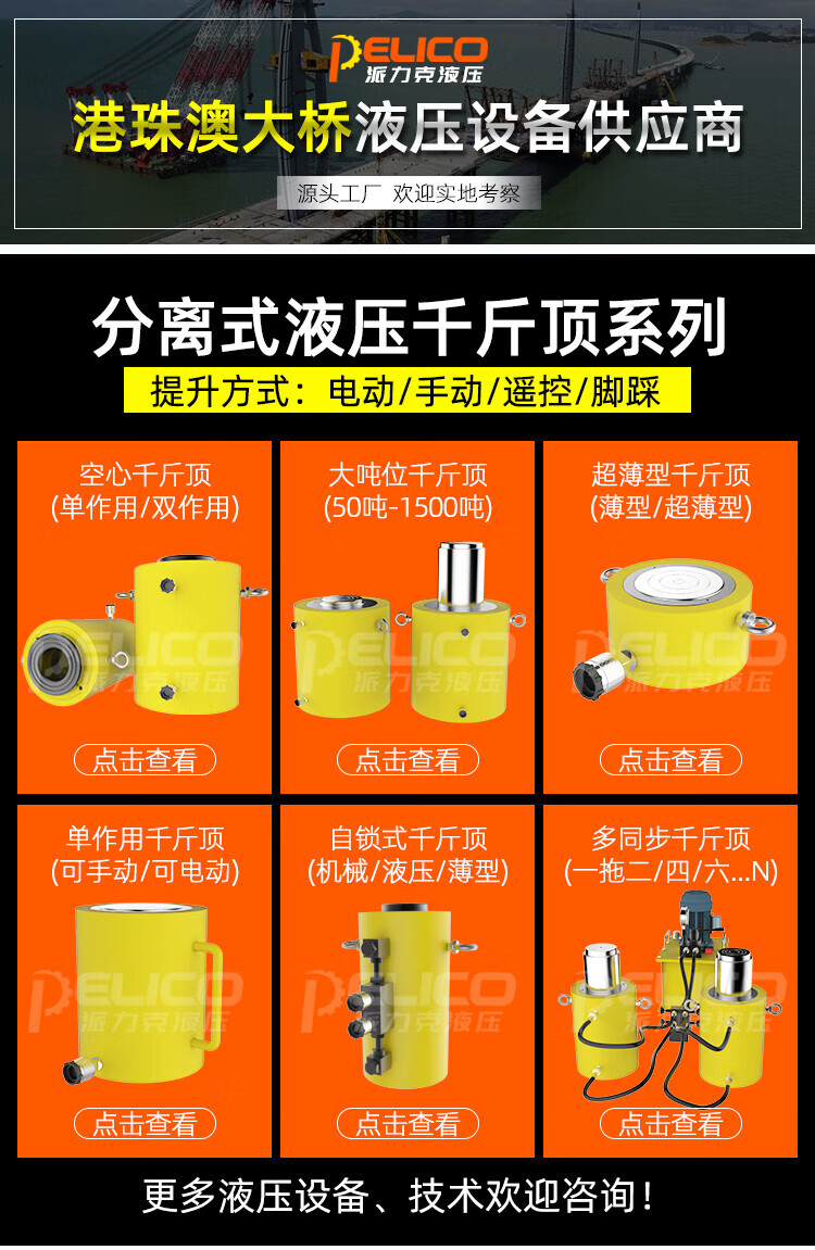 Other hydraulic jack electric two-way lifting cylinder synchronous DYG100T150T200T400T500T1000 tons complete set 200 tons stroke 200mm+3kw electric pump 380V+2 2m oil pipes
