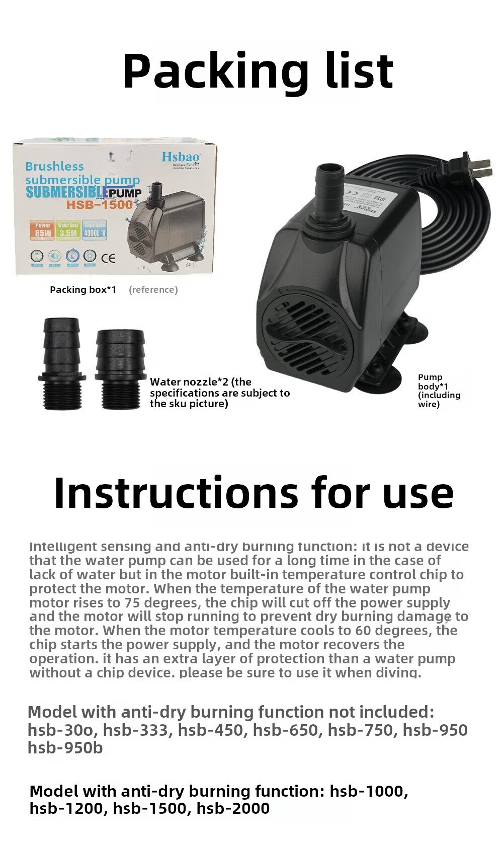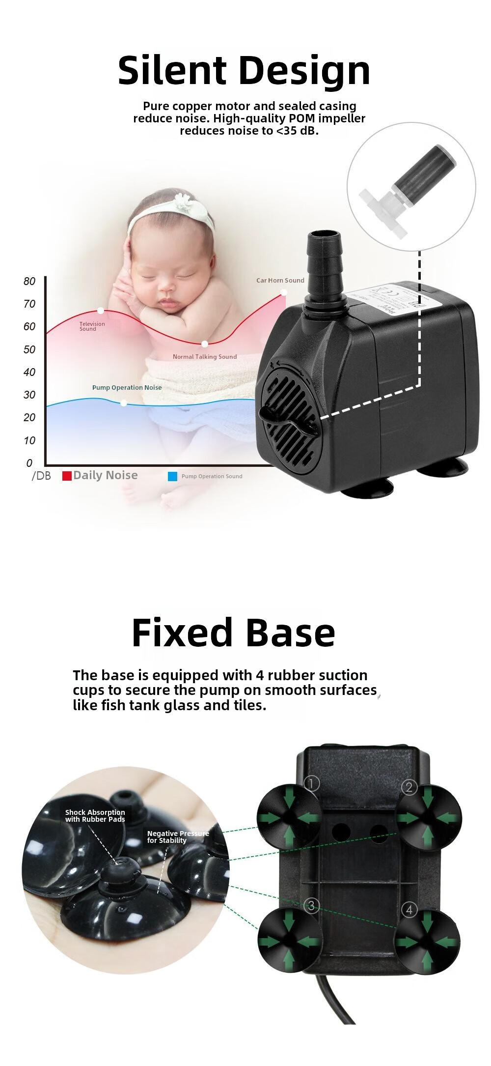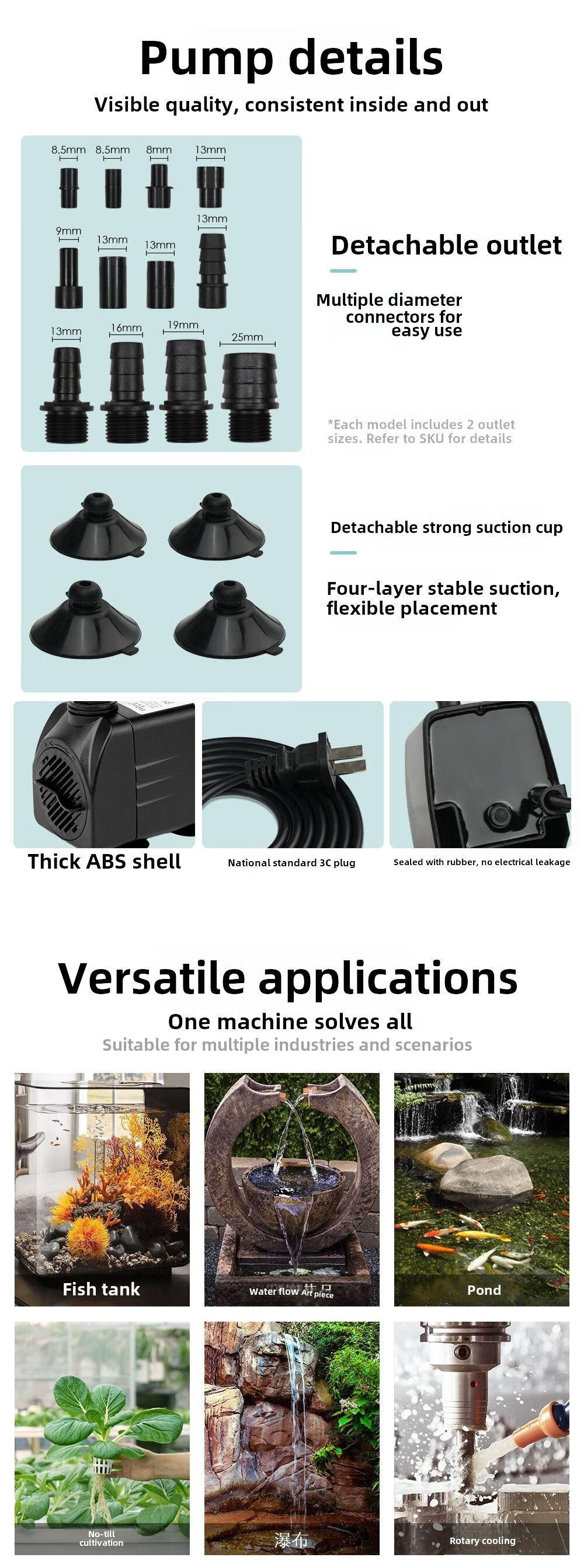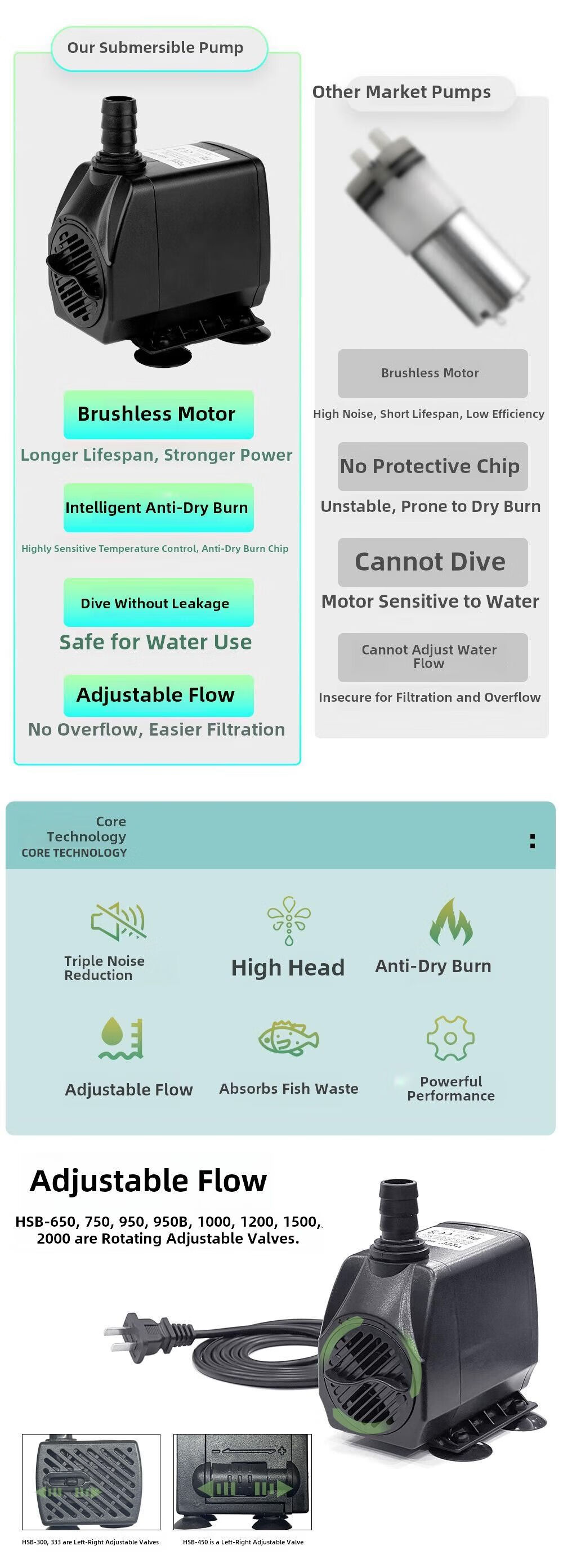 Huishangbao fish tank water pump submersible pump pond fountain pump filter small water pump aquarium oxygenation pump HSB-450/7W/400 flow Chinese standard