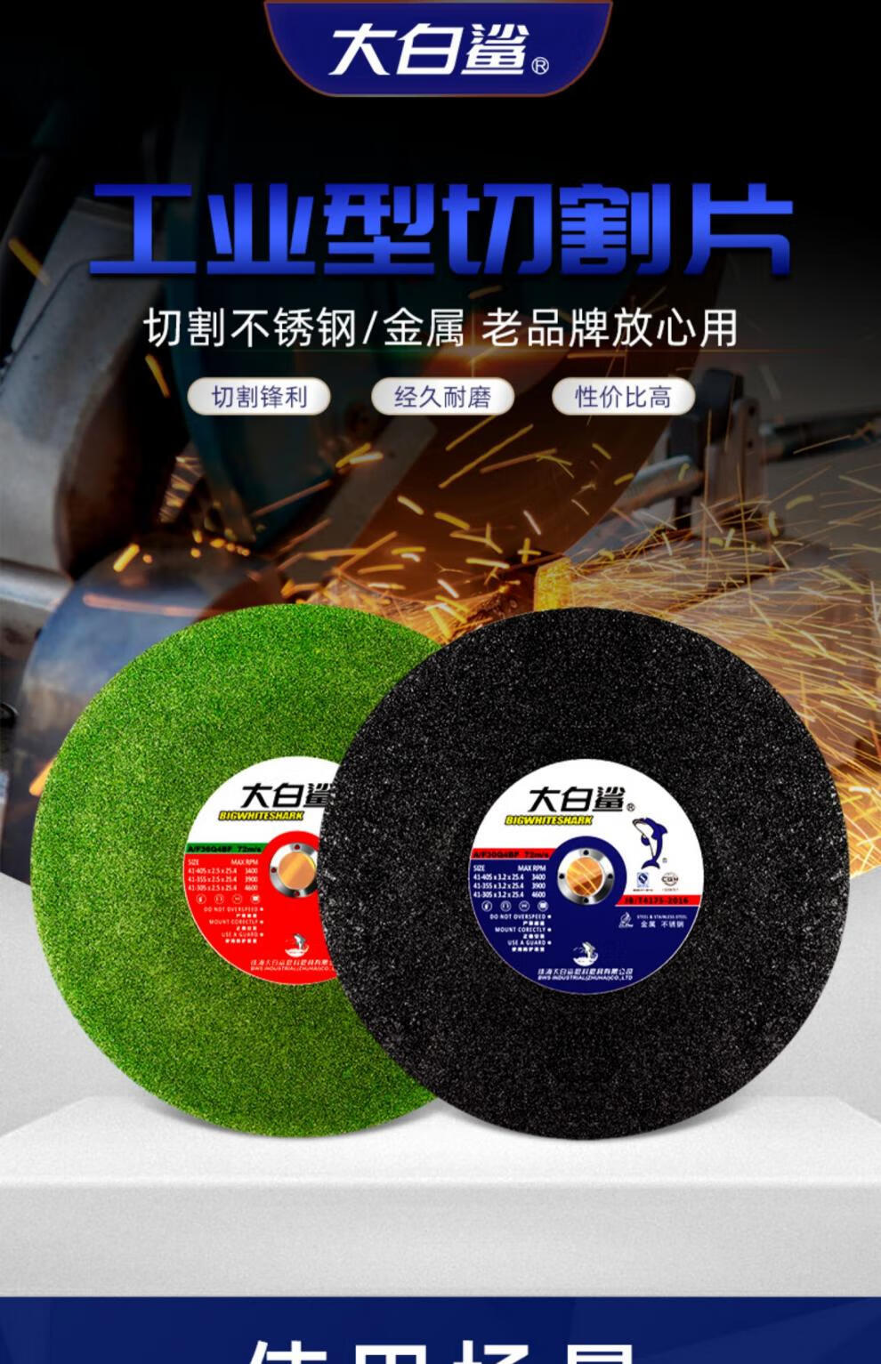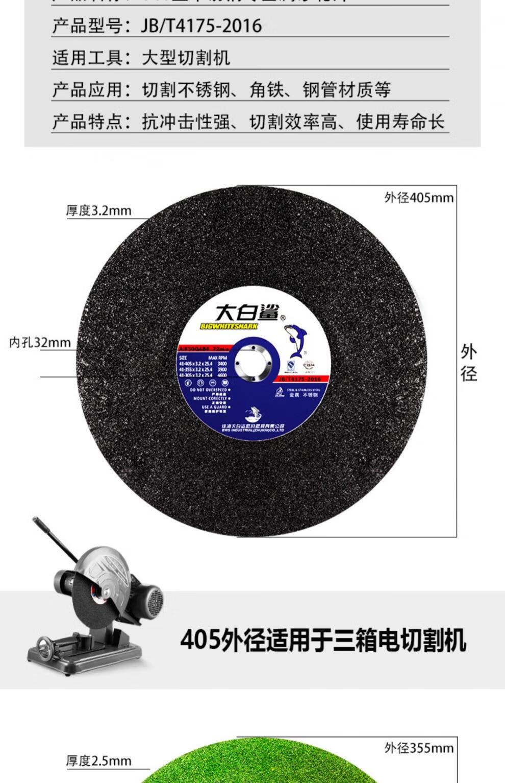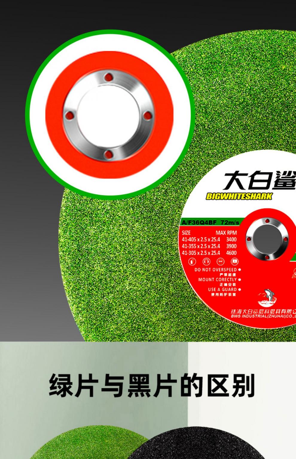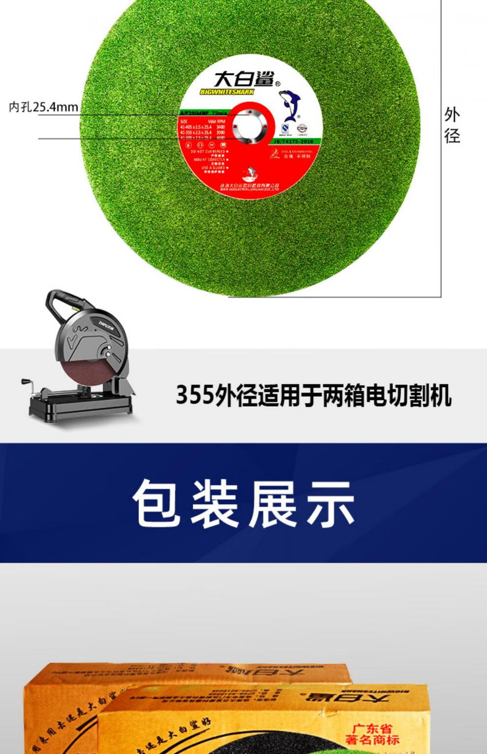 Great White Shark cutting blade 350 large cutting machine grinding wheel 400mm cutting stainless steel metal saw blade large grinding wheel blade 400x3x32mm green (25 pieces)