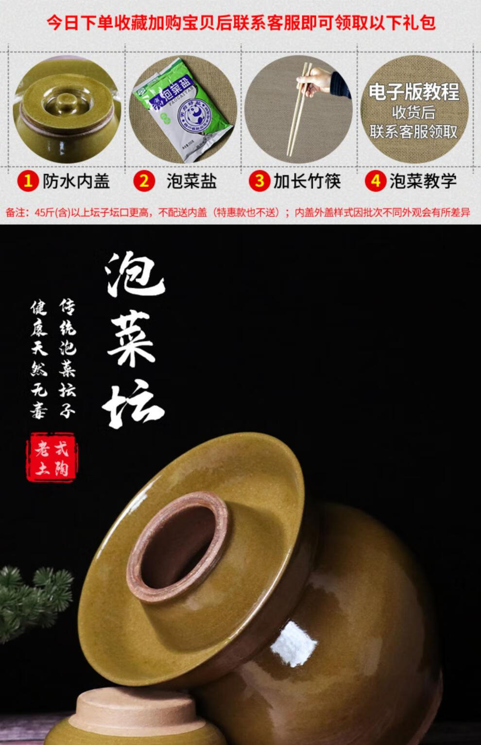 Iosn pickle jar Sichuan ceramic earthenware small household old-fashioned sauerkraut large pickle jar pickle jar thickened 55 catties jar mouth heightened without inner cover gift package delivery logistics