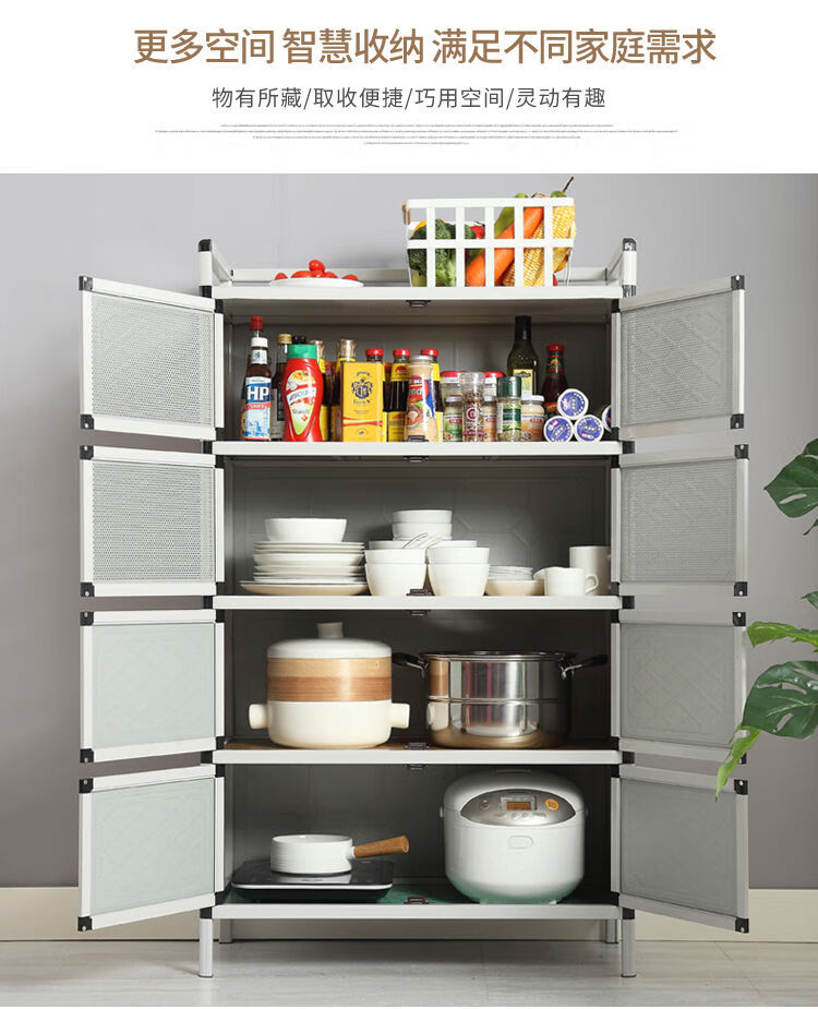 Jiang Zhiai bowl cabinet home kitchen stainless steel bowl integrated cabinet simple stove rental multi-functional storage storage gold 79 long three layers six doors double door