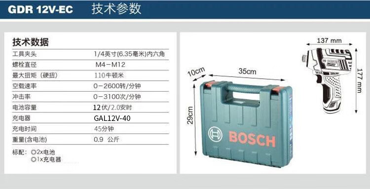 Bosch GDR12V-EC rechargeable screwdriver GDR120-LI household brushless electric screwdriver GSR12V-35 GDR12V-EC brushless 2.0AH single electric version