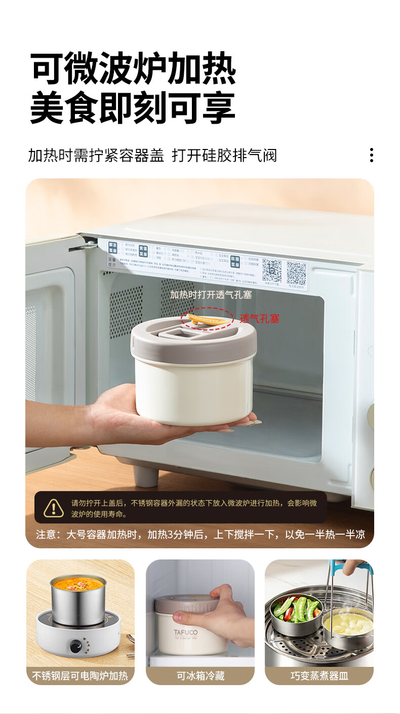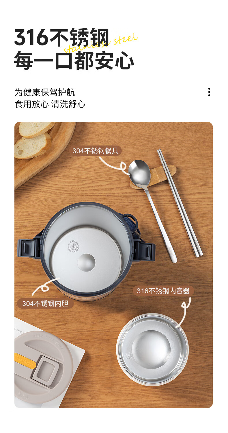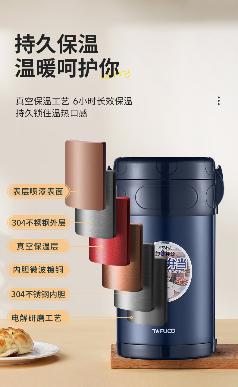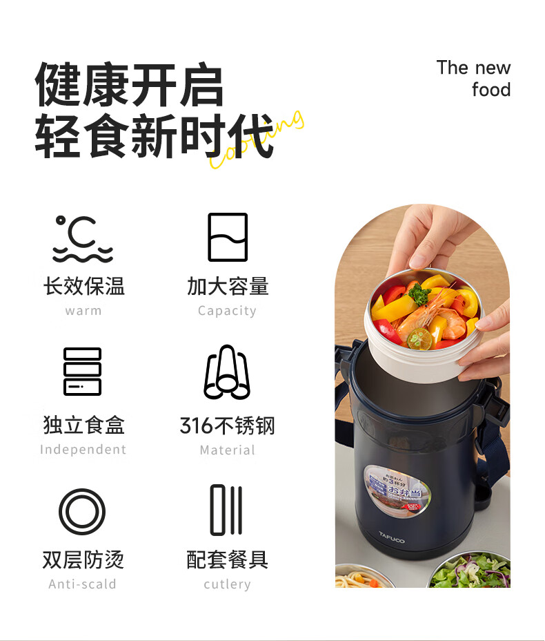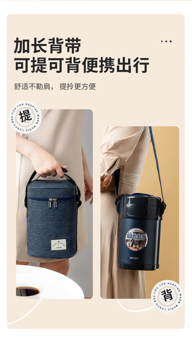 TAFUCO stainless steel insulated lunch box student work portable lunch box multi-layer lunch box winter insulated bucket T0091-dark blue 4 layers_2.3L + insulated bag tableware