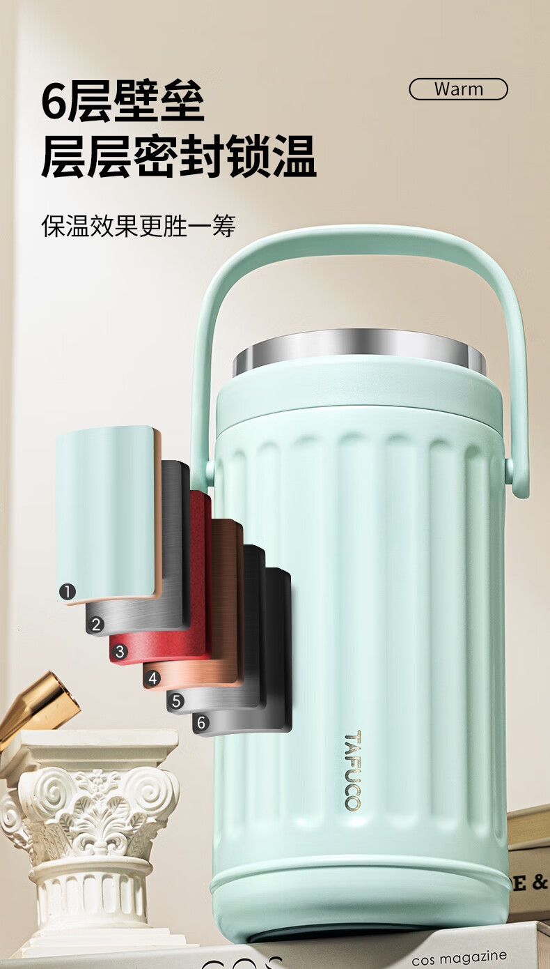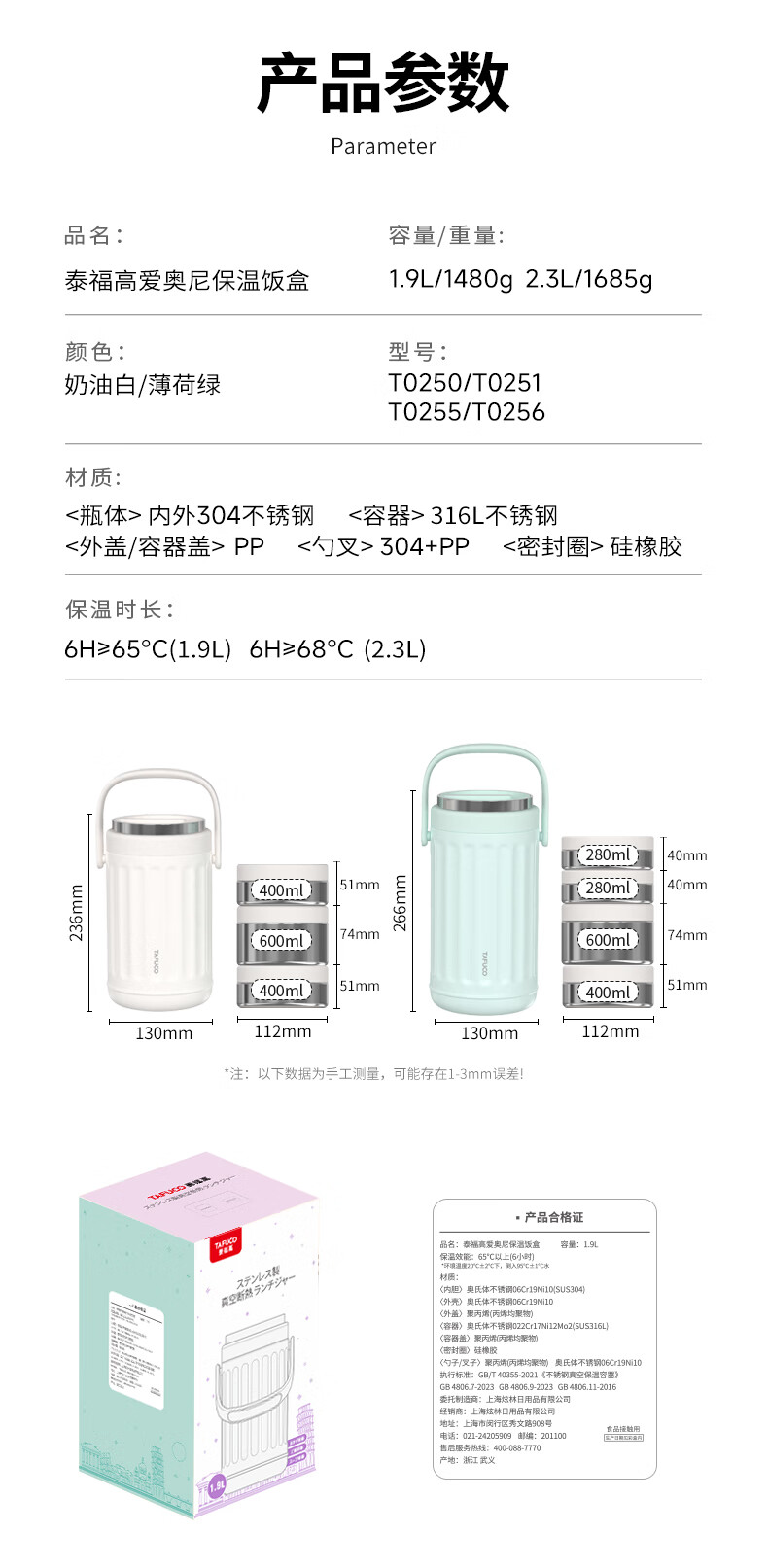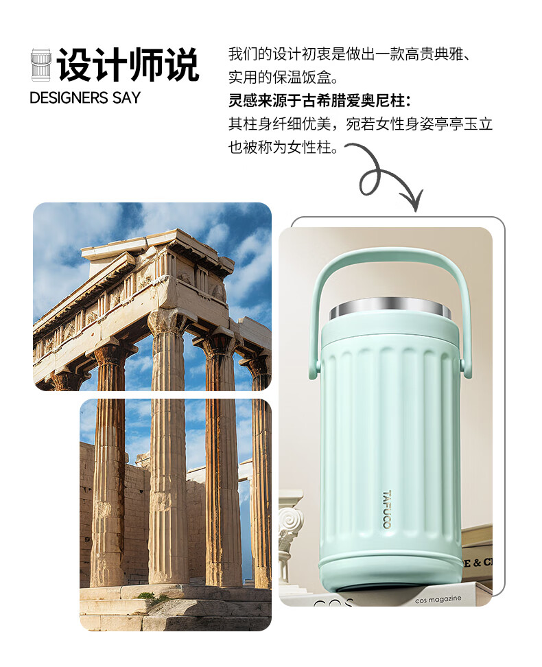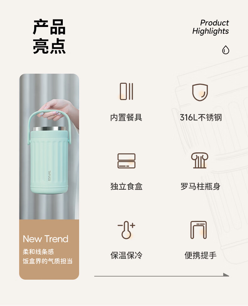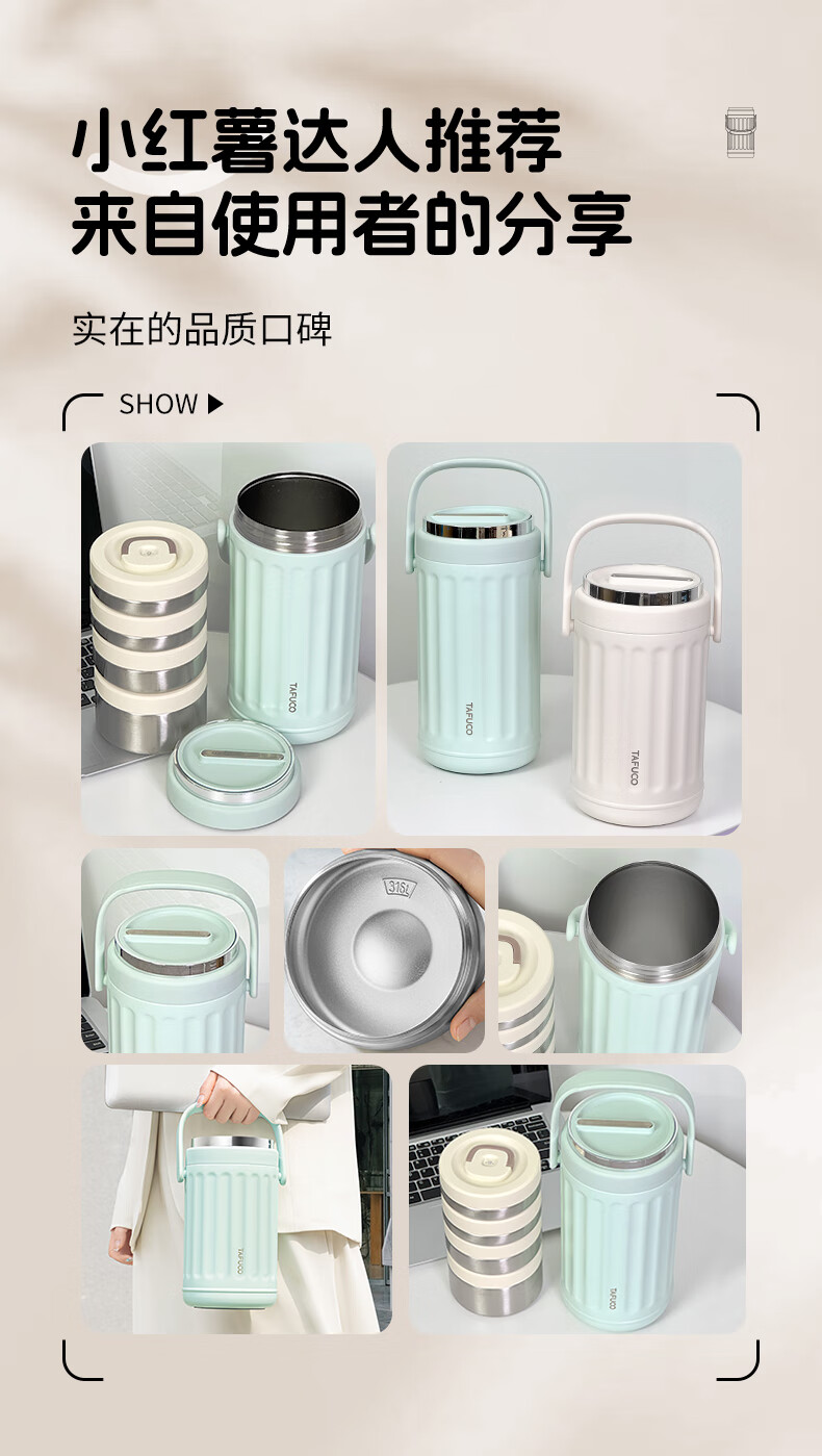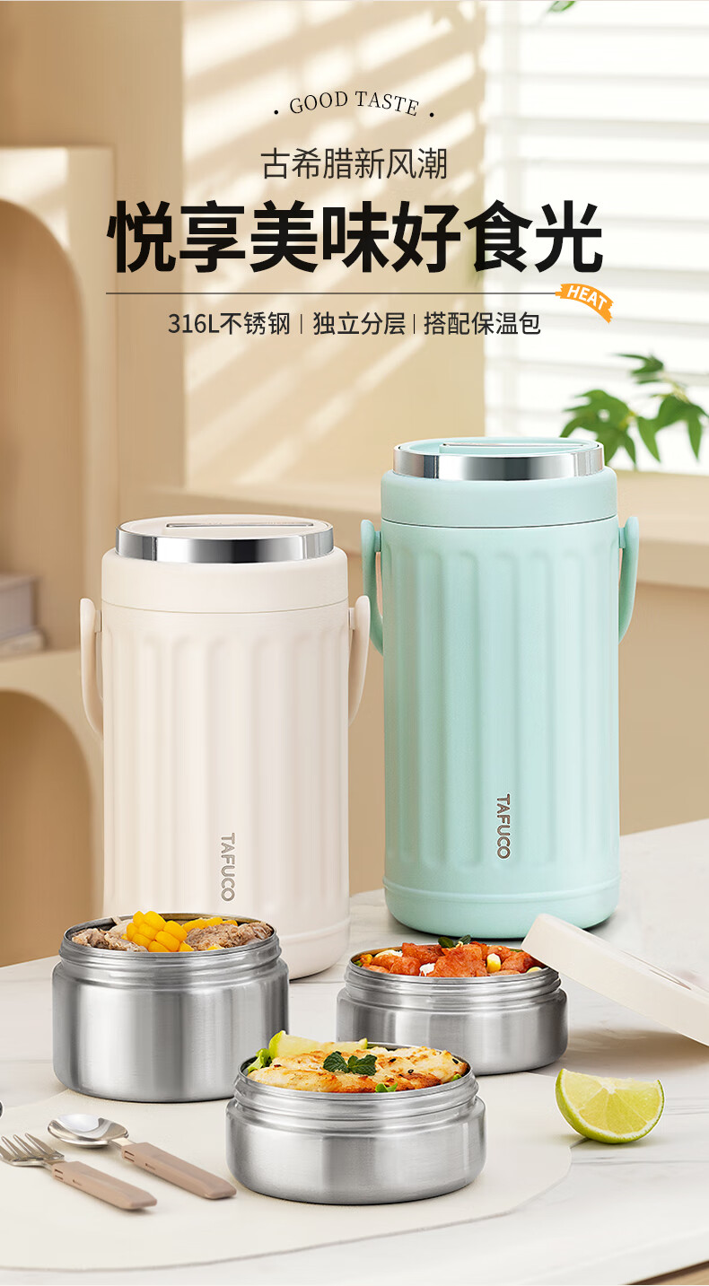 TAFUCO Insulated Lunch Box Lunchbox Multi-layer Large Capacity Extra Long Insulated Bucket for Girls to Work in Winter Portable 1.9L_Cream White Ioni 3-layer Insulated Lunch Box_T0250