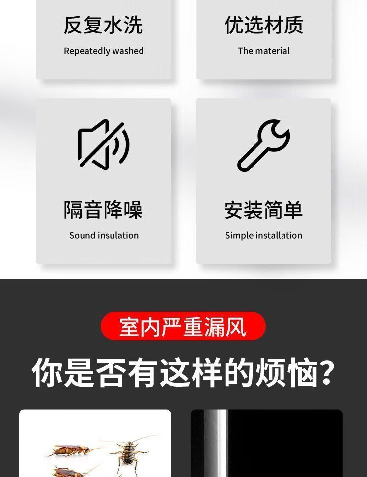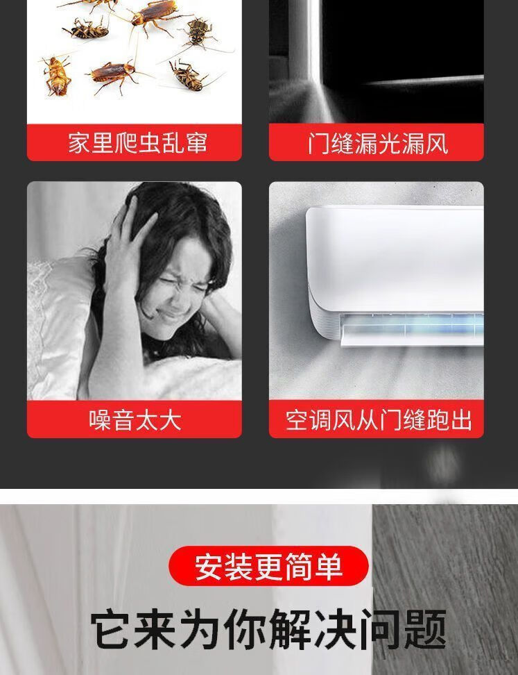 Door seam and door bottom sealing strip room door soundproof bedroom door windproof, noise-proof, insect-proof and cockroach-proof wall clock, wall clock, wall clock, upgraded and thickened, strong sealing, 5 pack/93 cm, sound insulation and noise reduction, selected quality, no nails and no glue, extra thick gray, door bottom sealing strip