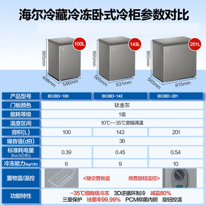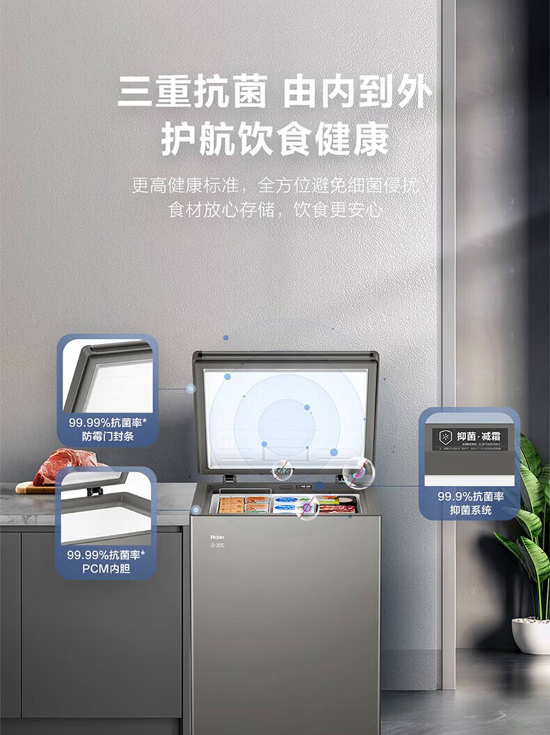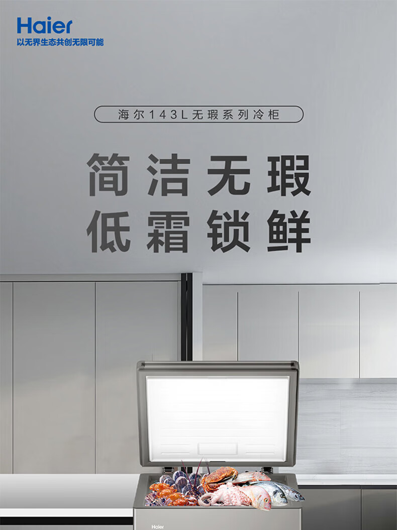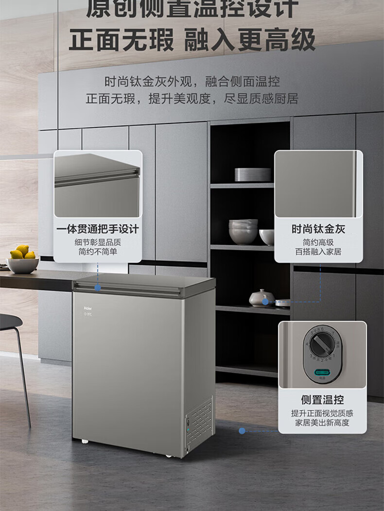 Haier freezer 100 liters or more, automatic defrost, ultra-low temperature, household and commercial, large-capacity refrigeration and freezing, switchable first-level energy efficiency seafood quick-frozen horizontal freezer trade-in -30 deep-freezing 1-0-0 liter white丨54cm wide丨top door