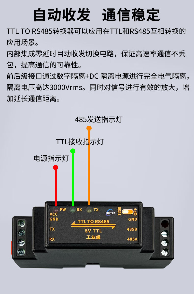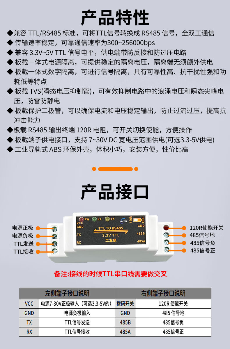TTL to RS485 module/RS485 to TTL serial port UART two-way conversion module/isolated type/shell shell 3.3-5V power supply TTL level compatible with 3.3-5V5