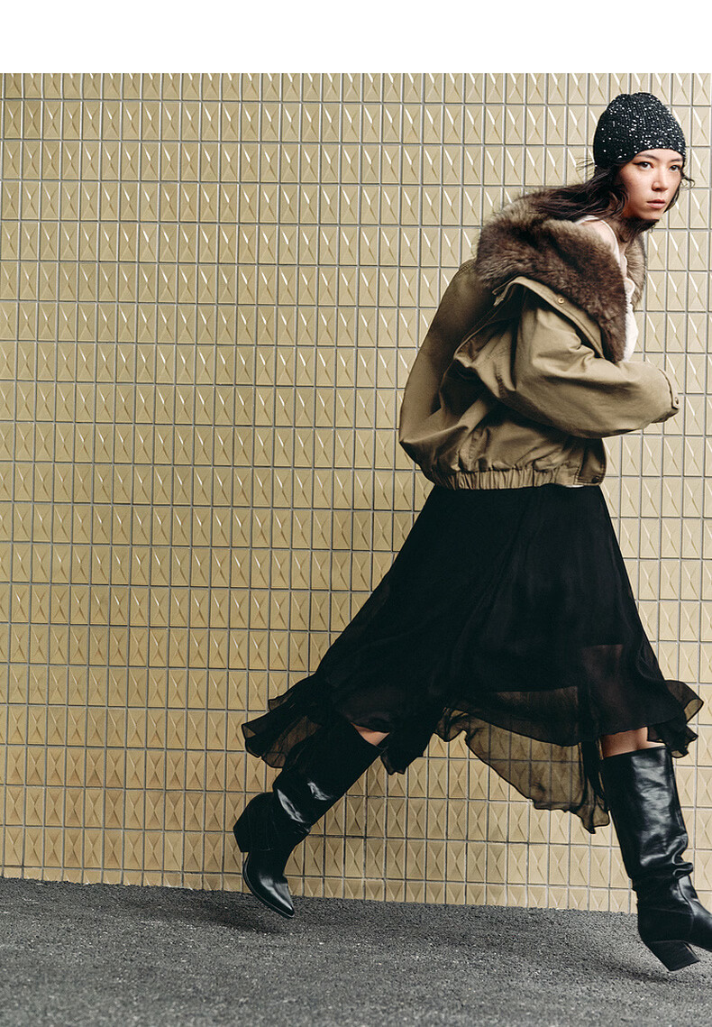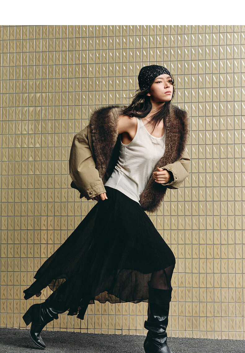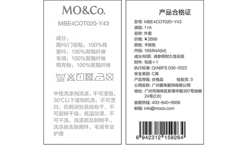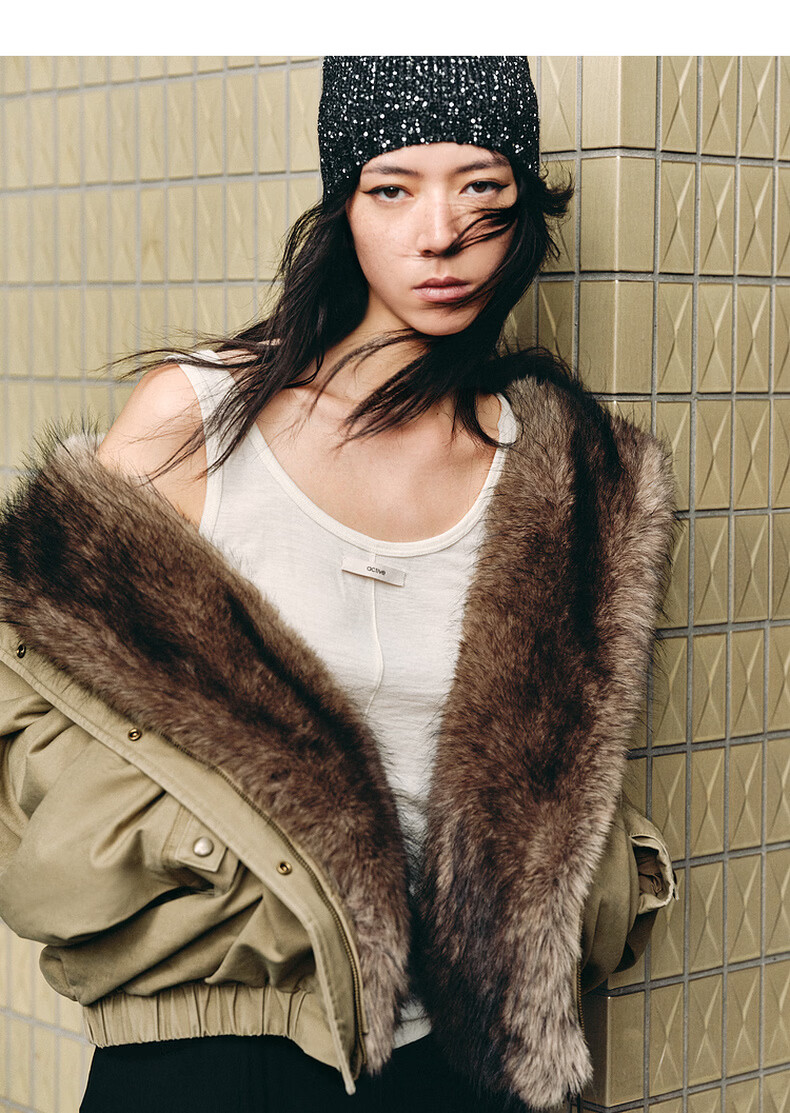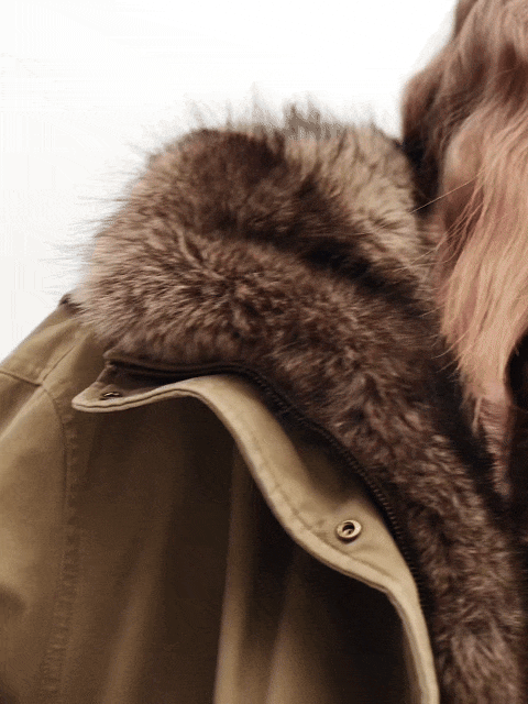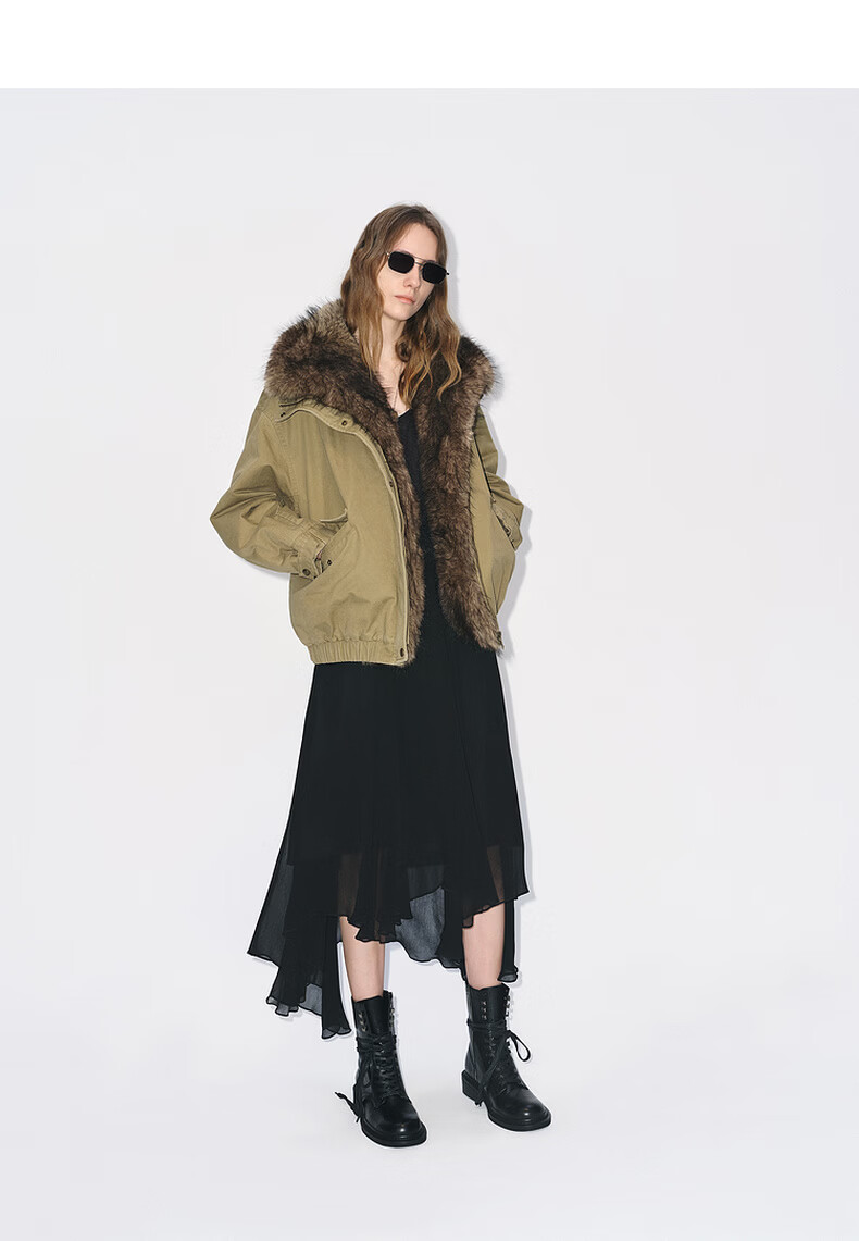 MO&Co. Jacket Filled 2025 Winter New Product Detachable Fur Collar Assute Dyed Khaki Harrington Jacket MBE4COT020 Khaki S /160