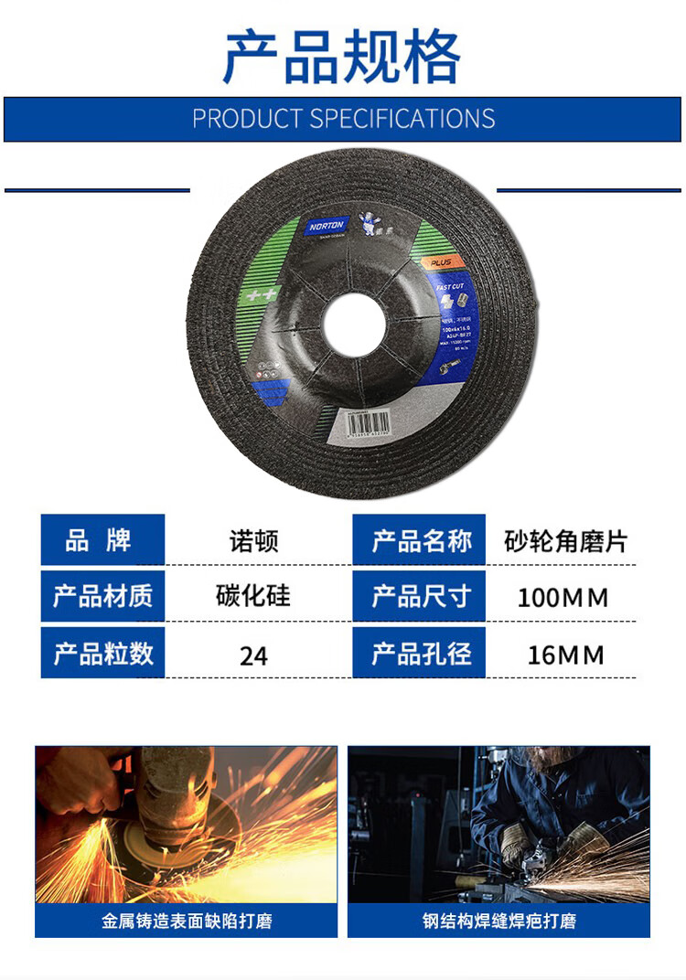 He Jiagong Norton Silver Bear grinding wheel disc 100 grinding disc 125 angle grinding disc 150 angle grinder grinding disc polishing disc stainless steel 4-inch Norton angle grinding disc (25 pieces)_6mm aperture