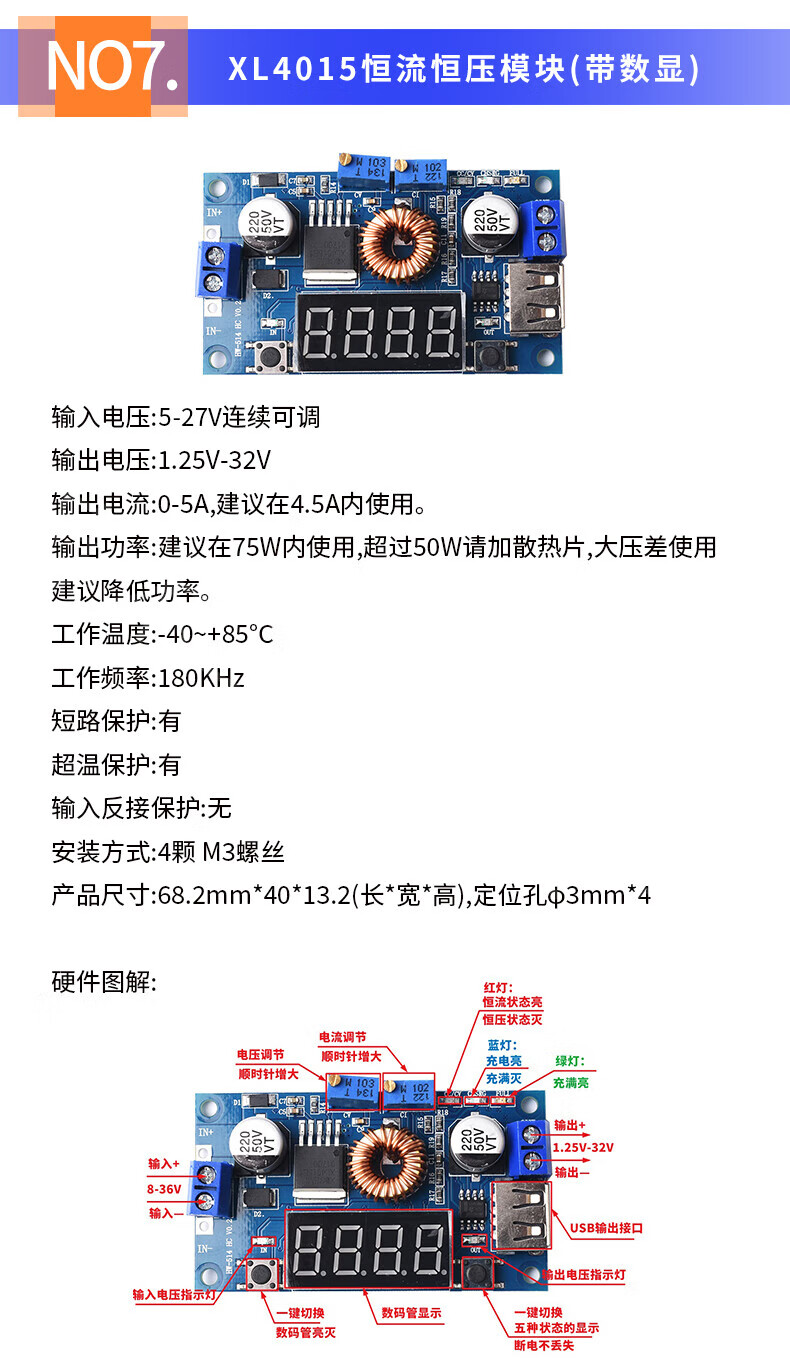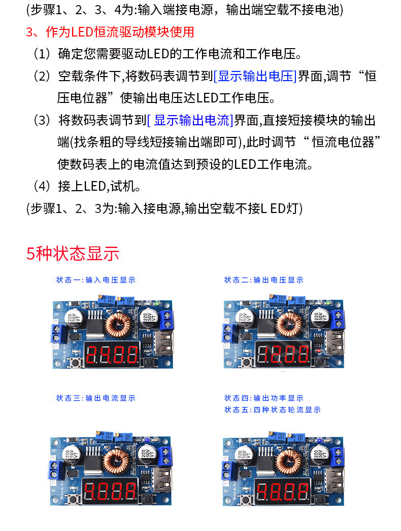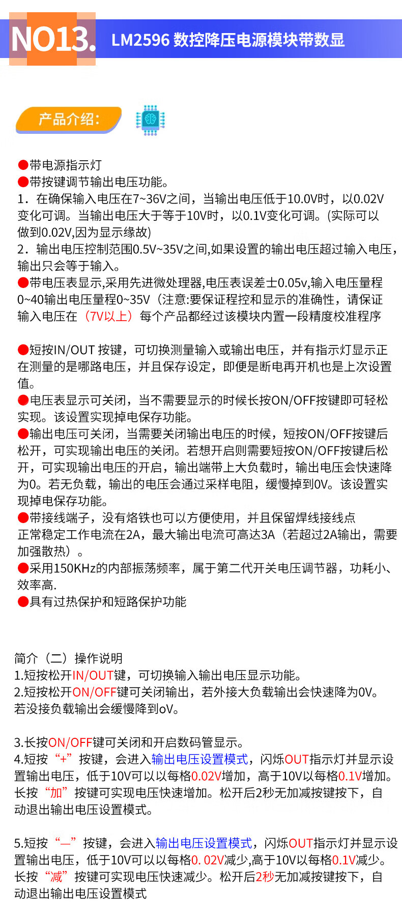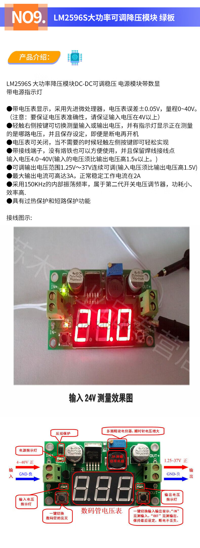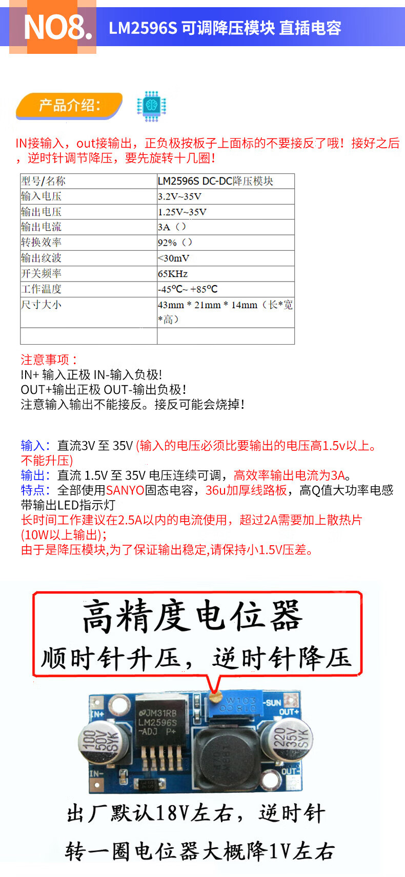 LM2596S DC-DC DC adjustable buck-stabilized constant current power supply module 3A with digital display 3.3V5V12V no specifications LM2596S adjustable output