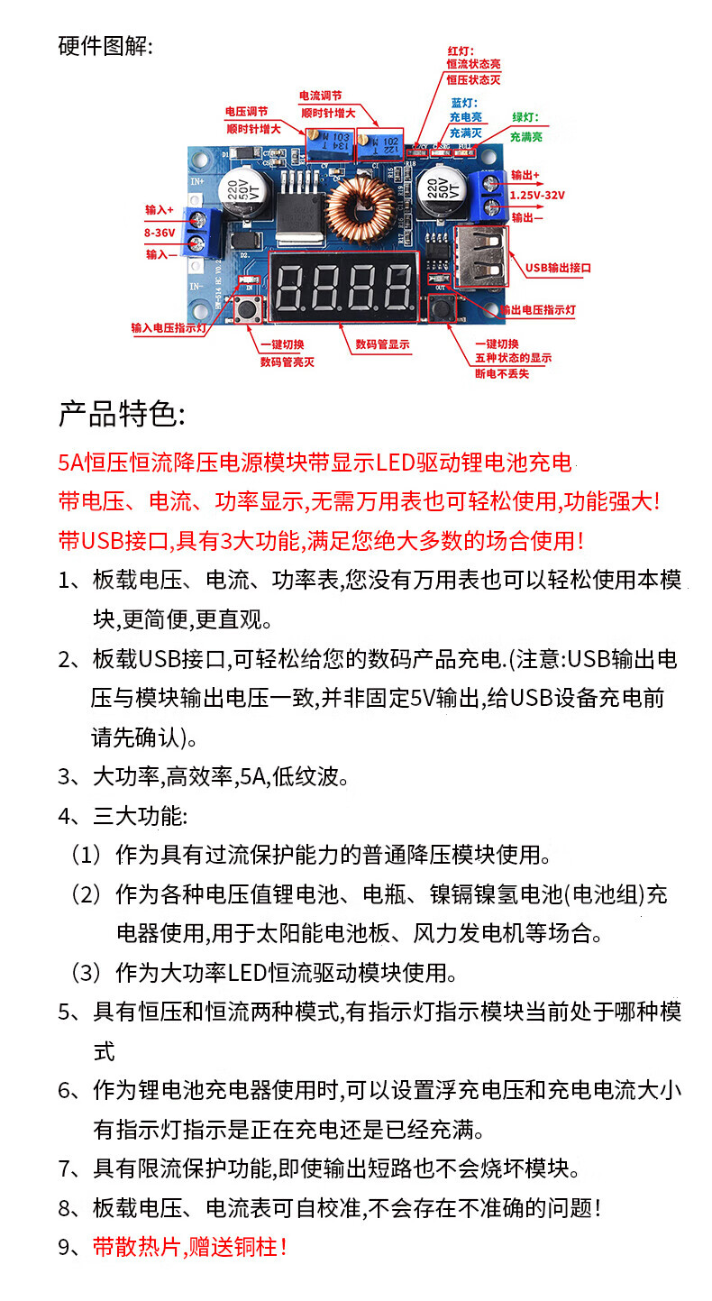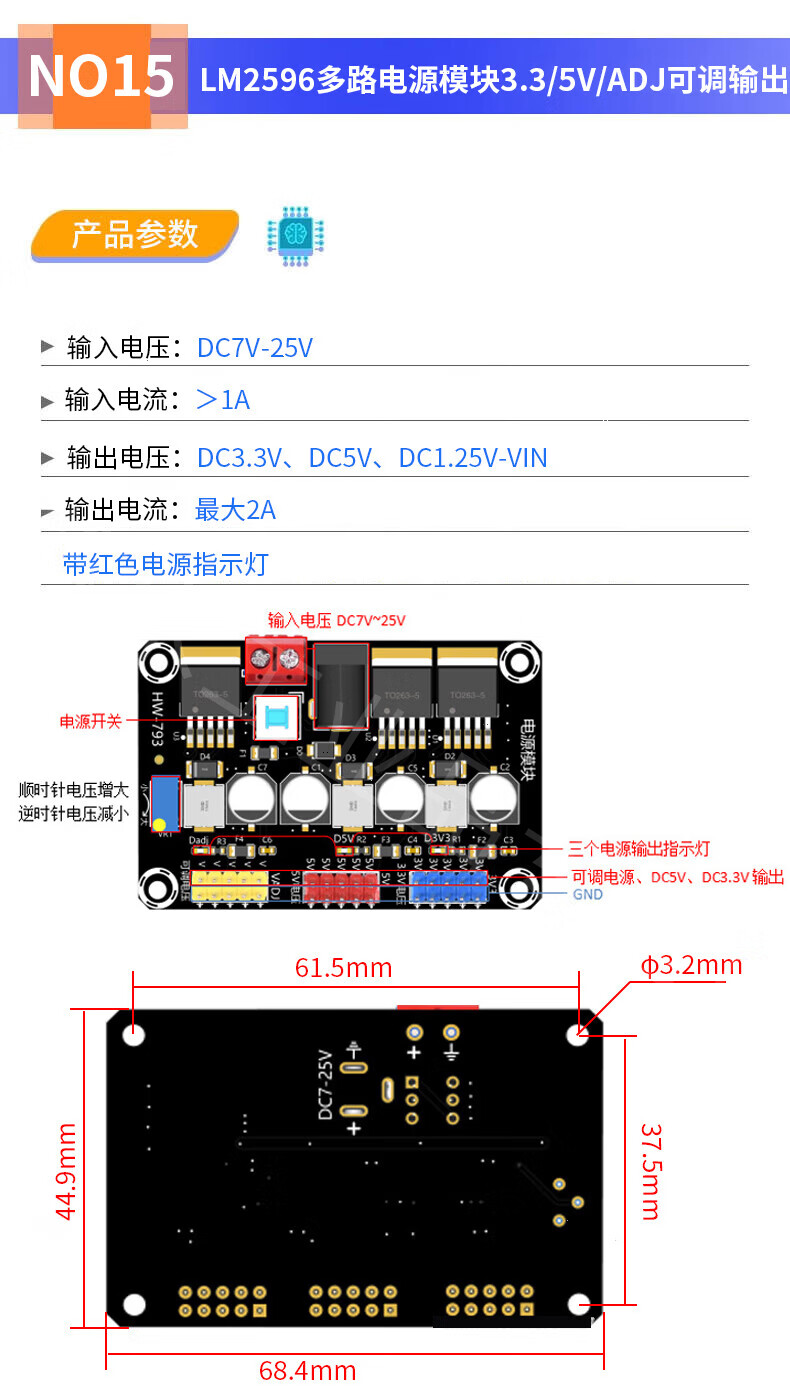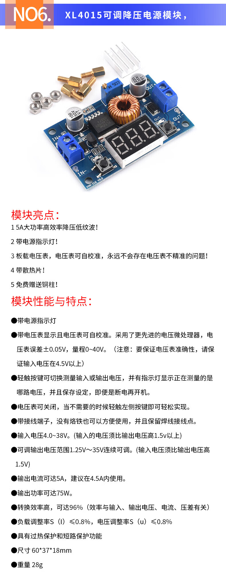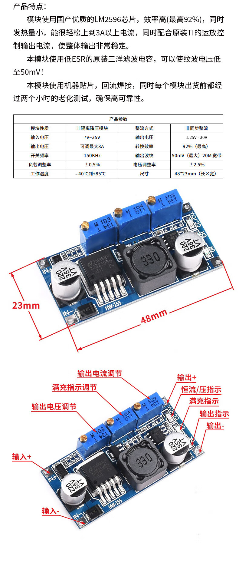 LM2596S DC-DC DC adjustable buck-stabilized constant current power supply module 3A with digital display 3.3V5V12V no specifications LM2596S adjustable output
