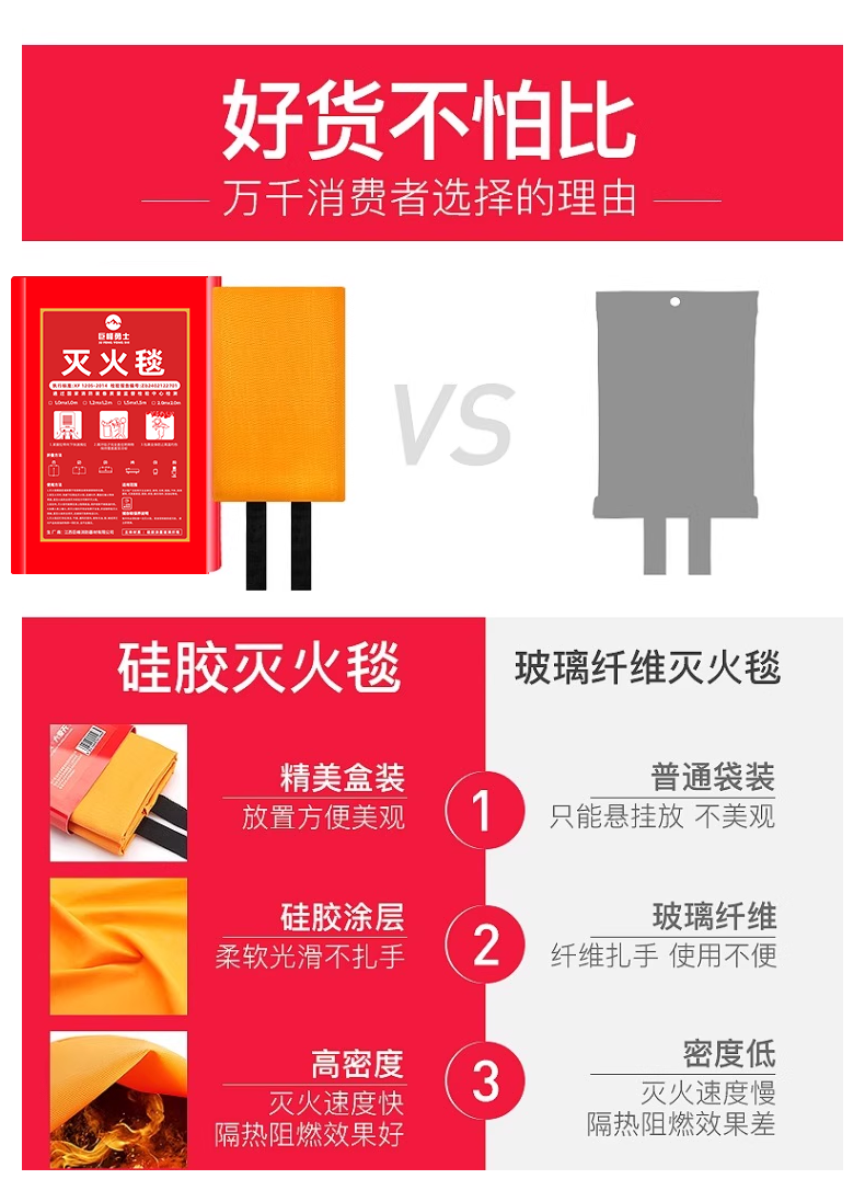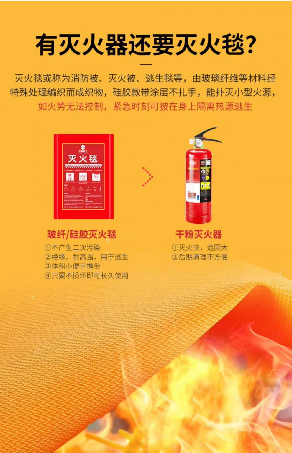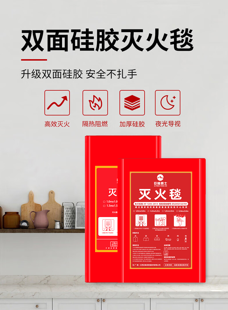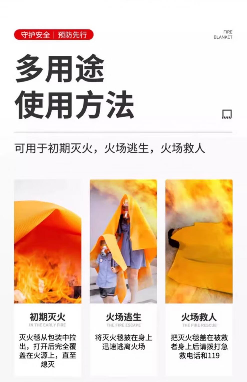 Special silicone fire extinguishing blanket for fire protection, special fire blanket for home kitchen, escape, national standard fire certification equipment, commercial use, 2m silicone fire extinguishing blanket, can be used by four people, free gloves + hook