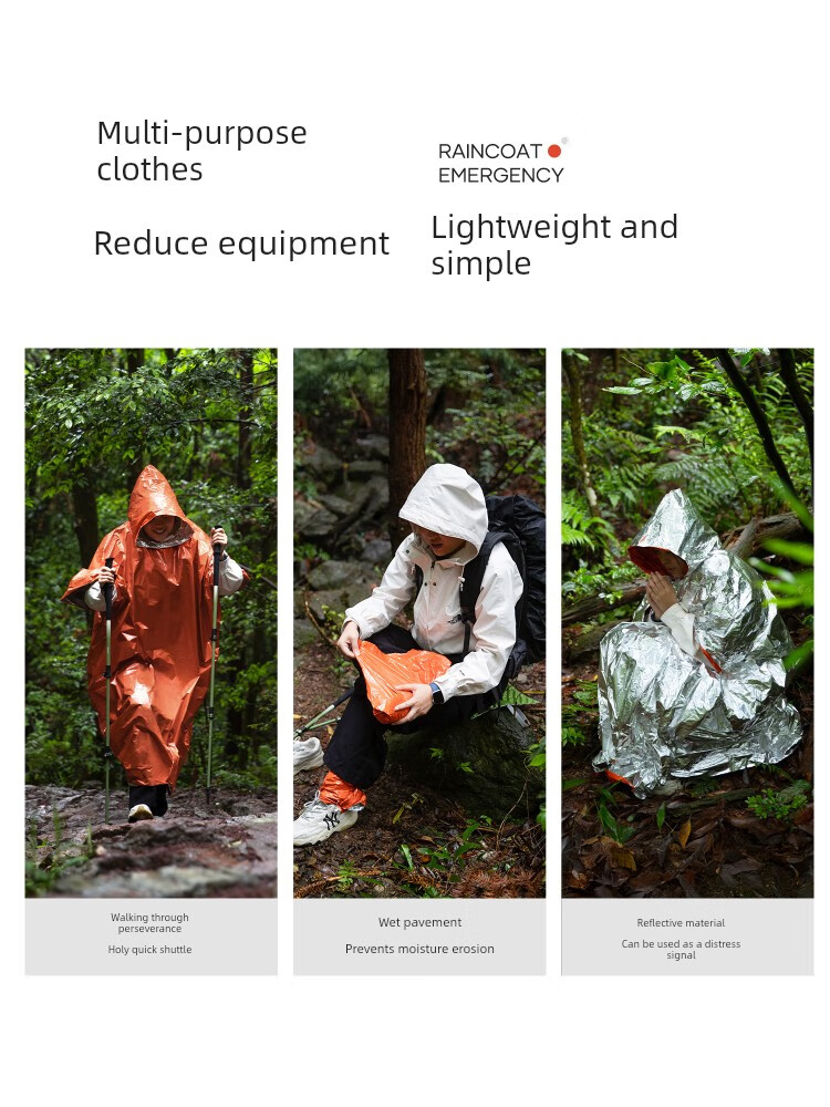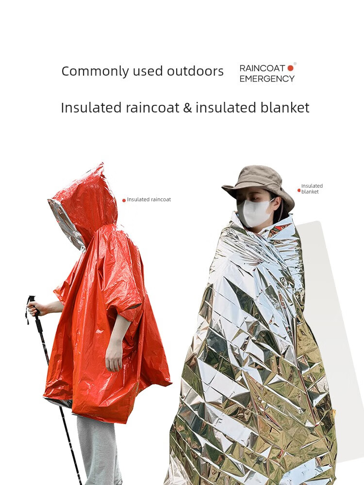 Outdoor emergency thermal insulation raincoat, thermal blanket, outdoor life-saving equipment, life-saving cold-proof emergency blanket, tin foil anti-loss blanket, thermal raincoat-orange L, height 170cm or above