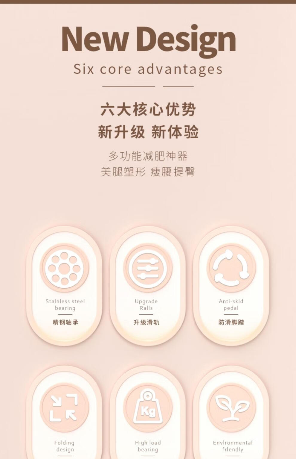 Miaopule Ski Machine Leg Slimming Artifact Silent Indoor Home Fitness Equipment Beautiful Leg Leg Machine Pelvic Floor Muscle Trainer Basic Orange No Installation/Second Folding/Silent Anti-Slip/Elasticity Adjustable