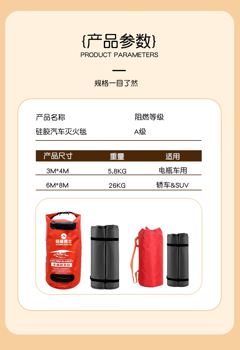 New energy vehicle fire blanket Silicone fire blanket for electric vehicles Fiberglass fire extinguishing cloth 6x8 meters fiberglass (for cars & SUVs)