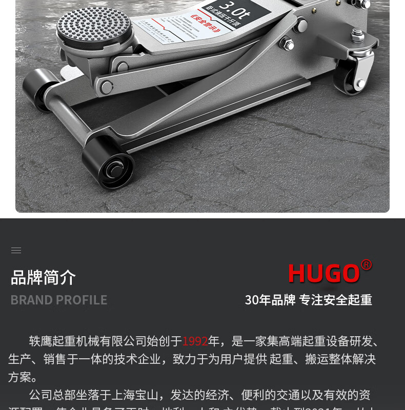 Hugo Hugo horizontal jack for cars 3t hydraulic vehicle-mounted car tire changing tool hydraulic jack for auto repair special upgrade bumper 6 tons ultra-low heavy-duty