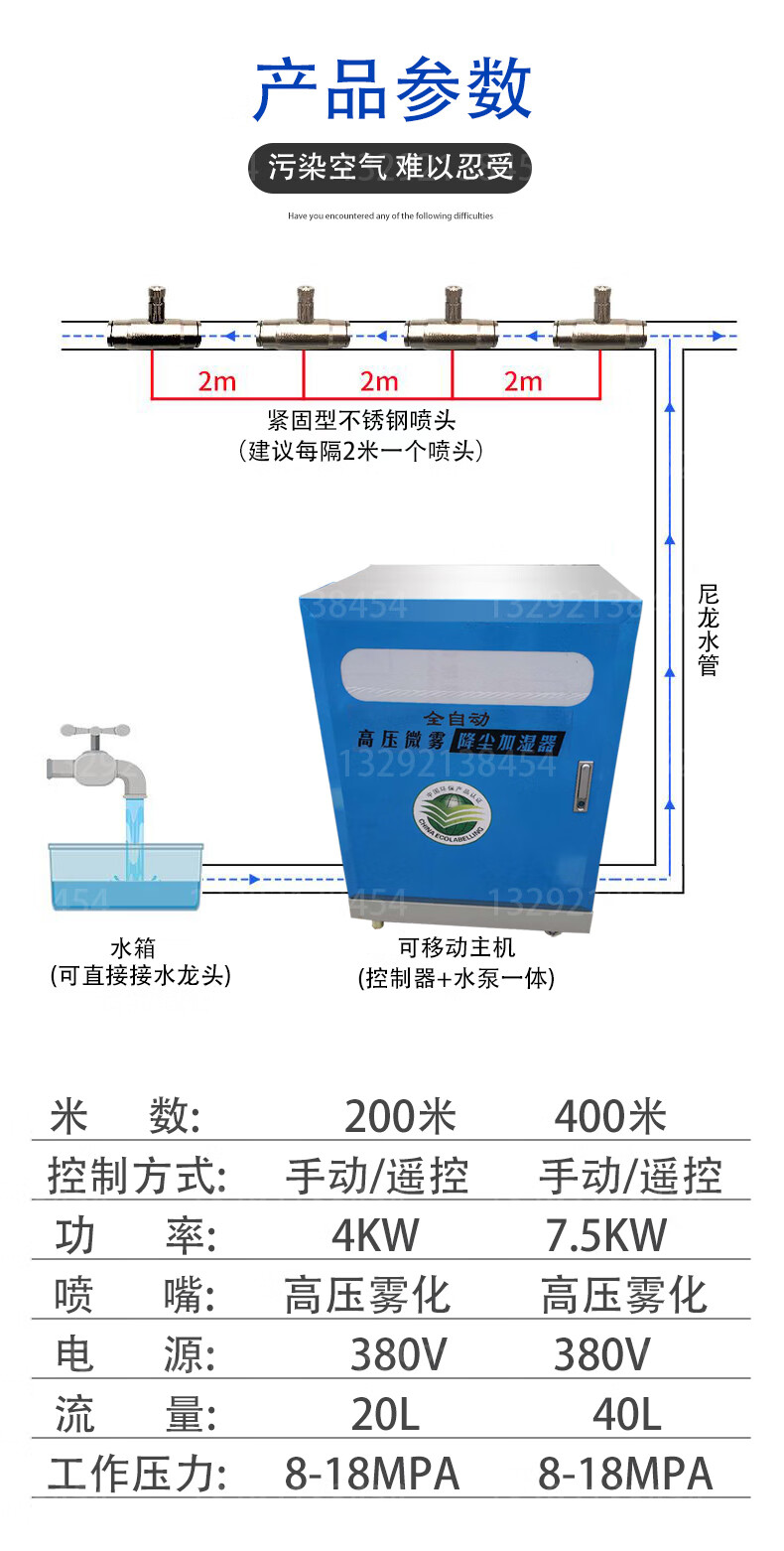 Chuangjing Yi selection construction site enclosure spray high-pressure atomizing sprayer garden landscape fog machine fog forest dust removal equipment 2.2KW host + 50 meters PA pipe + 25 sets of sprinkler heads